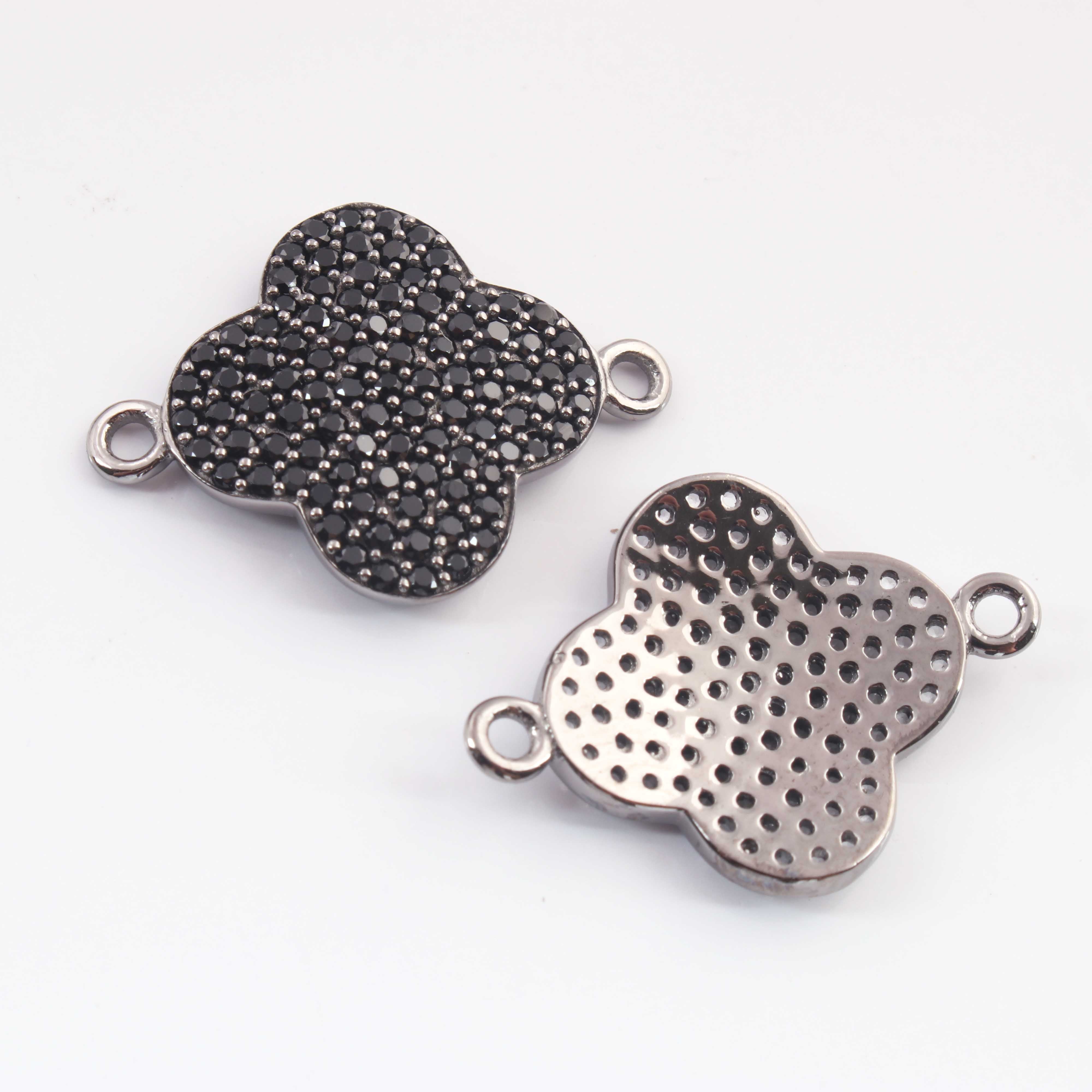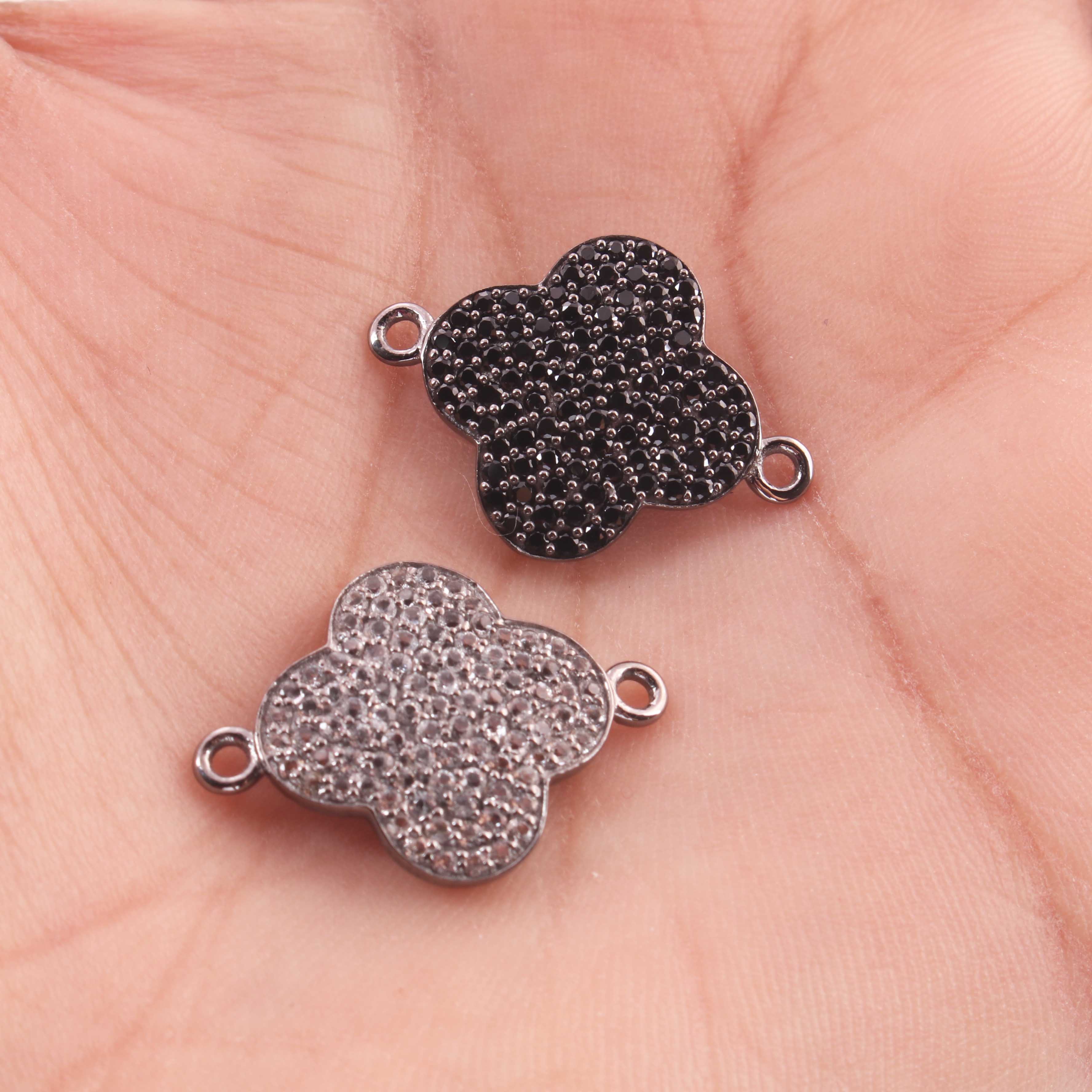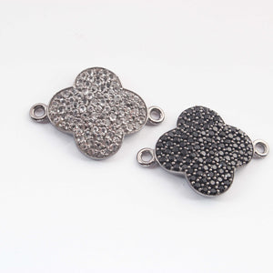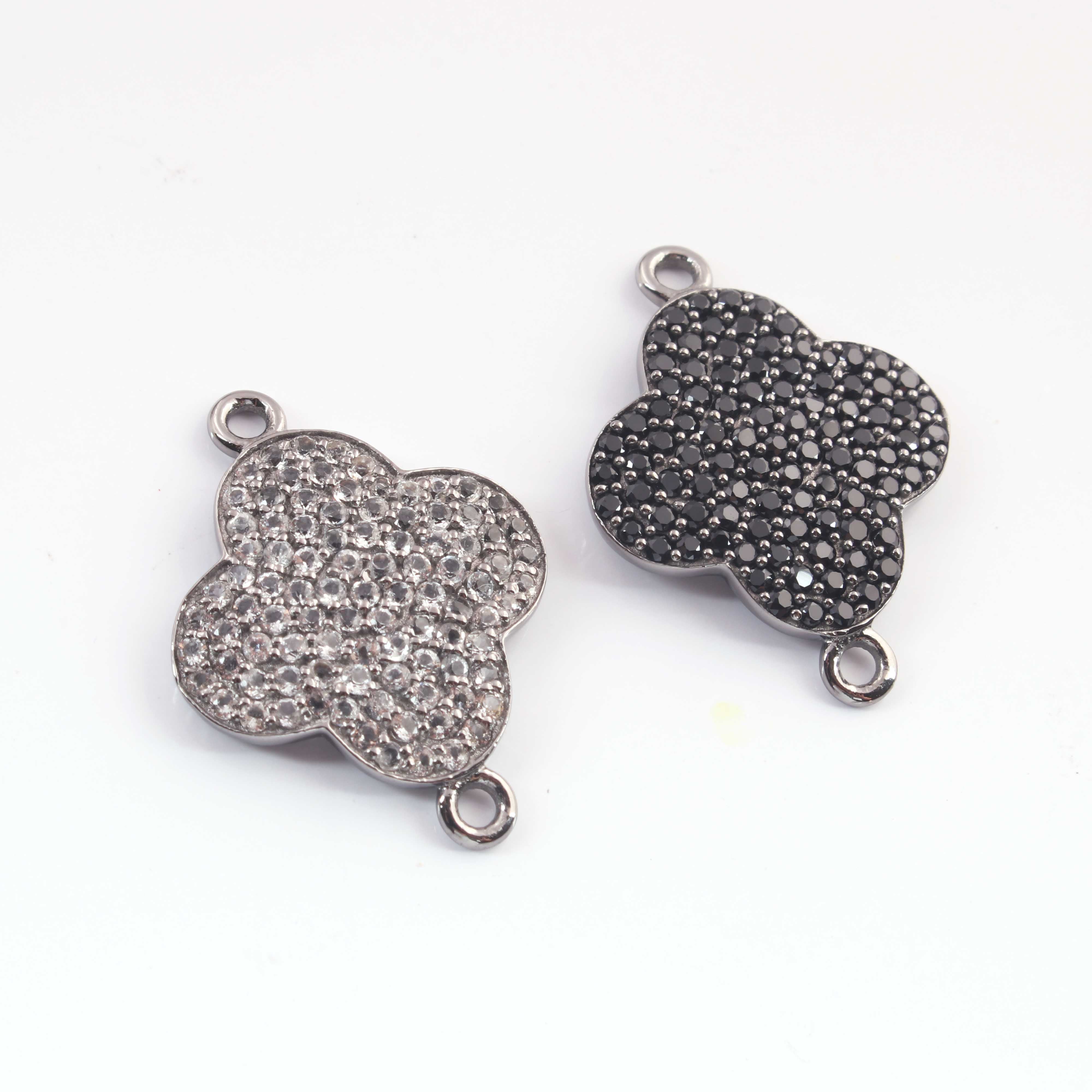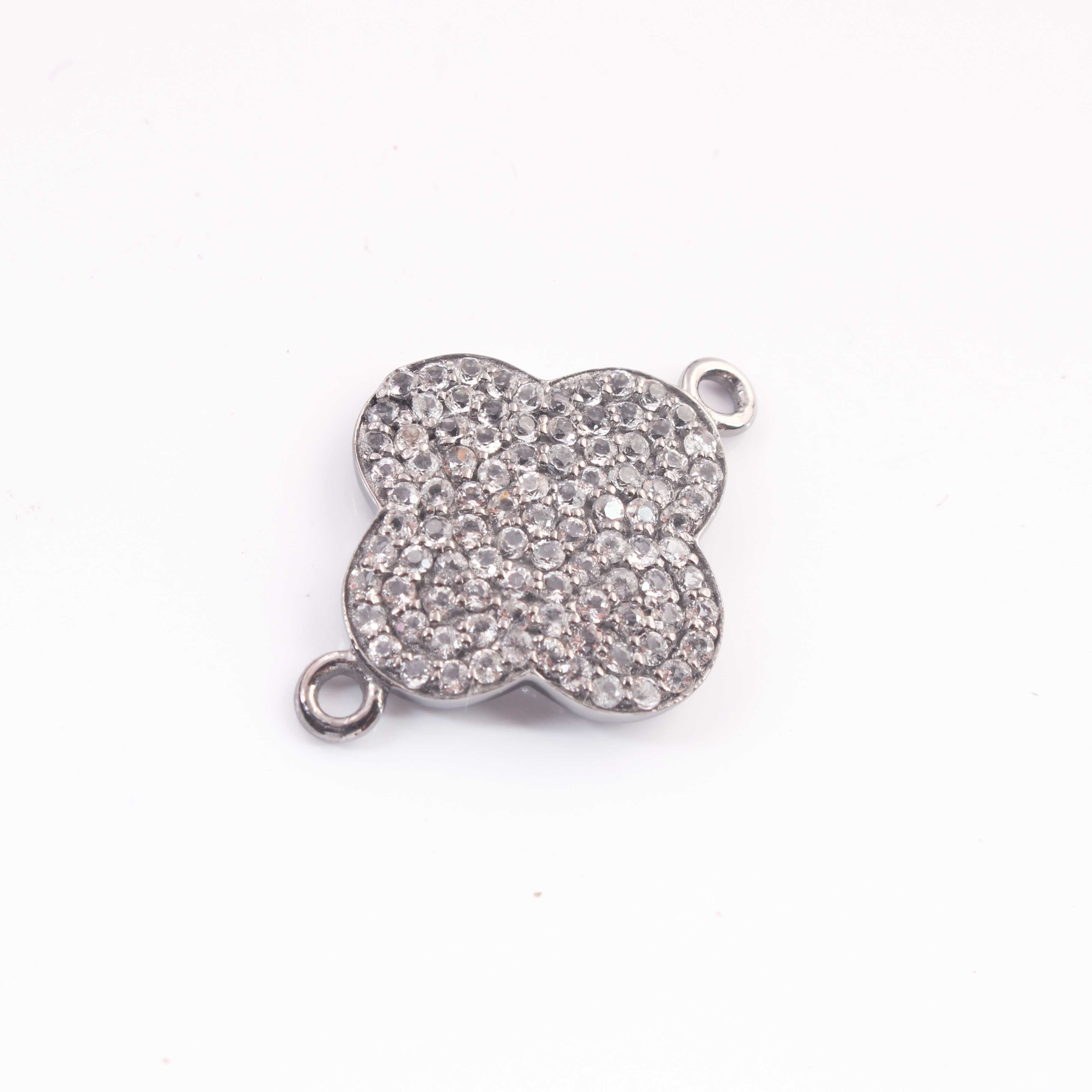 Listing is For One (1) Pc Extremely Beautiful 925 Sterling Silver White topaz & Black Spinel Clover Charm Connector.