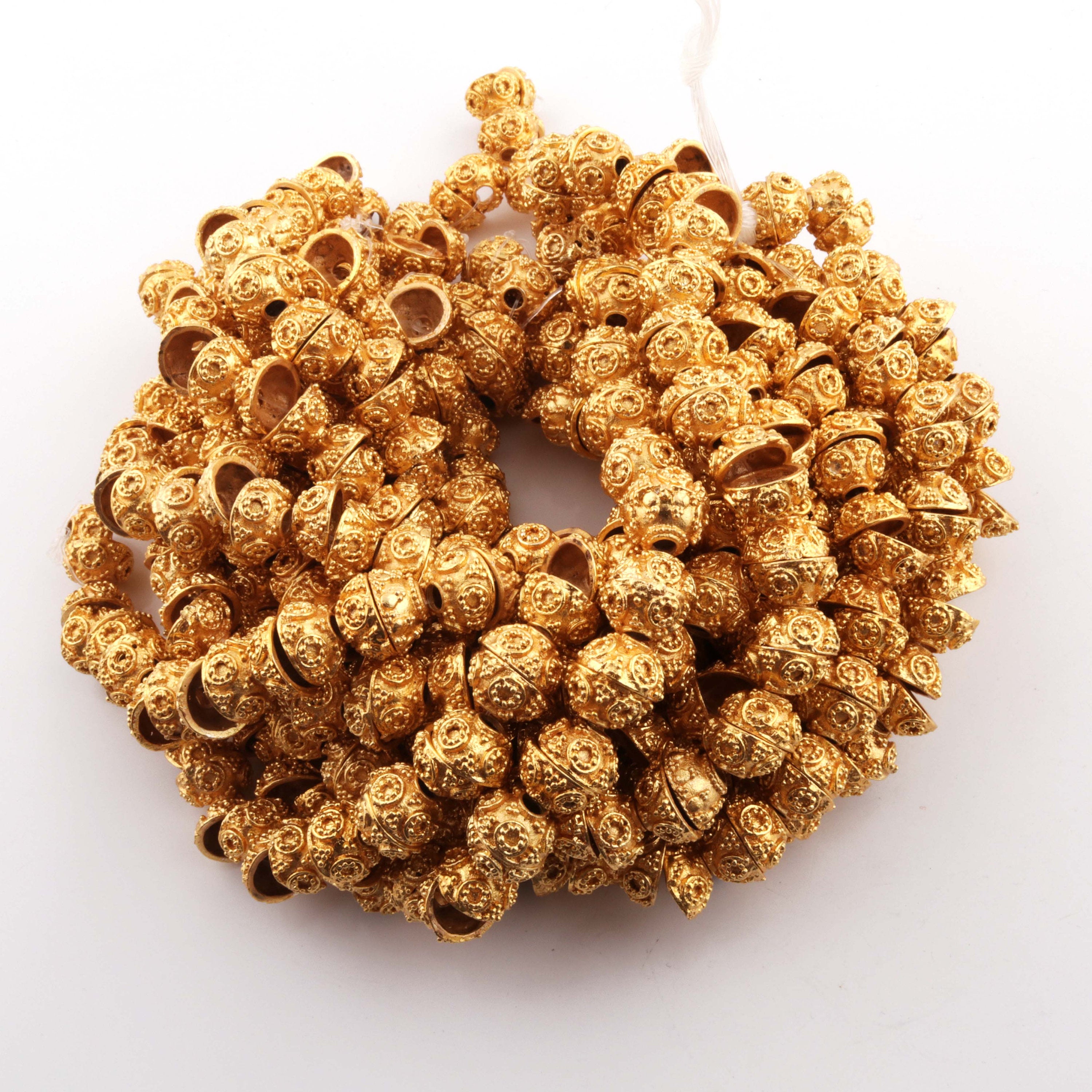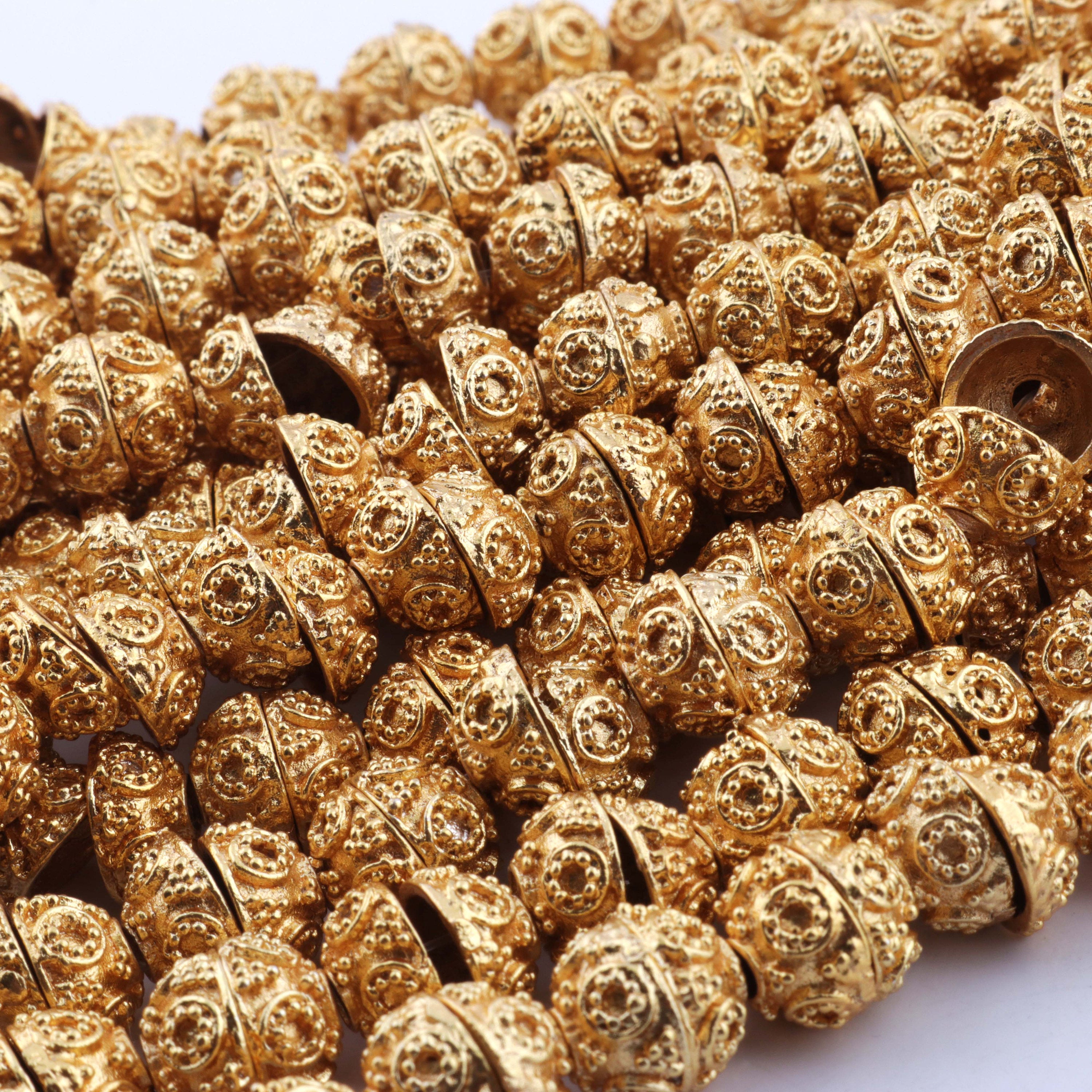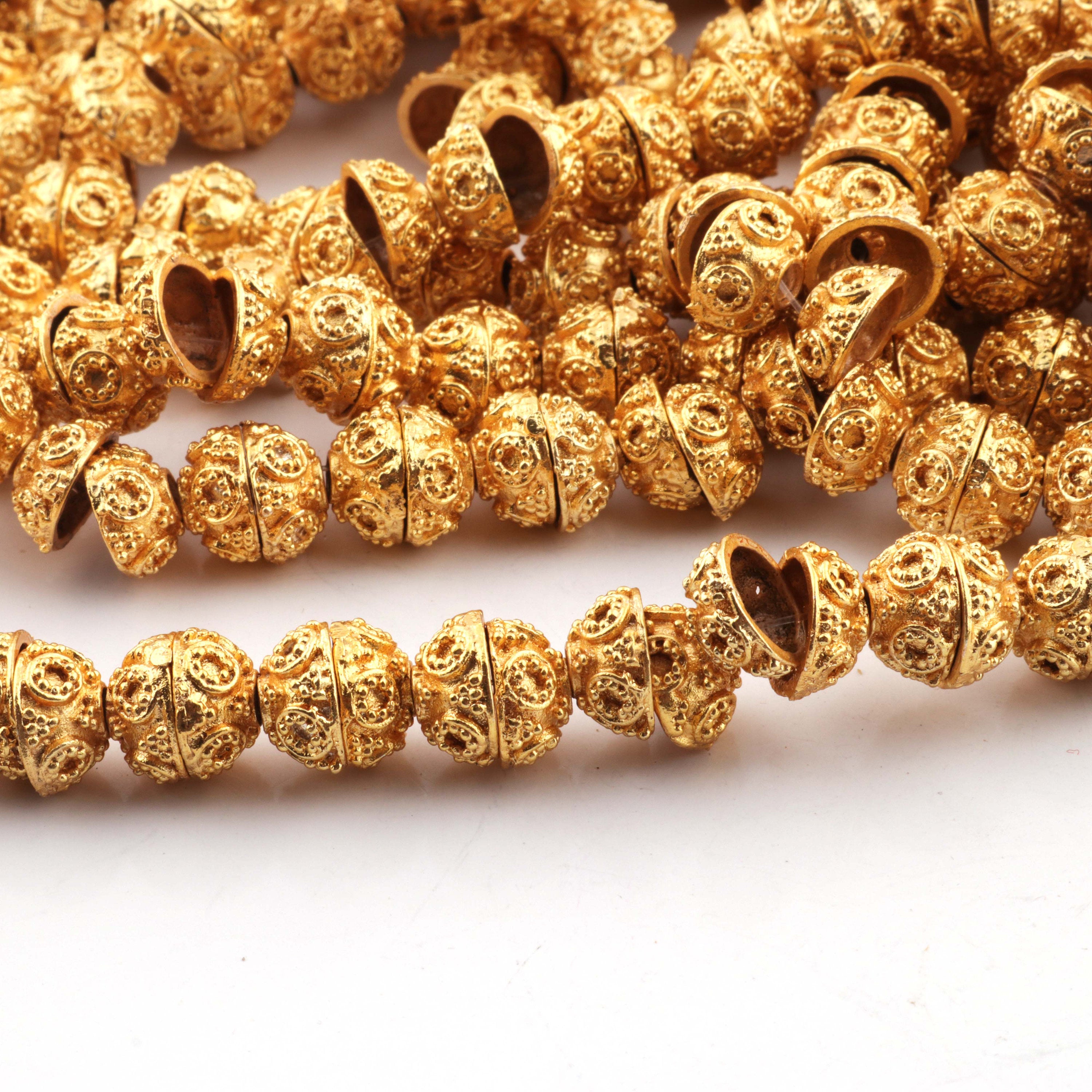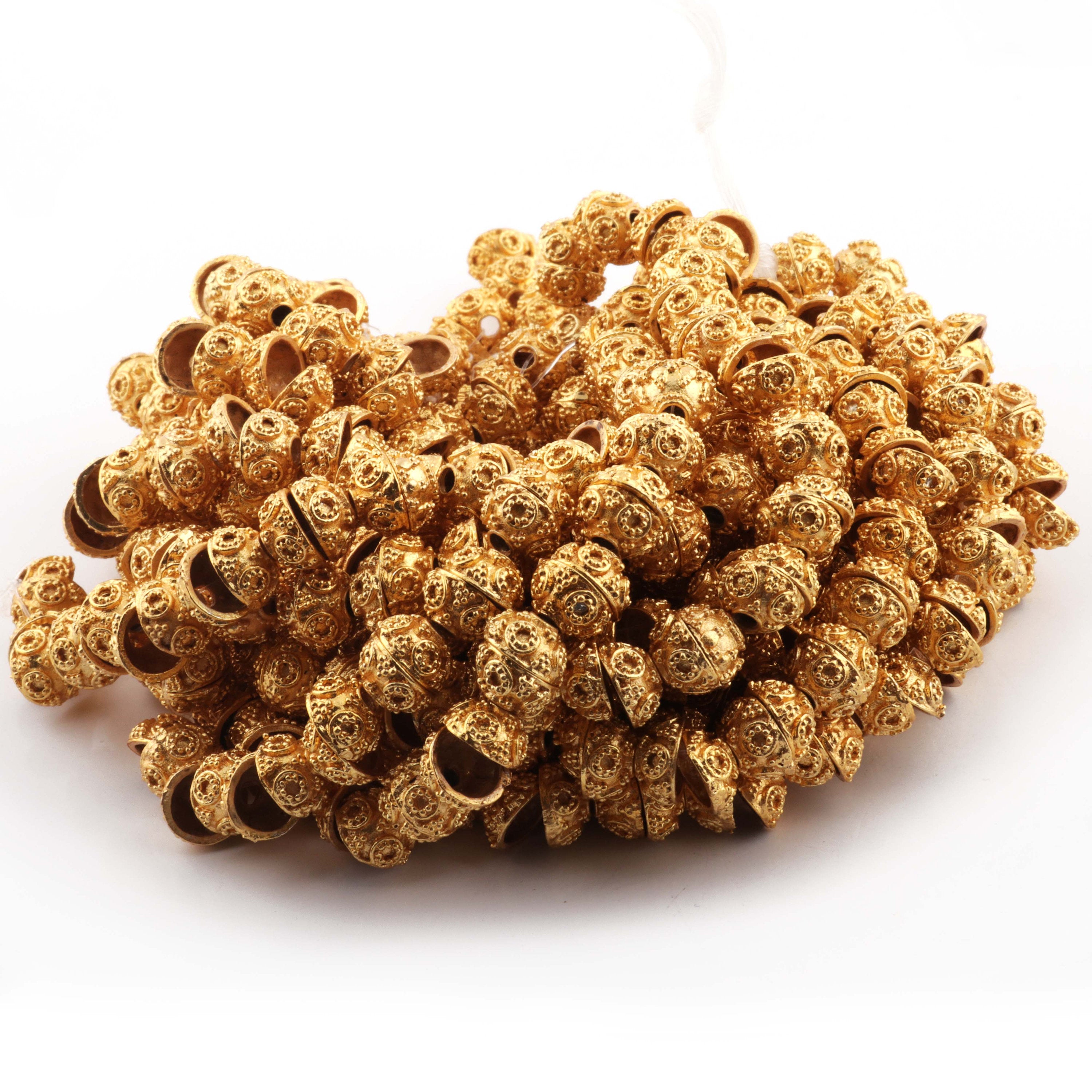 LISTING IS FOR ONE (1) Strand 24k Gold Plated Designer Copper Casting Half Cap Beads - Jewelry- GPC433 8 Inches Strand and Each strand holds 36+ Beads This Half Cap Beads 24k gold plated on copper . Approx Metal: Copper Plating: 24k Gold Plated Size: 10mmx5mm Approx Shape: Designer Half Cap Beads Great Casting Finish Half Cap Beads to add that special touch to your beautiful designs. Exclusive high quality Beads made in 4 Generation old Production House where trust is a tradition Bulk wholesale pricing is available convo me for information on this listing or any others in my shop. We are continuously adding new products in our store. So keep coming back to see more great deals on gems in our mart Handmade in India. Designed by our designers in USA https://www.etsy.com/shop/Tucsonbeads/items?search_query=gold+copper+beads