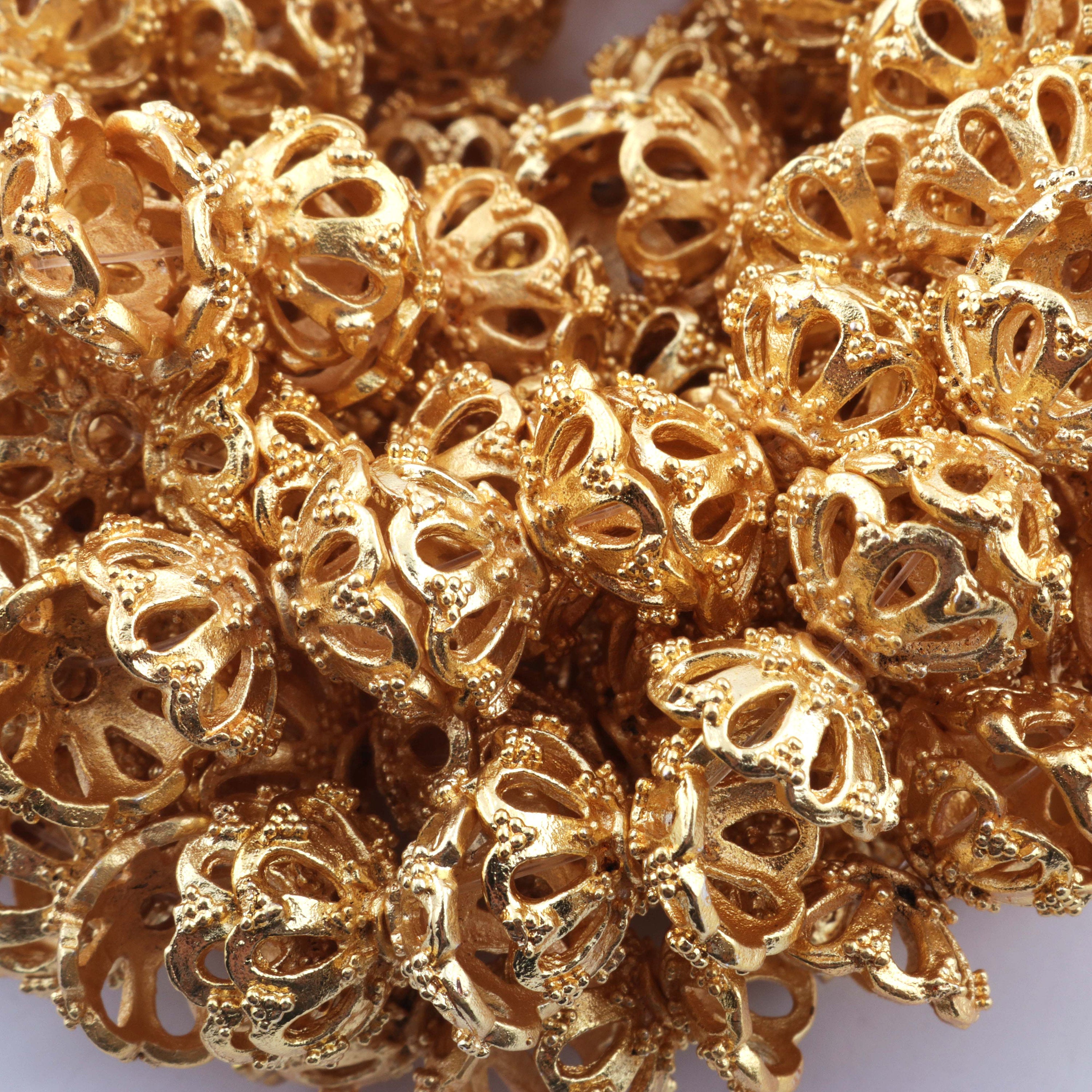 LISTING IS FOR Two (2) Strands 24k Gold Plated Designer Copper Casting Half Cap Beads - Jewelry- GPC843 8 Inches Strand and Each strand holds 35+ Beads This Half Cap Beads 24k gold plated on copper. Each Beads measures 13mmx6mm Approx Metal: Copper Plating: 24k Gold Plated Size: 13mmx6mm Approx Shape: Designer Half Cap Beads Great Casting Finish Half Cap Beads to add that special touch to your beautiful designs. Exclusive high quality Beads made in 4 Generation old Production House where trust is a tradition Bulk wholesale pricing is available convo me for information on this listing or any others in my shop. We are continuously adding new products in our store. So keep coming back to see more great deals on gems in our mart Handmade in India. Designed by our designers in USA https://www.etsy.com/shop/Tucsonbeads/items?search_query=gold+copper+beads