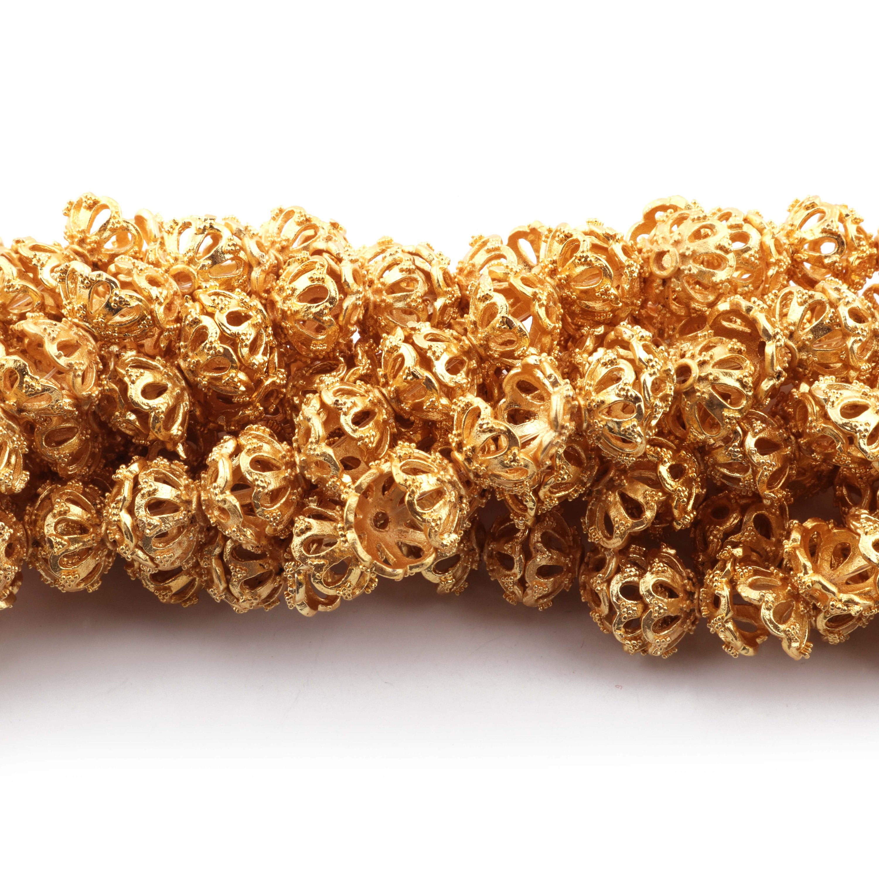 1 Strand 24k Gold Plated Designer Copper Casting Half Cap Beads - Jewelry - 13mmx6mm 8 Inches GPC843