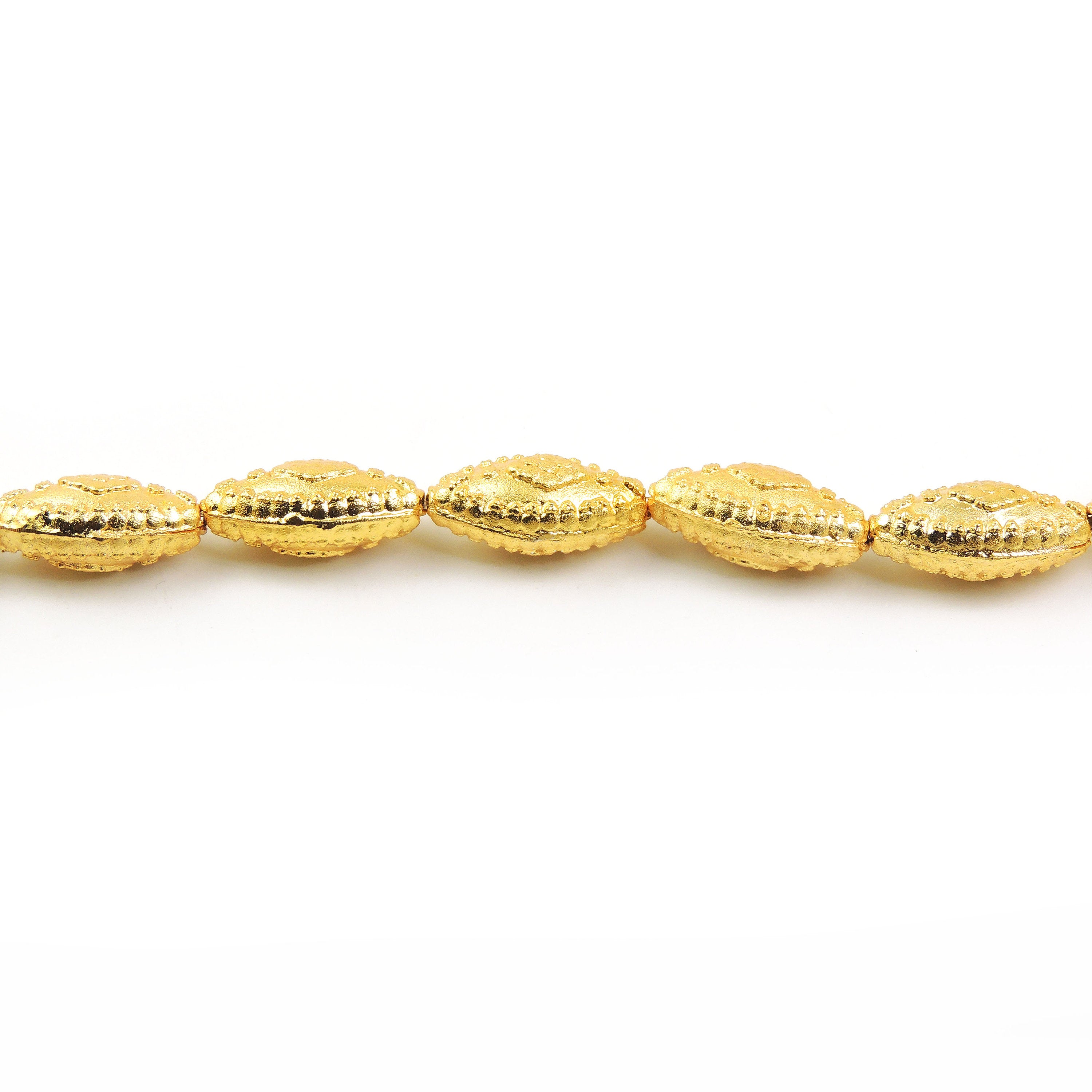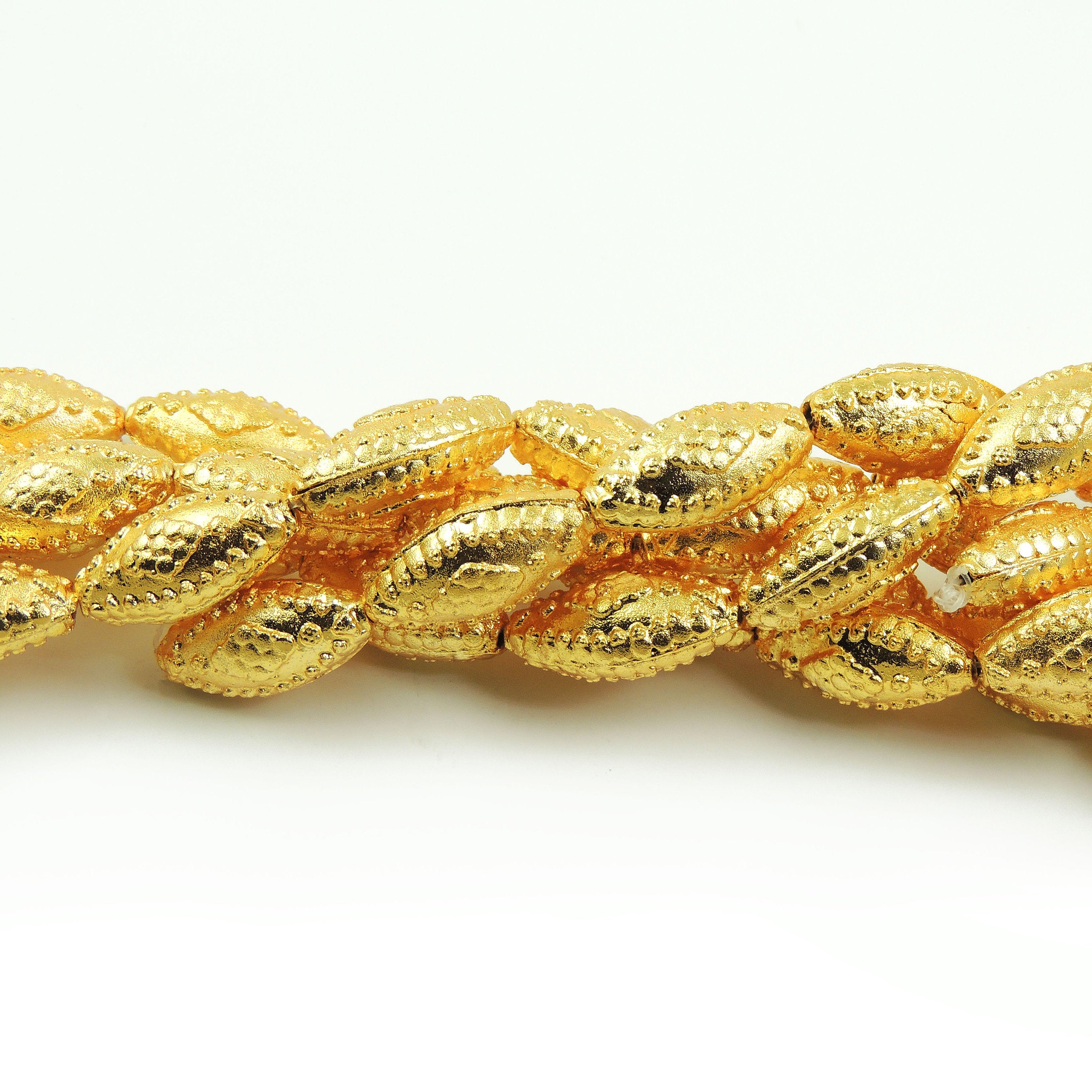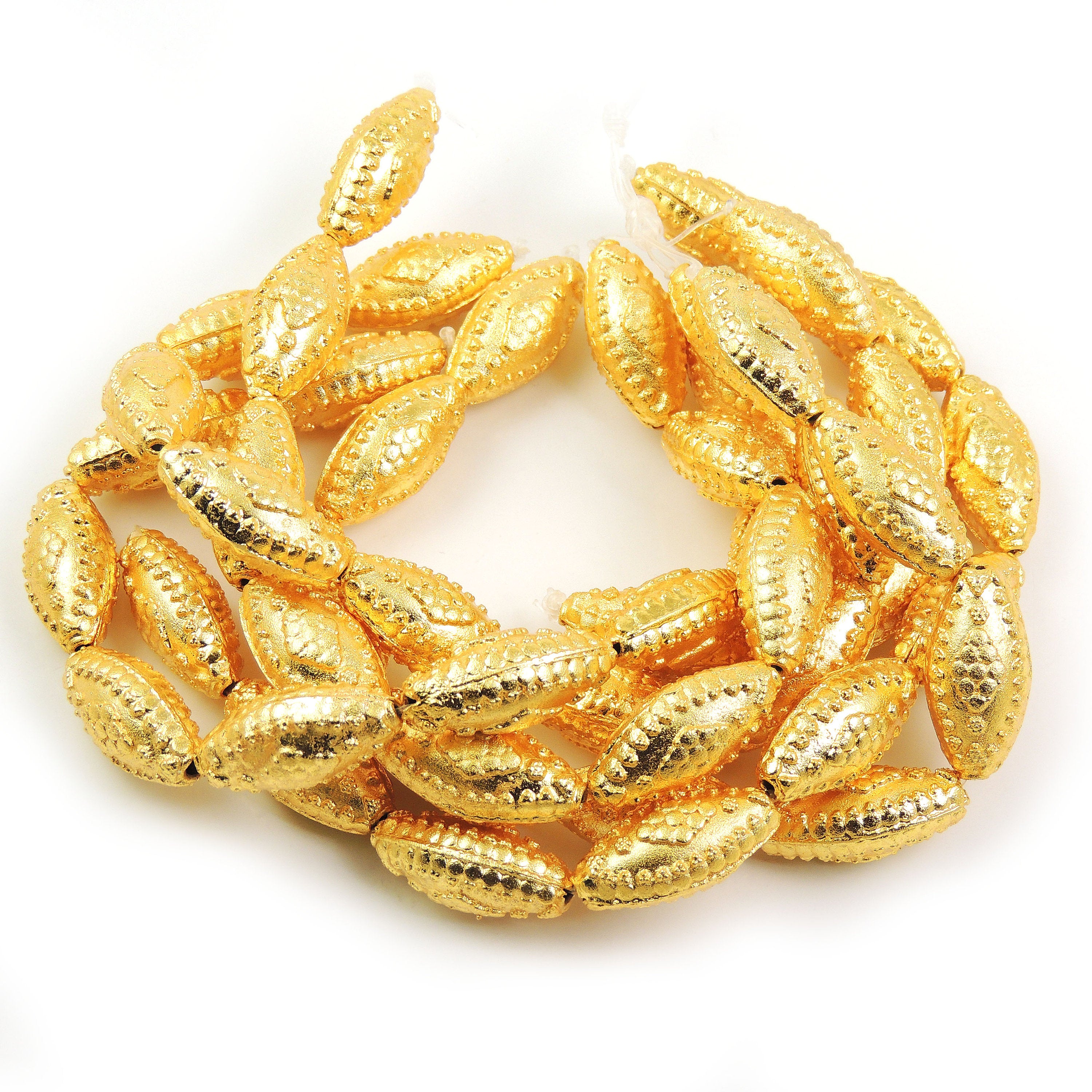 LISTING IS FOR ONE (1) Strand 24k Gold Plated Designer Copper Casting Marquise Shape Beads - Jewelry- GPC650 8 Inches Strand and Each strand holds 9 Beads This Marquise Beads 24k gold plated on copper . Each Beads measures 24mmx12mm Approx Metal: Copper Plating: 24k Gold Plated Size: 24mmx12mm Approx Shape: Designer Marquise Beads Great Casting Finish Beads to add that special touch to your beautiful designs. Exclusive high quality Beads made in 4 Generation old Production House where trust is a tradition Bulk wholesale pricing is available convo me for information on this listing or any others in my shop. We are continuously adding new products in our store. So keep coming back to see more great deals on gems in our mart Handmade in India. Designed by our designers in USA CLICK BELOW TO CHECK ALL OUR 24 K GOLD PLATED ON COPPER https://www.etsy.com/shop/Tucsonbeads/items?search_query=gold+copper+beads