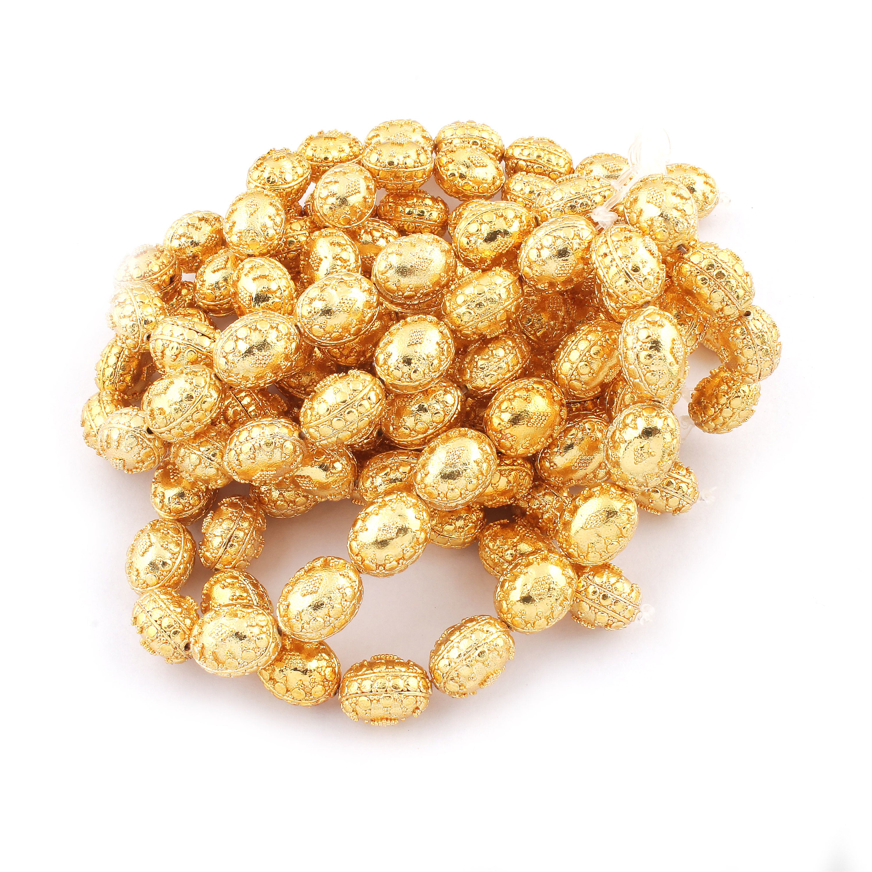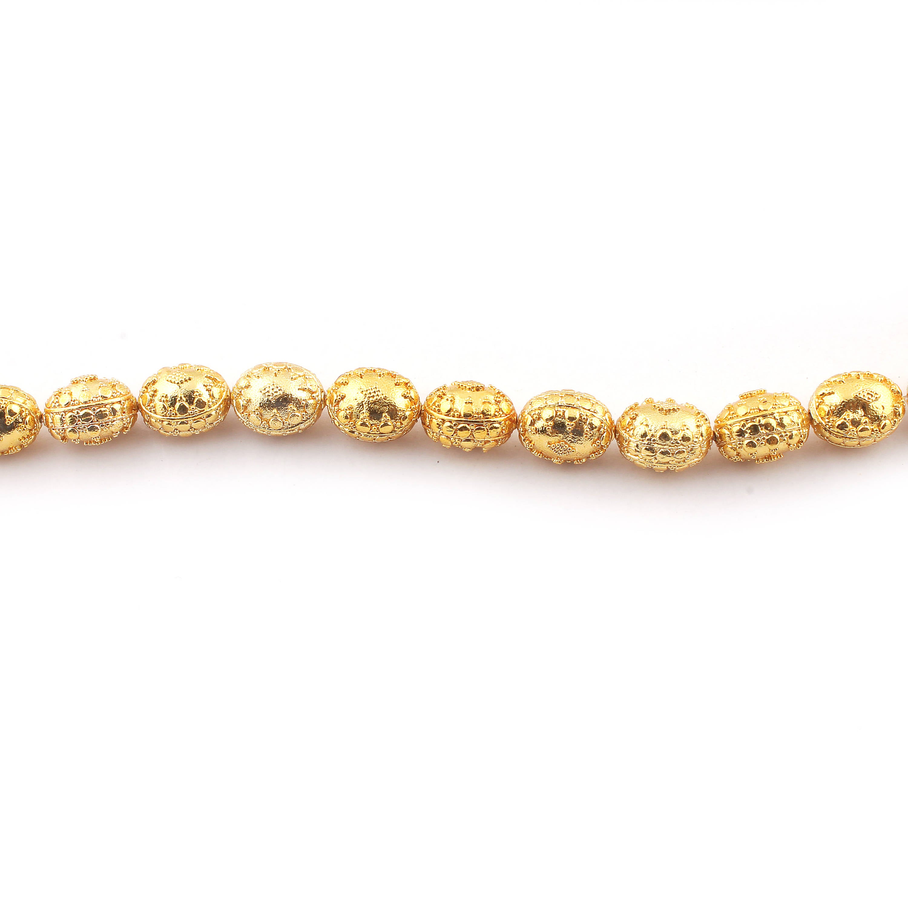 1 Strand 24k Gold Plated Designer Copper Casting Oval Beads - Jewelry Making- 10mmx14mm 8 Inches GPC087