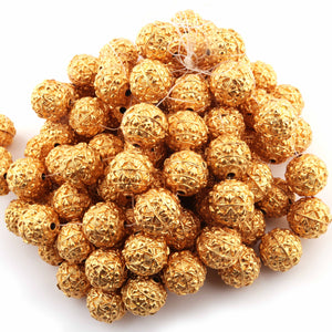 1 Strand 24k Gold Plated Designer Copper Casting Round Ball Beads - Jewelry Making - GPC853