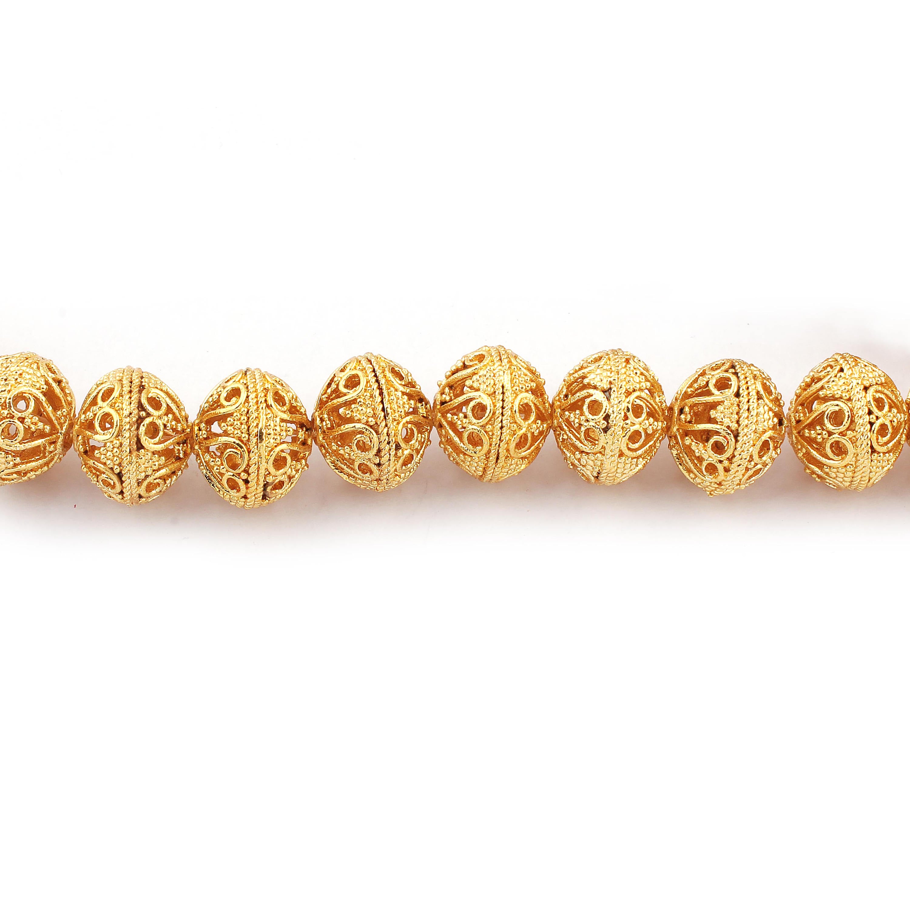 LISTING IS FOR ONE (1) Strand 24k Gold Plated Designer Copper Casting Round Shape Beads - Jewelry- GPC326 8 Inches Strand and Each strand holds 10+ Beads This Round Beads 24k gold plated on copper. Each Beads measures 16mmx14mm Approx Metal: Copper Plating: 24k Gold Plated Size: 16mmx14mm Approx Shape: Round Great Casting Finish Beads to add that special touch to your beautiful designs. Exclusive high quality Beads made in 4 Generation old Production House where trust is a tradition Bulk wholesale pricing is available convo me for information on this listing or any others in my shop. We are continuously adding new products in our store. So keep coming back to see more great deals on gems in our mart Handmade in India. Designed by our designers in USA https://www.etsy.com/shop/Tucsonbeads/items?search_query=gold+copper+beads