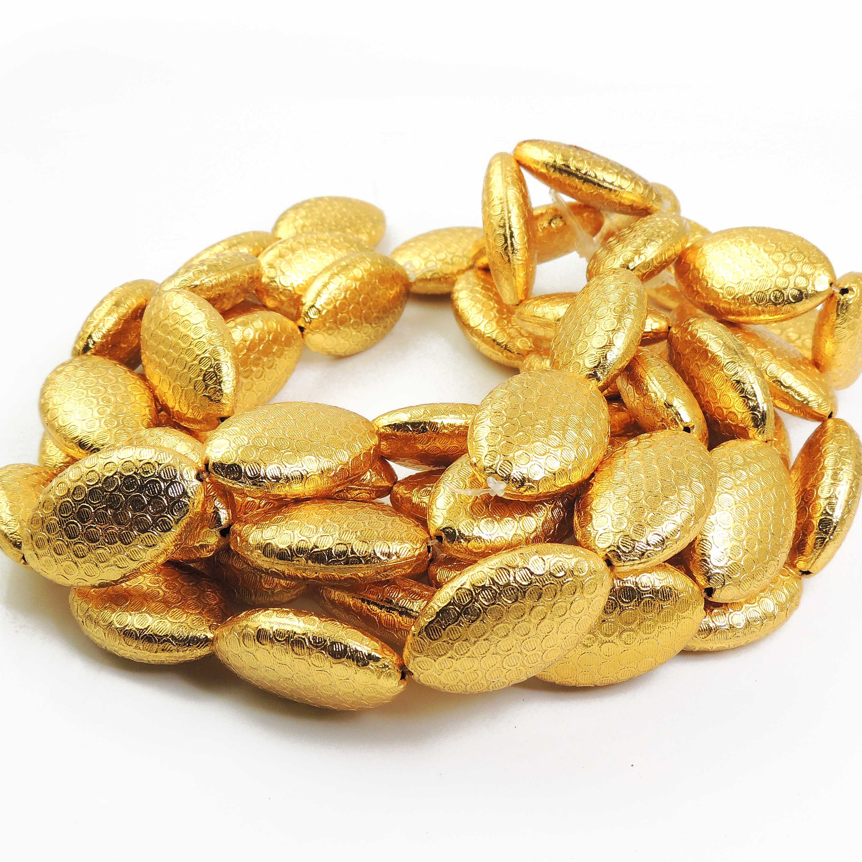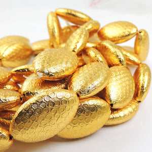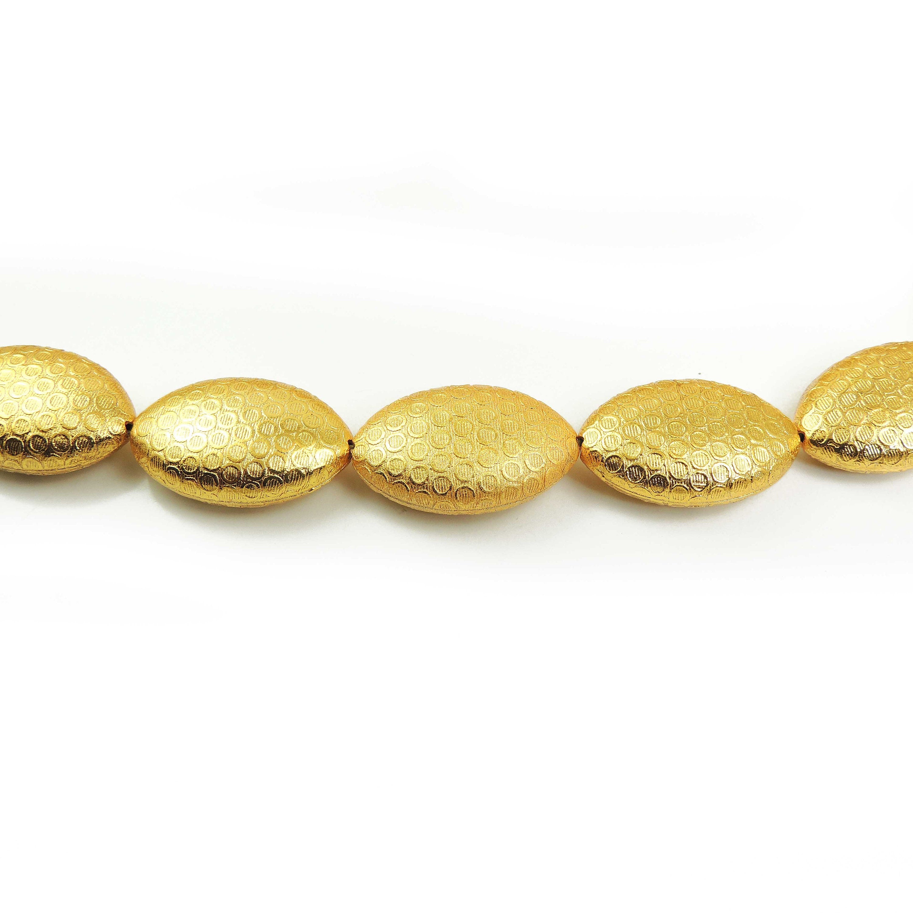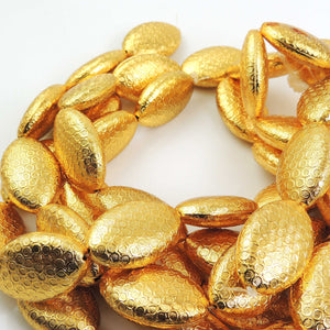 LISTING IS FOR ONE (1) Strand 24k Gold Plated Designer Copper Casting Stamped Finish Oval Beads - Jewelry - GPC746 7 Inches Strand and Each strand holds 4 Beads This Coin Bead 24k gold plated on copper. Each Beads measures 28mmx18mm Approx Metal: Copper Plating: 24k Gold Plated Size: 28mmx18mm Approx Shape: Designer Oval Beads Great Coin Bead Casting Finish to add that special touch to your beautiful designs. Exclusive high quality Beads made in 4 Generation old Production House where trust is a tradition Bulk wholesale pricing is available convo me for information on this listing or any others in my shop. We are continuously adding new products in our store. So keep coming back to see more great deals on gems in our mart Handmade in India. Designed by our designers in USAhttps://www.etsy.com/shop/Tucsonbeads/items?search_query=gold+copper+beads