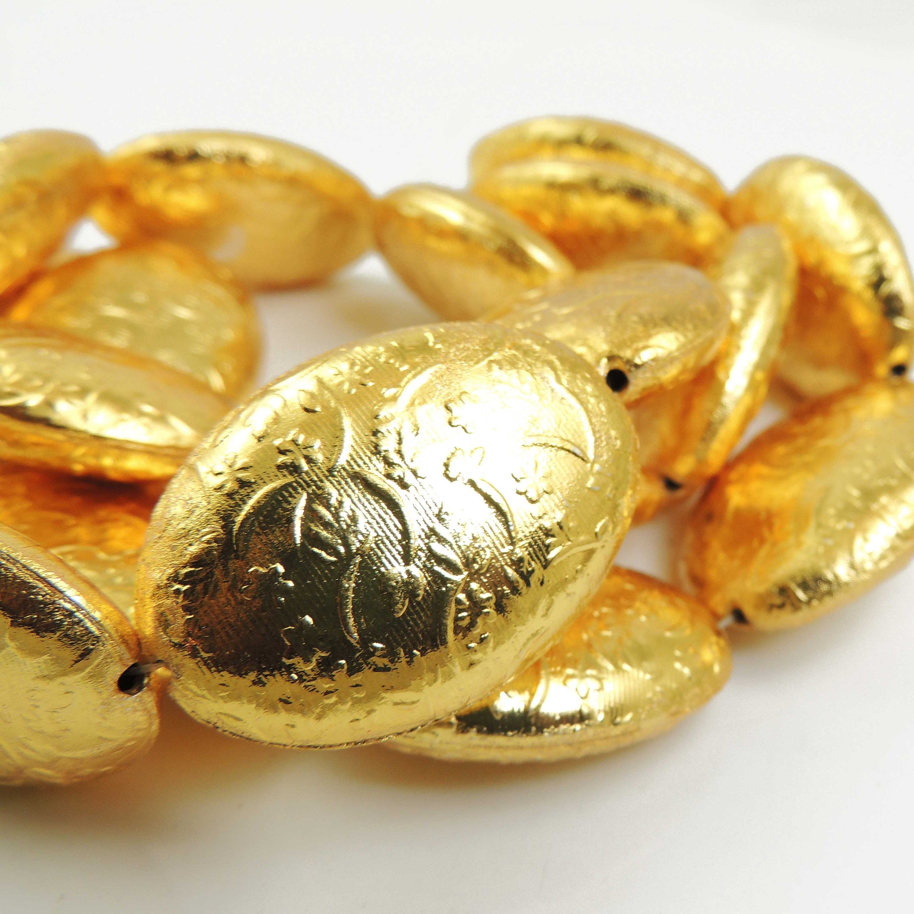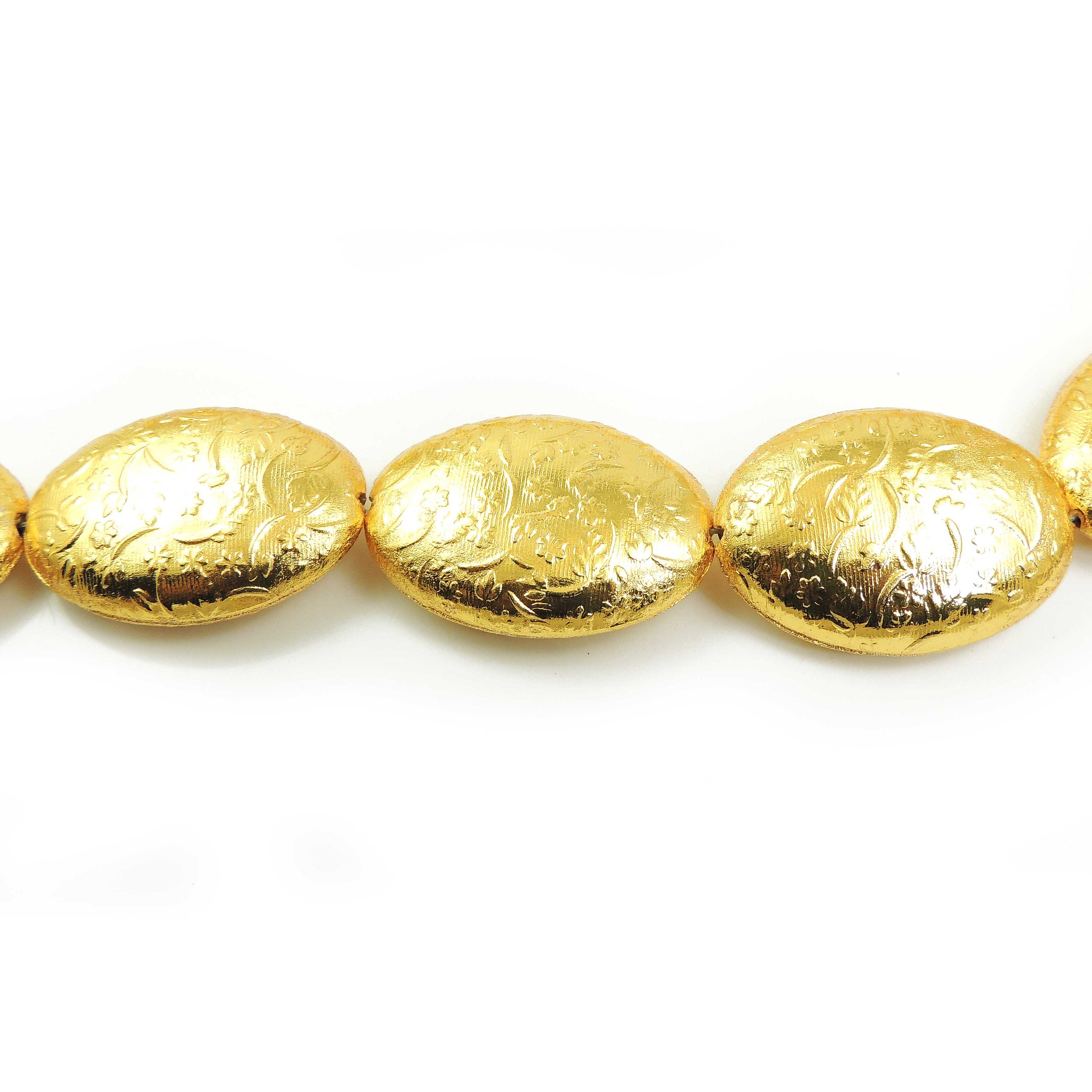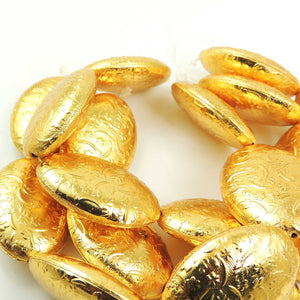 1 Strand 24k Gold Plated Designer Copper Casting Stamped Finish Oval Beads - 36mmx26mm Oval Bead - Jewelry - 8 Inches GPC747