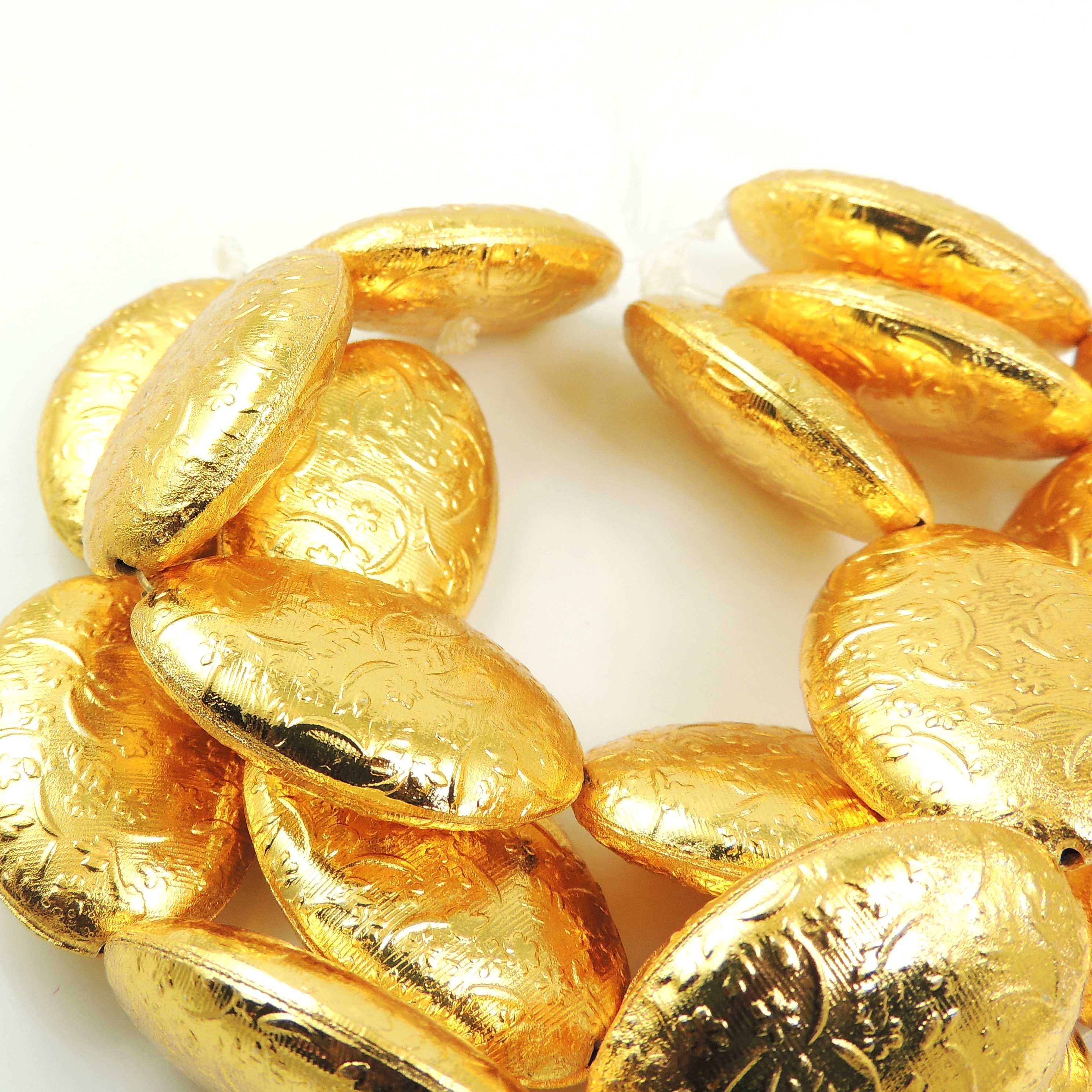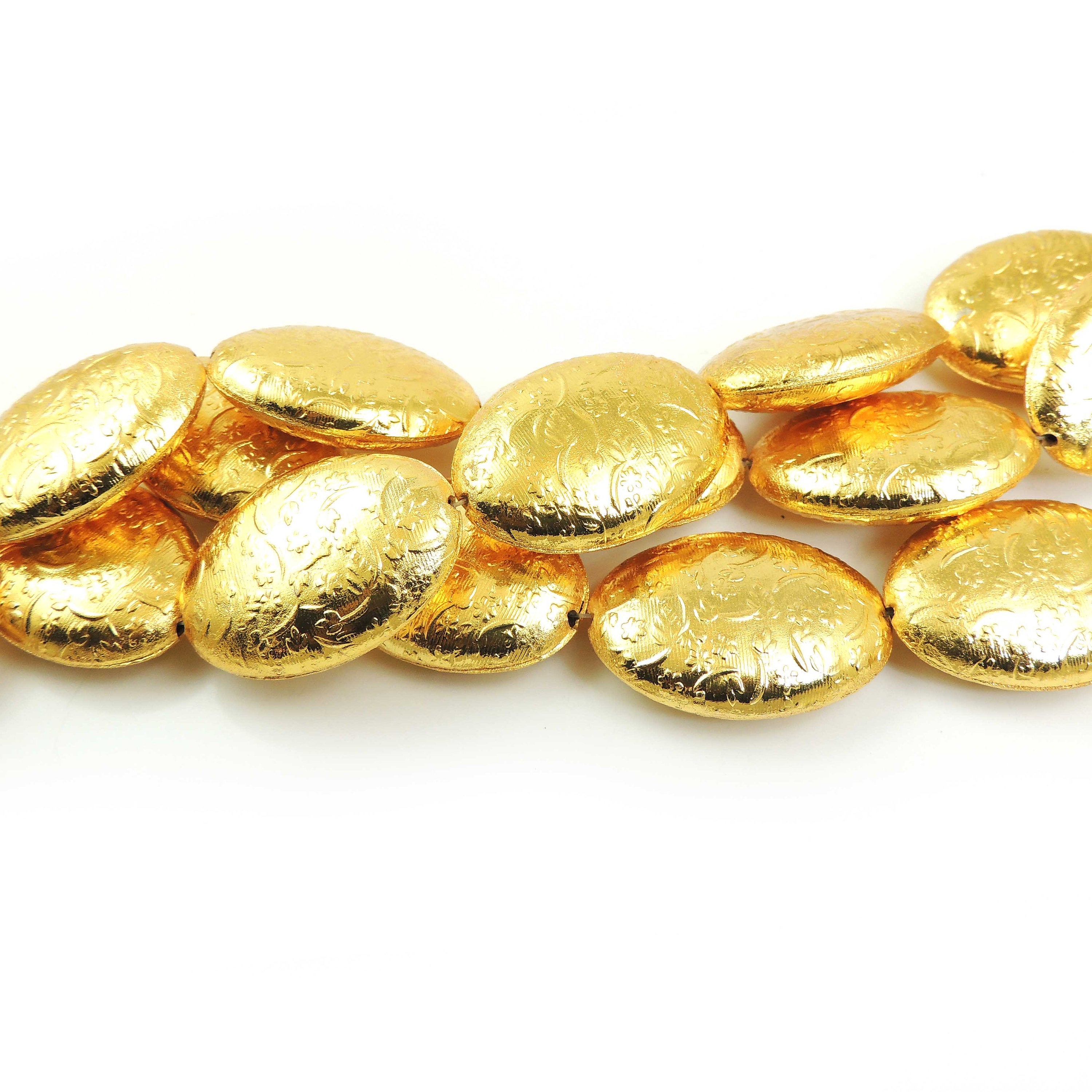 LISTING IS FOR ONE (1) Strand 24k Gold Plated Designer Copper Casting Stamped Finish Oval Beads - Jewelry - GPC747 8 Inches Strand and Each strand holds 6 Beads This Coin Bead 24k gold plated on copper. Each Beads measures 36mmx26mm Approx Metal: Copper Plating: 24k Gold Plated Size: 36mmx26mm Approx Shape: Designer Oval Beads Great Coin Bead Casting Finish to add that special touch to your beautiful designs. Exclusive high quality Beads made in 4 Generation old Production House where trust is a tradition Bulk wholesale pricing is available convo me for information on this listing or any others in my shop. We are continuously adding new products in our store. So keep coming back to see more great deals on gems in our mart Handmade in India. Designed by our designers in USA CLICK BELOW TO CHECK ALL OUR 24 K GOLD PLATED ON COPPER https://www.etsy.com/shop/Tucsonbeads/items?search_query=gold+copper+beads