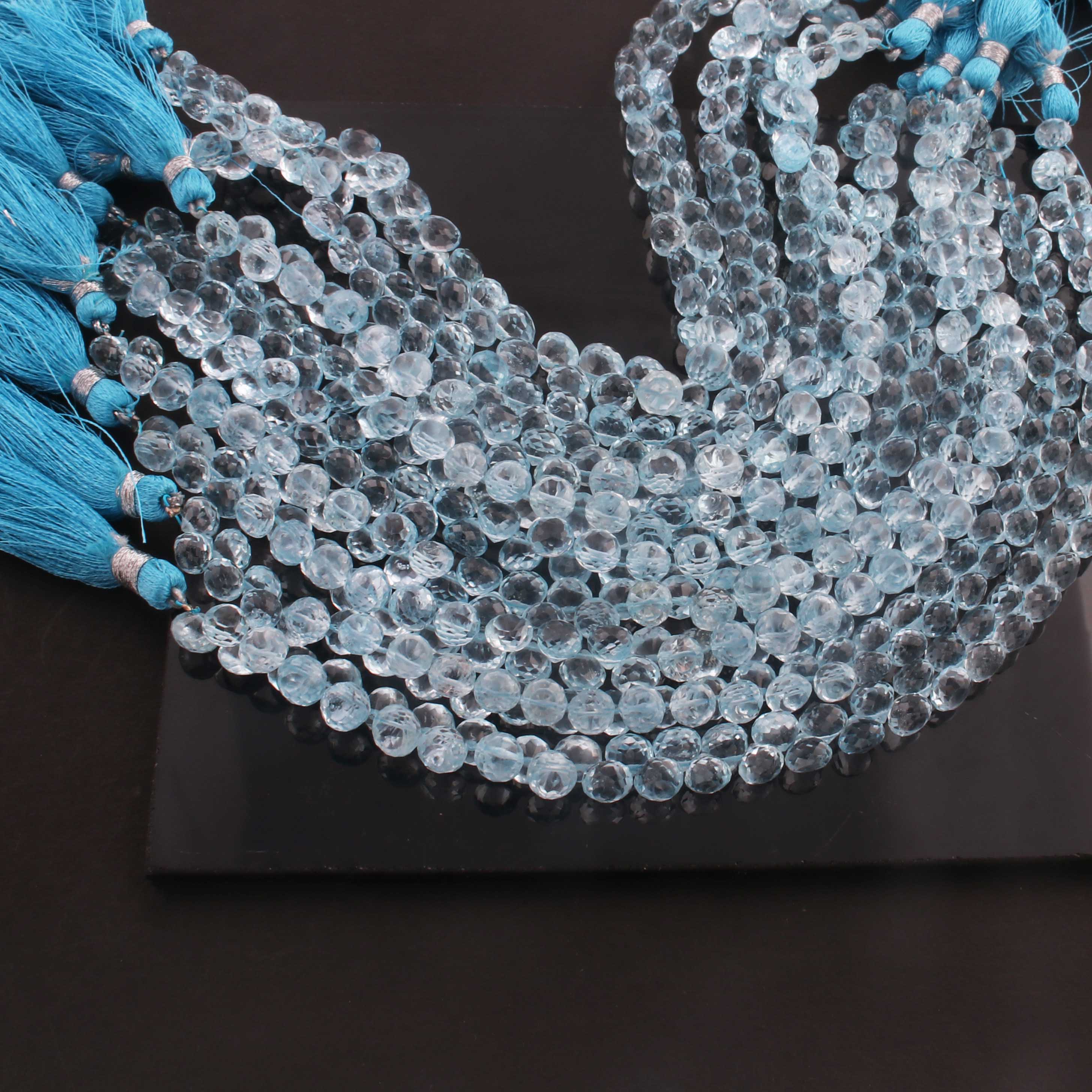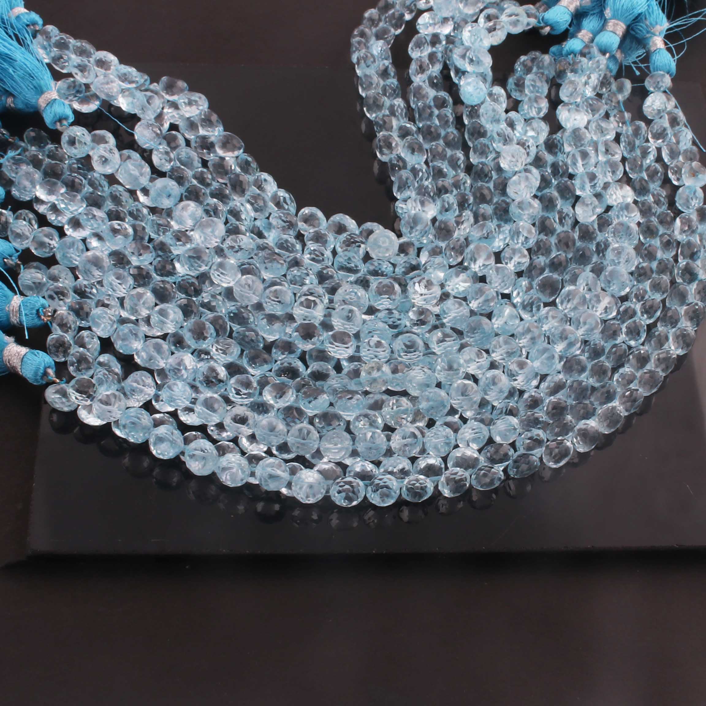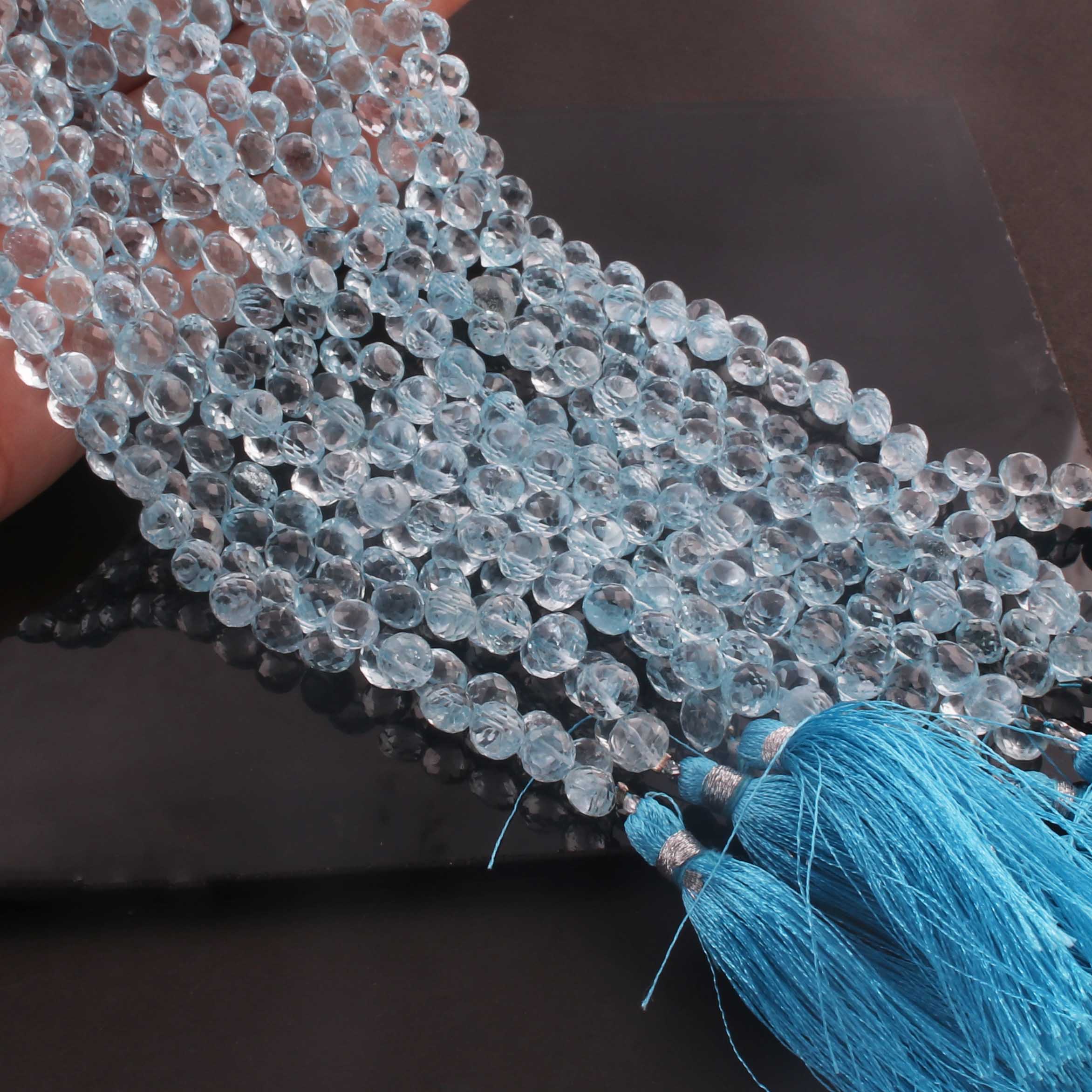 1 Strand Natural Blue Topaz Faceted Onion Shape Briolettes -5mm-6mm-9 inches BR02758