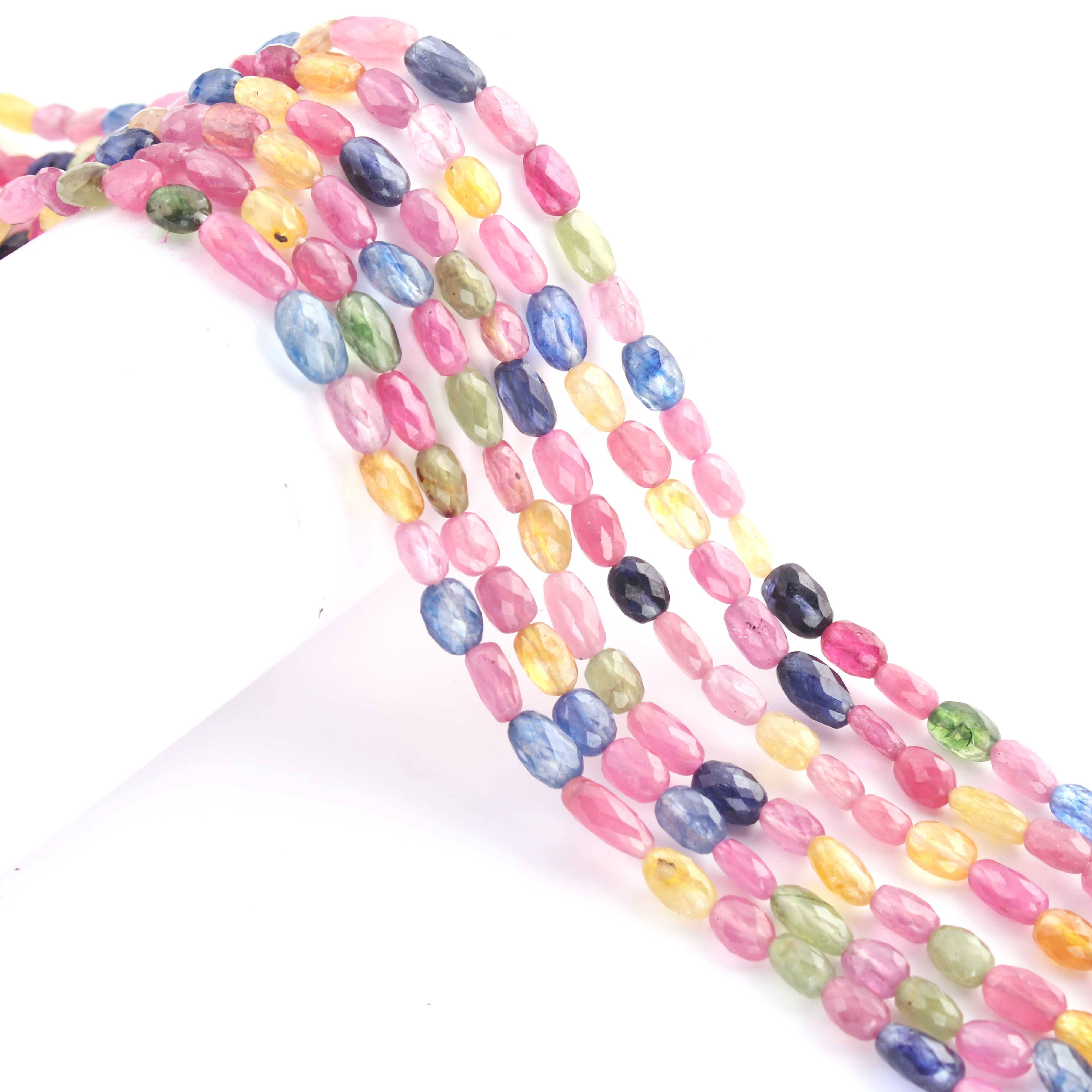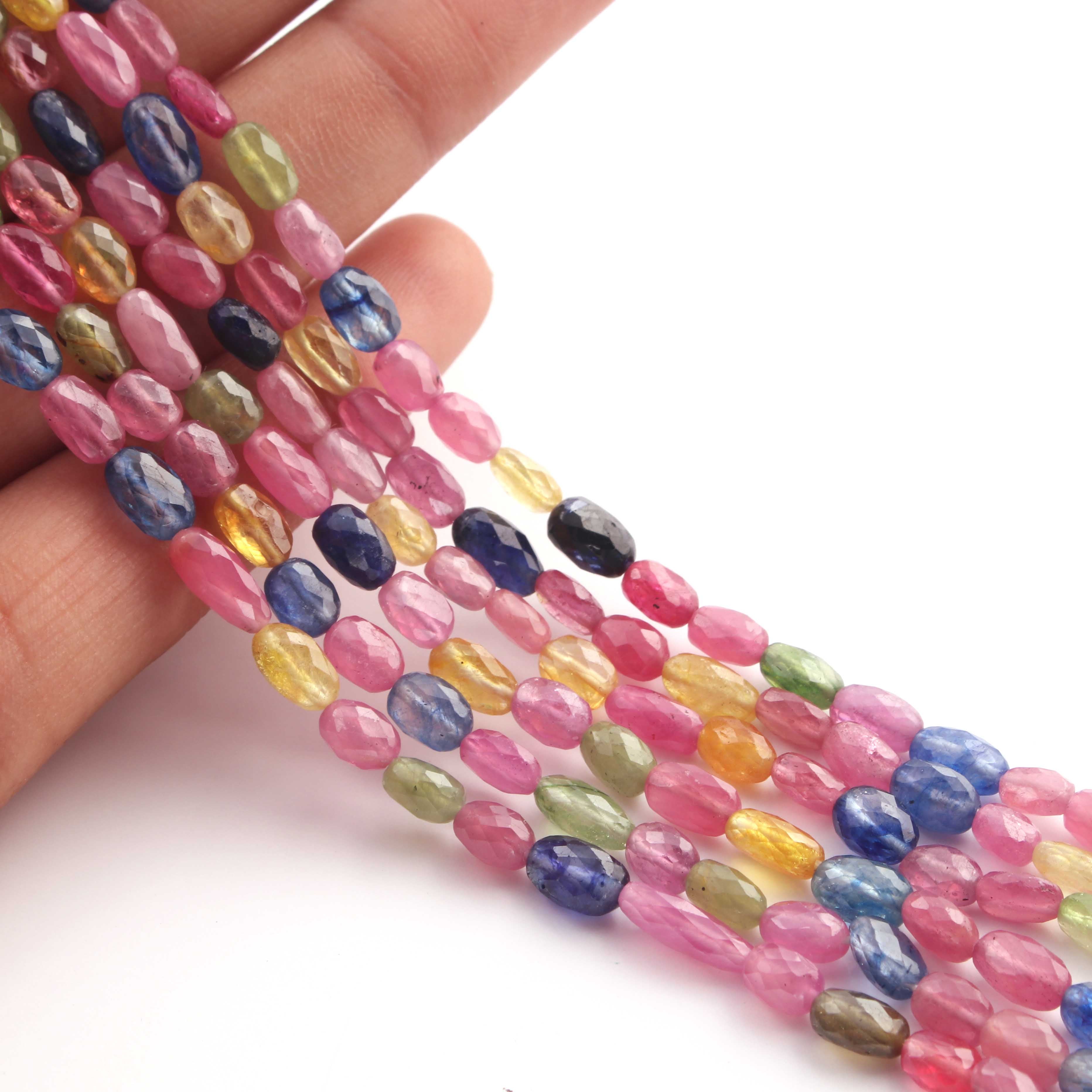 1 Strand Beautiful Multi Sapphire Faceted Briolettes Oval Shape Gemstone Beads-5mmx4mm-9mmx5mm-15 Inches -BR03051