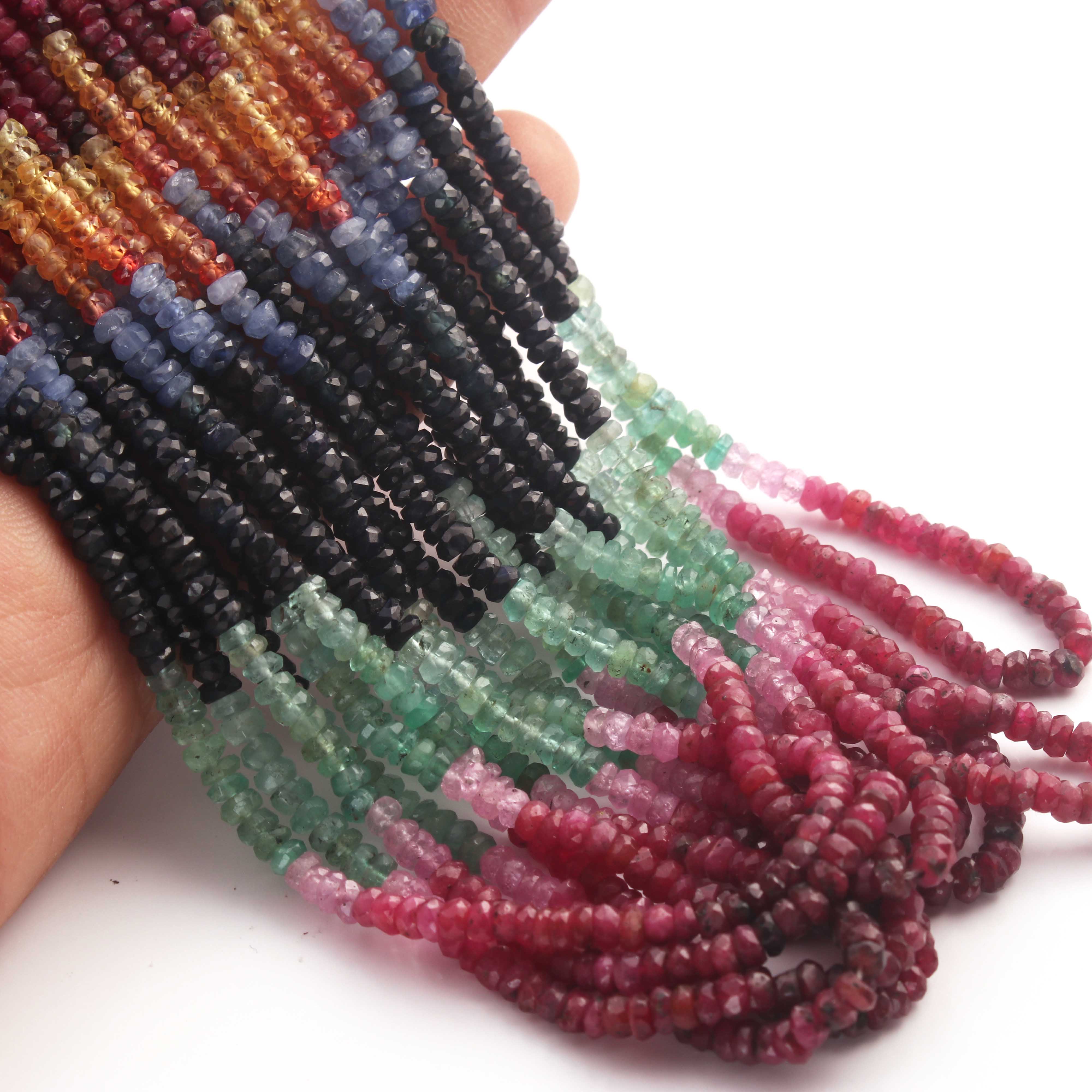 1 Strand Beautiful Multi Sapphire Faceted Rondelles - Gemstone Roundelles Beads -3mm-15 Inch- BR03027