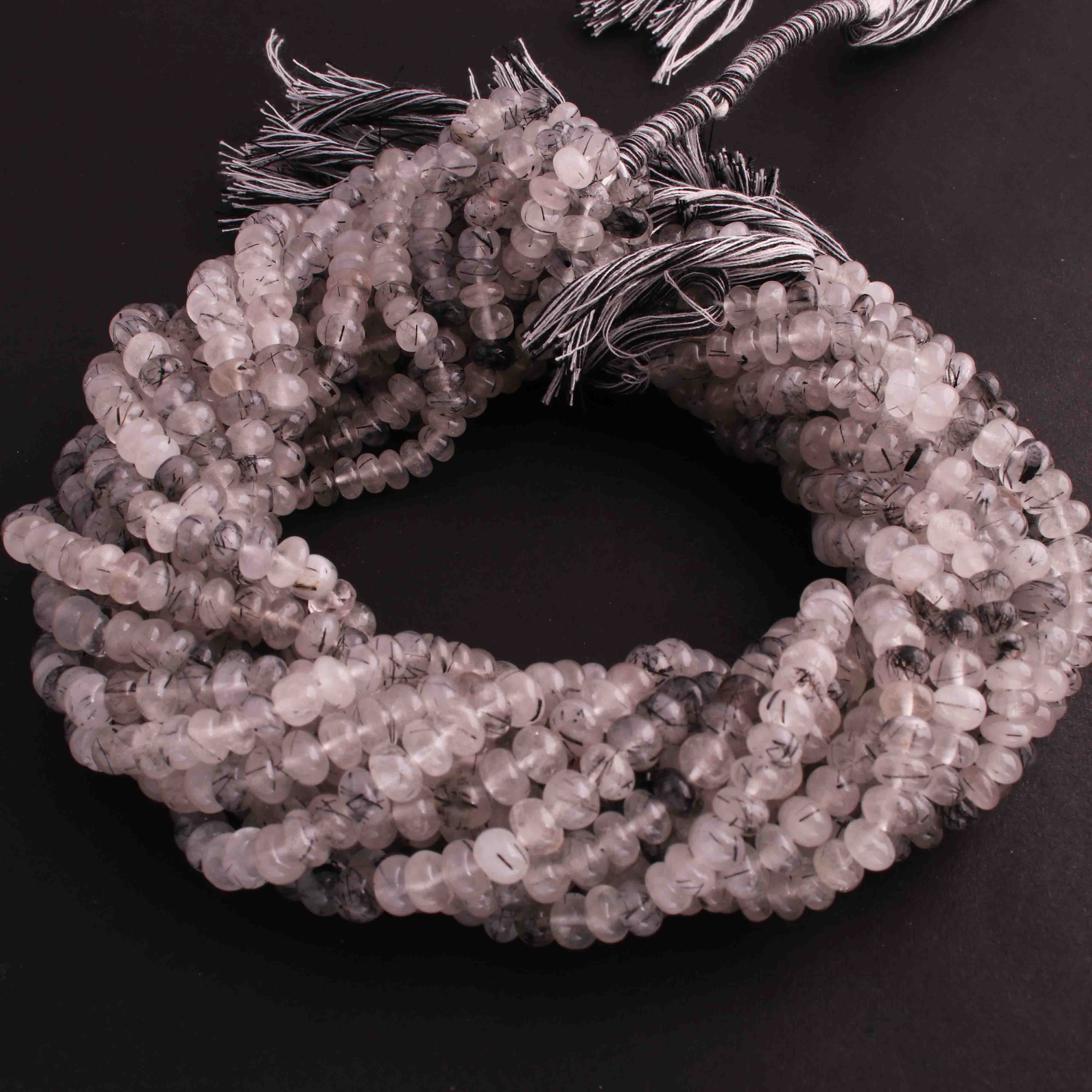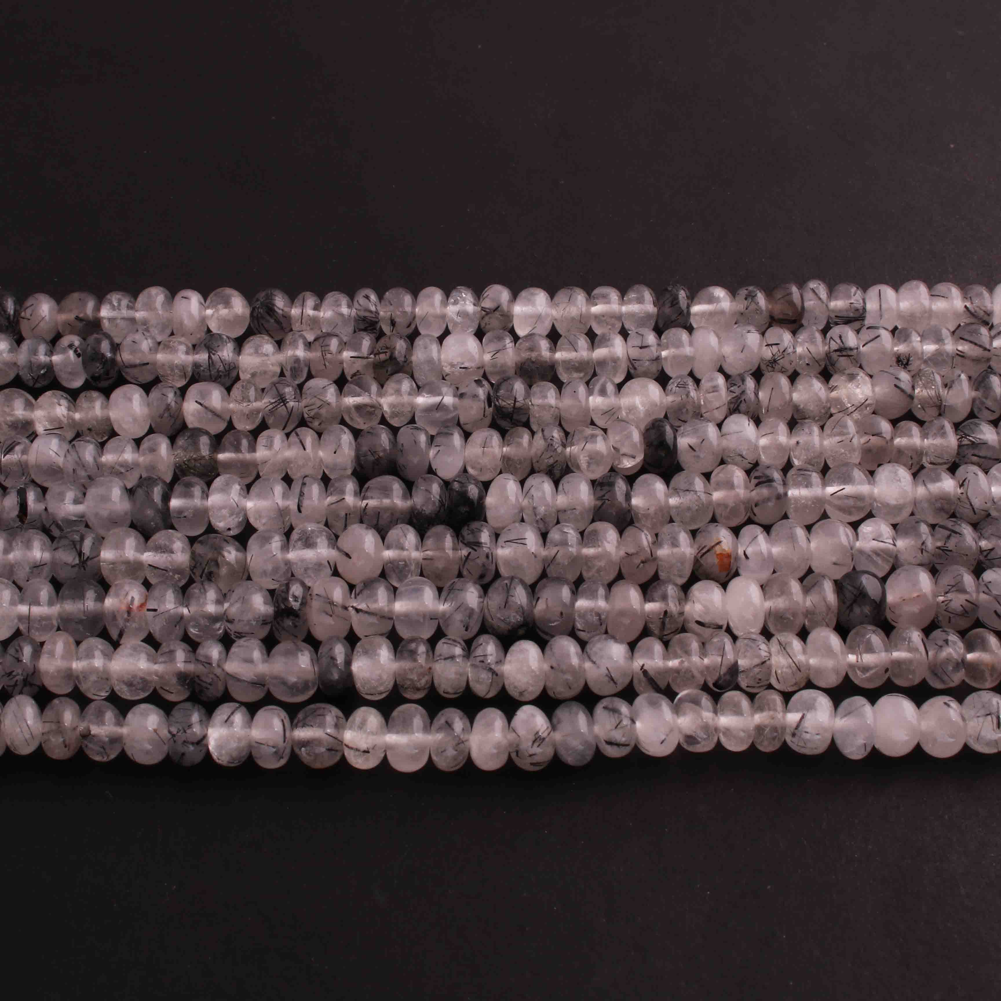 1 Strand Black Rutile Smooth Rondelles - Rutile Rondelles Beads -5mm- 7mm -13 Inches BR01093