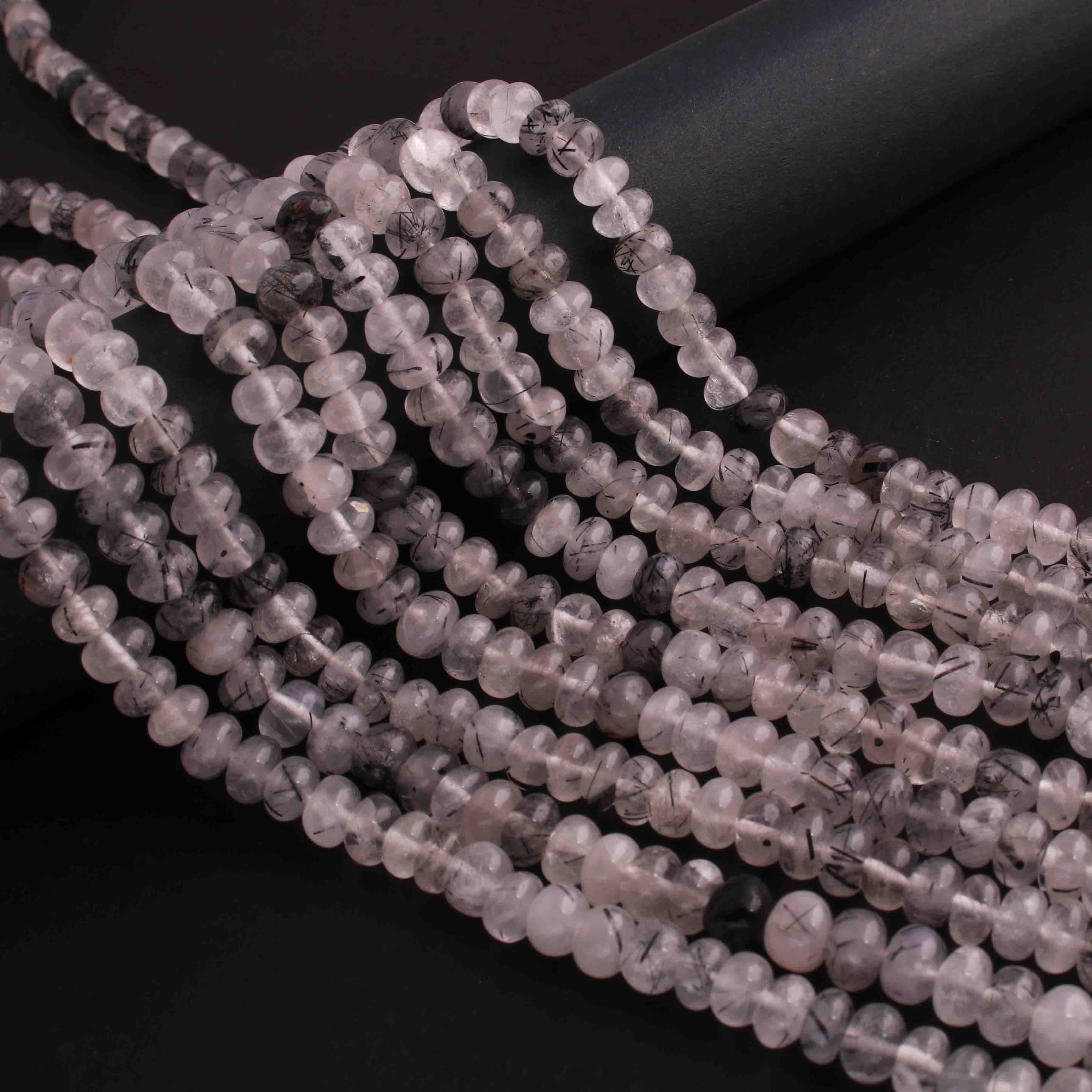1 Strand Black Rutile Smooth Rondelles - Rutile Rondelles Beads - 5mm- 7mm -13 Inches BR01093