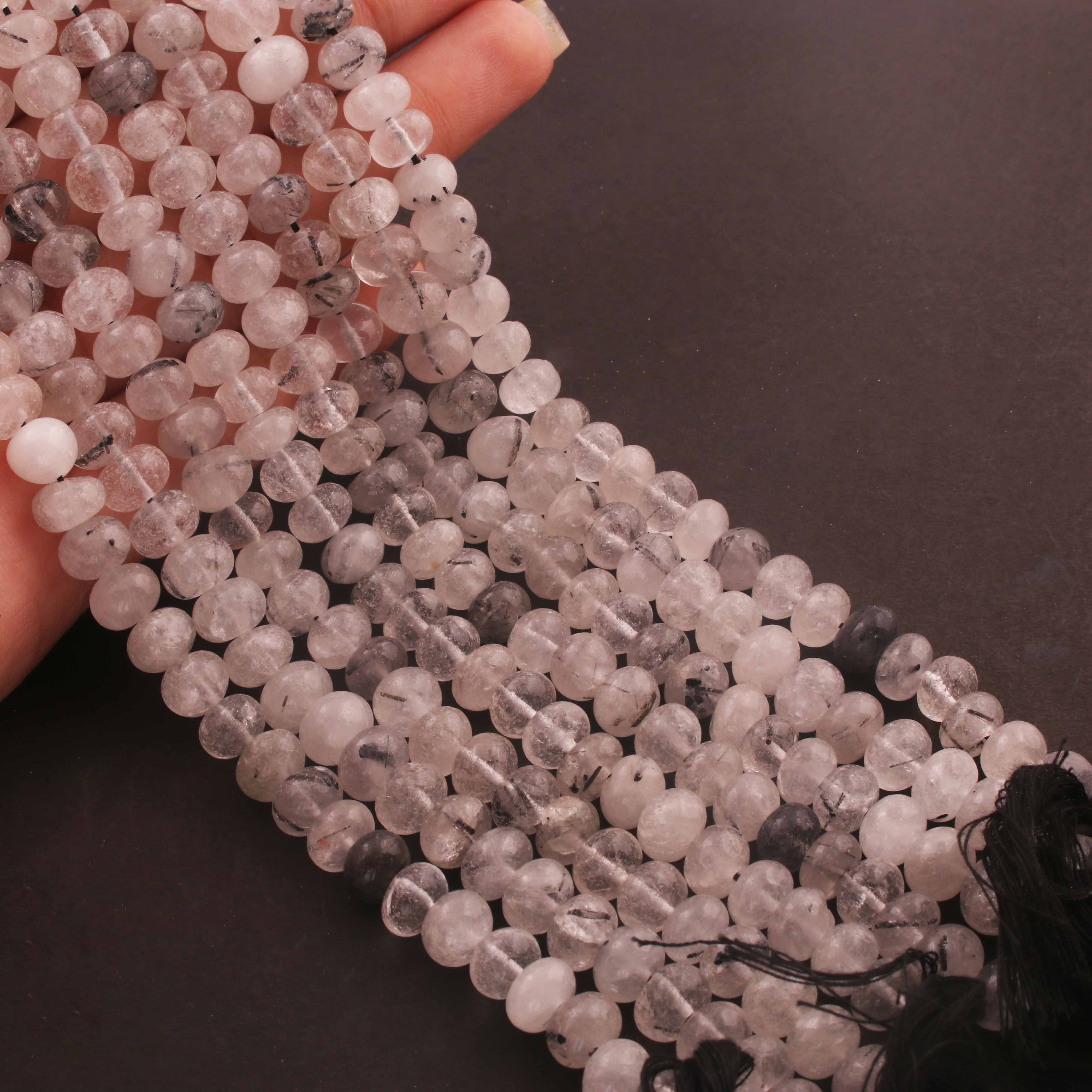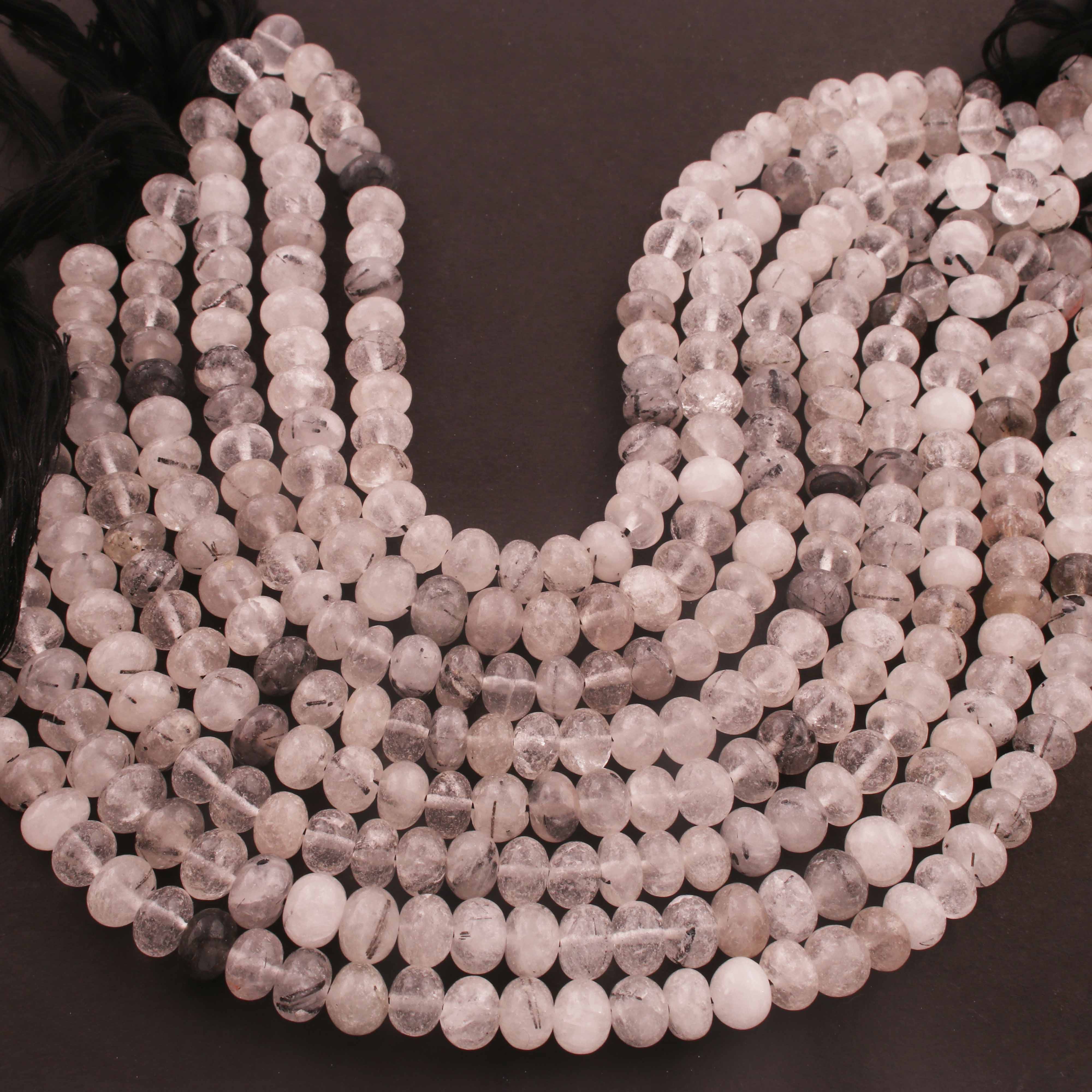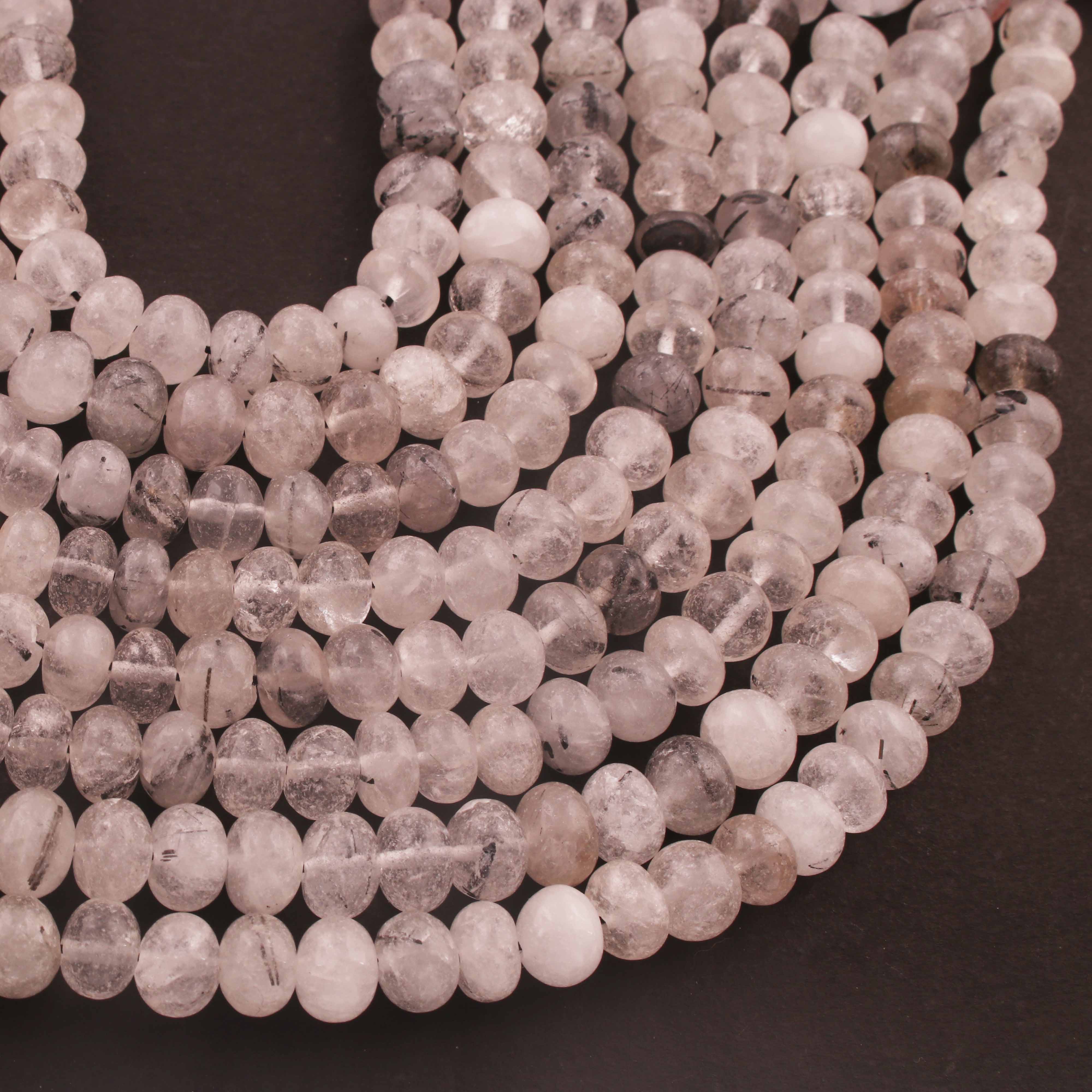 1 Strand Black Rutile Smooth Roundelles - Plain Semiprecious Rondelles - 9mm-10mm-9 Inches BR02731
