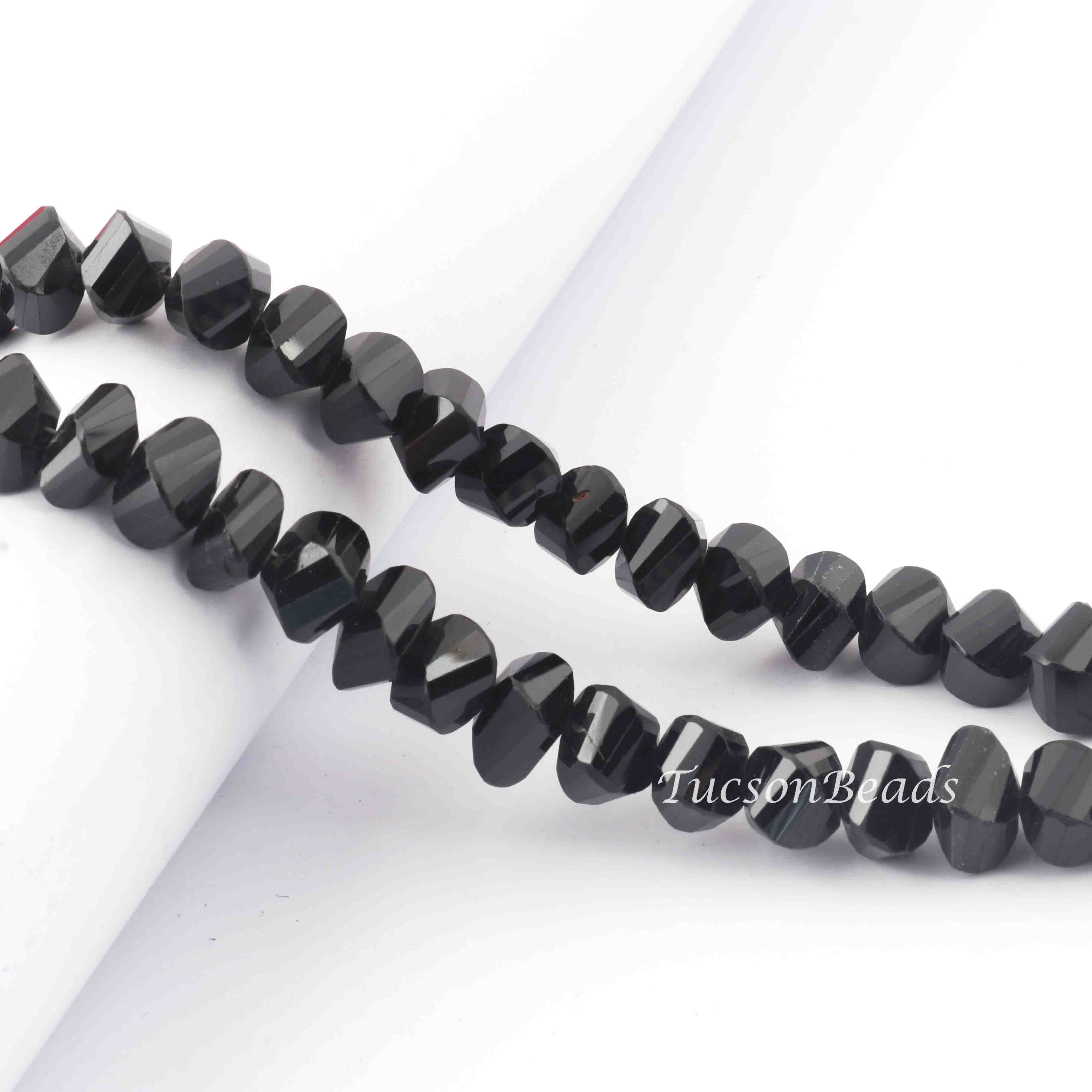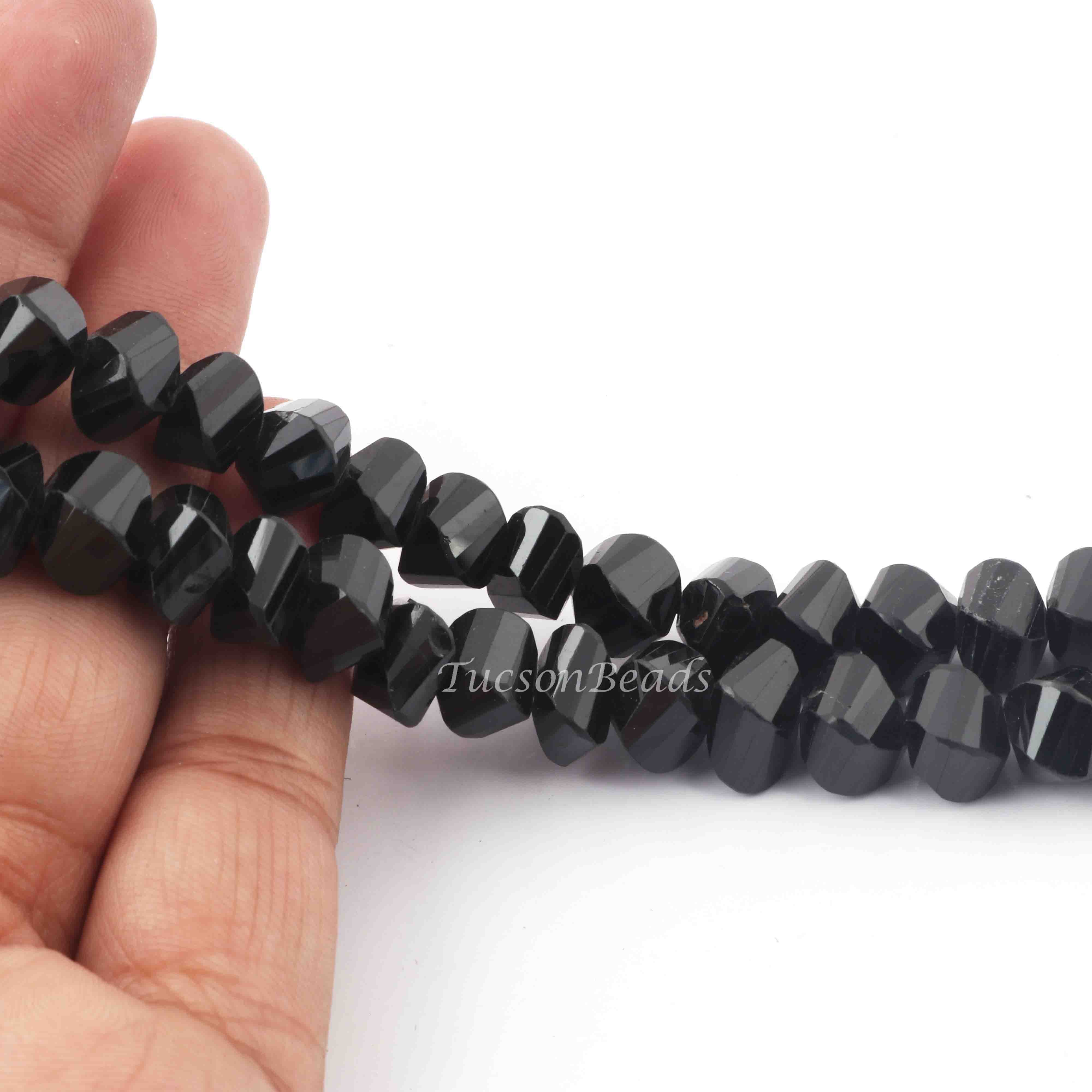 1 Strand Black Spinel Twisted Shape Briolettes - Faceted Briolettes 8mm 4 Inch BR2475