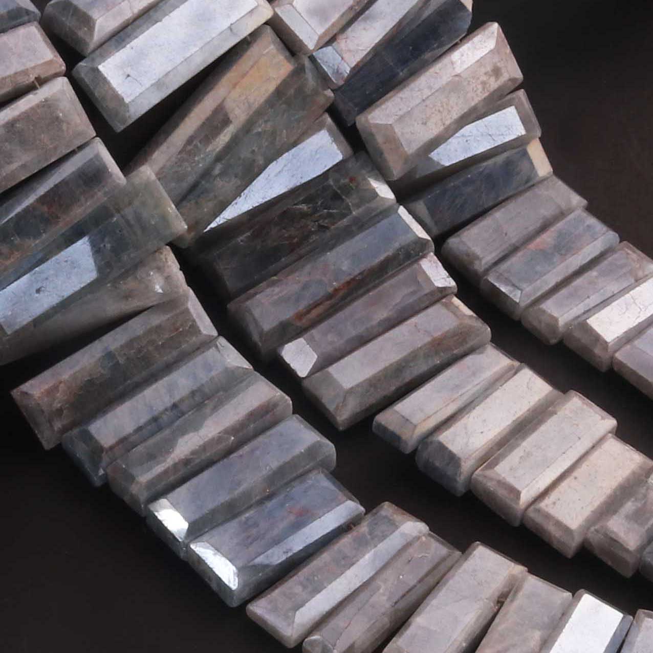 1 Strand Blue Silverite Faceted Briolettes -Rectangle Bar Shape Briolettes - 9mmx8mm-31mmx9mm 9.5 Inches BR0708