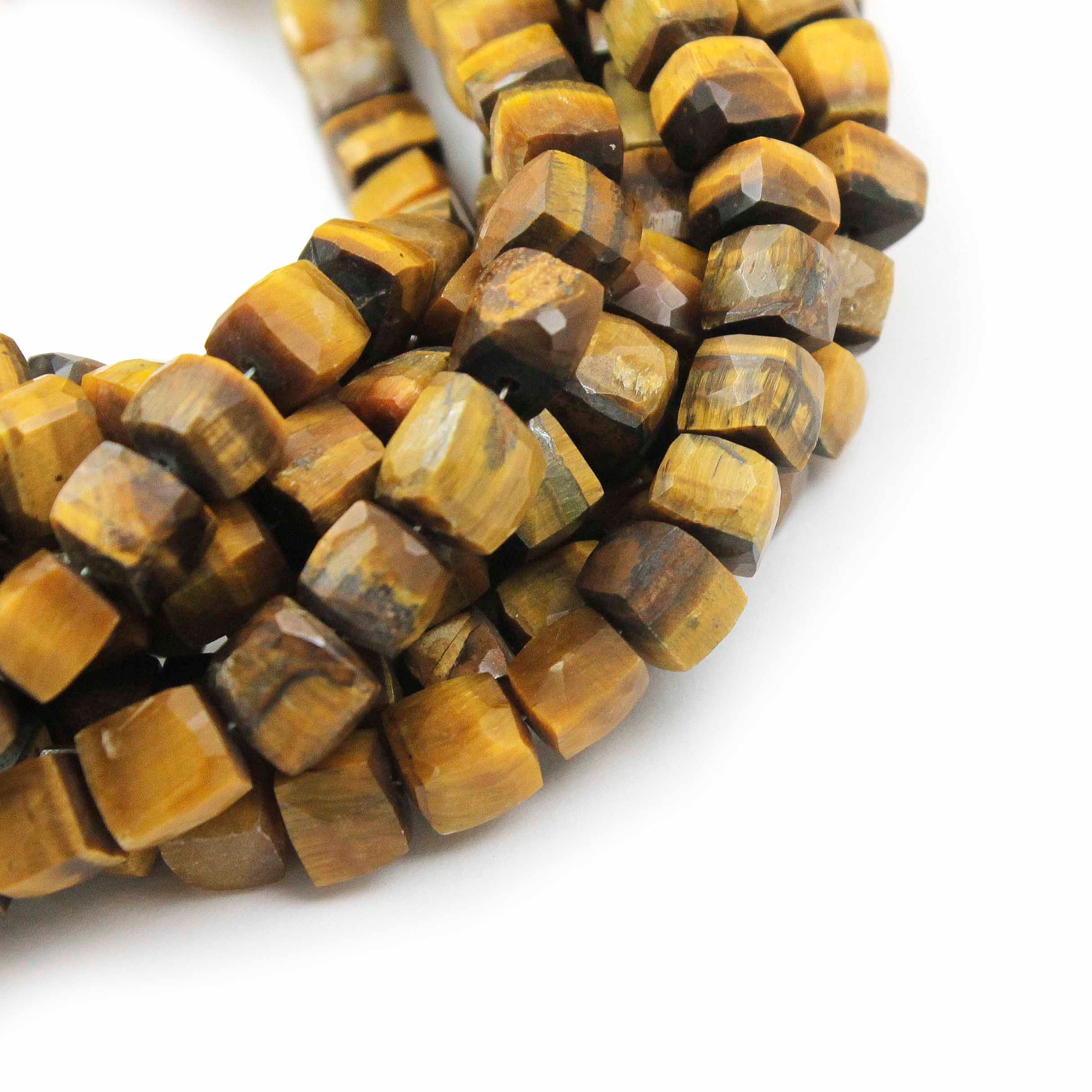 1 Strand Brown Tiger Eye Faceted Cube Briolettes - Tiger Eye Plain Box Shape Briolettes 6mmx7mm-8mmx7mm 8 Inches BR3490