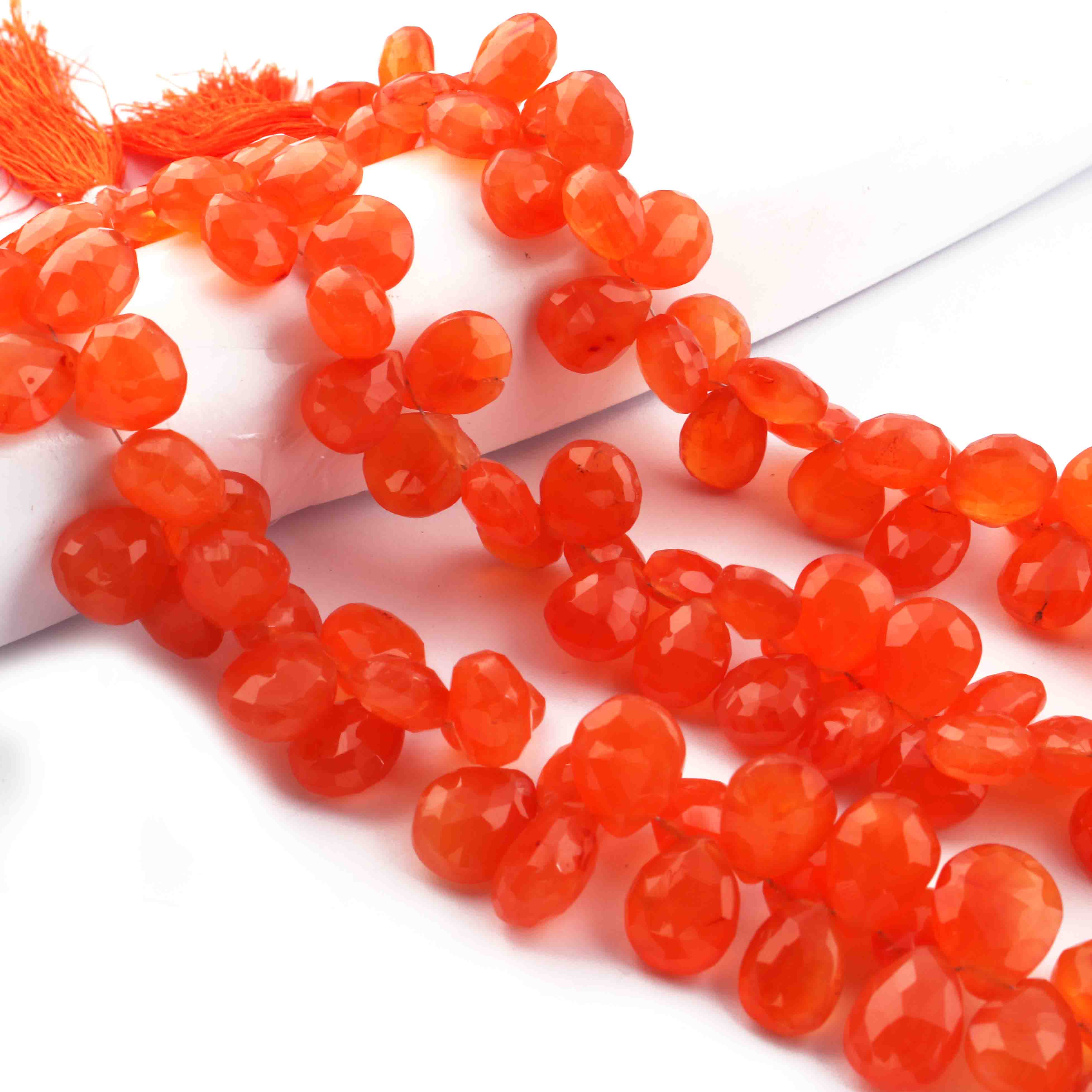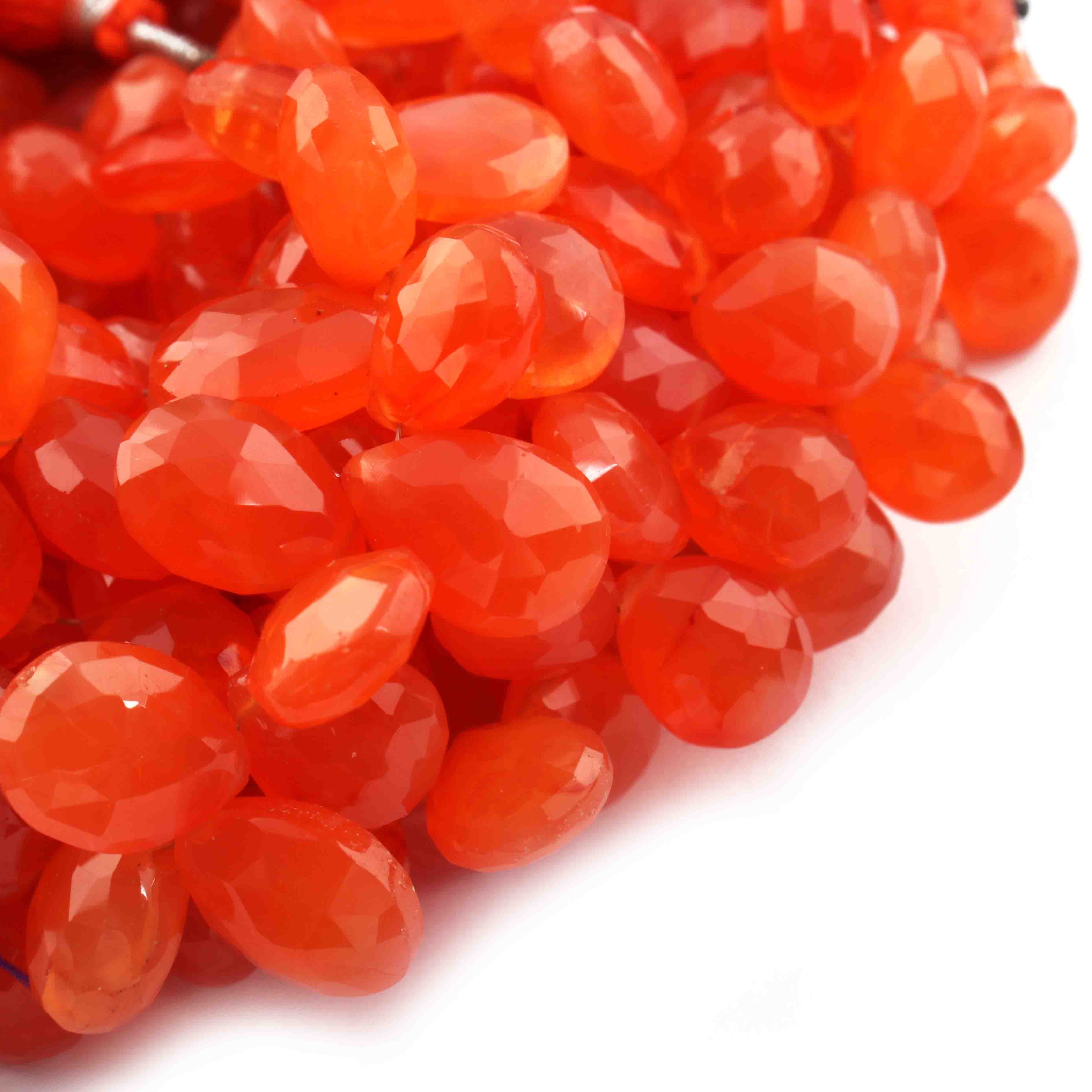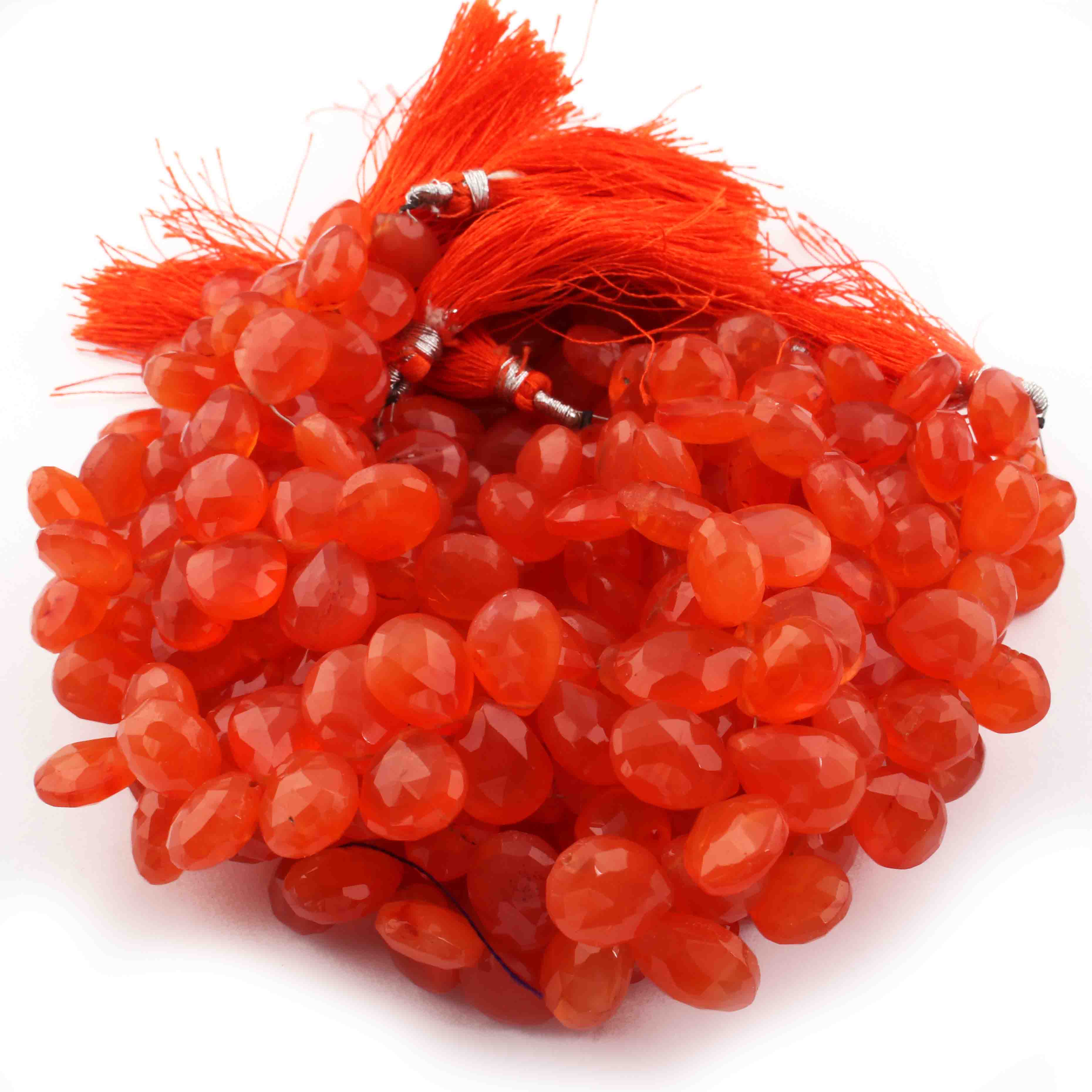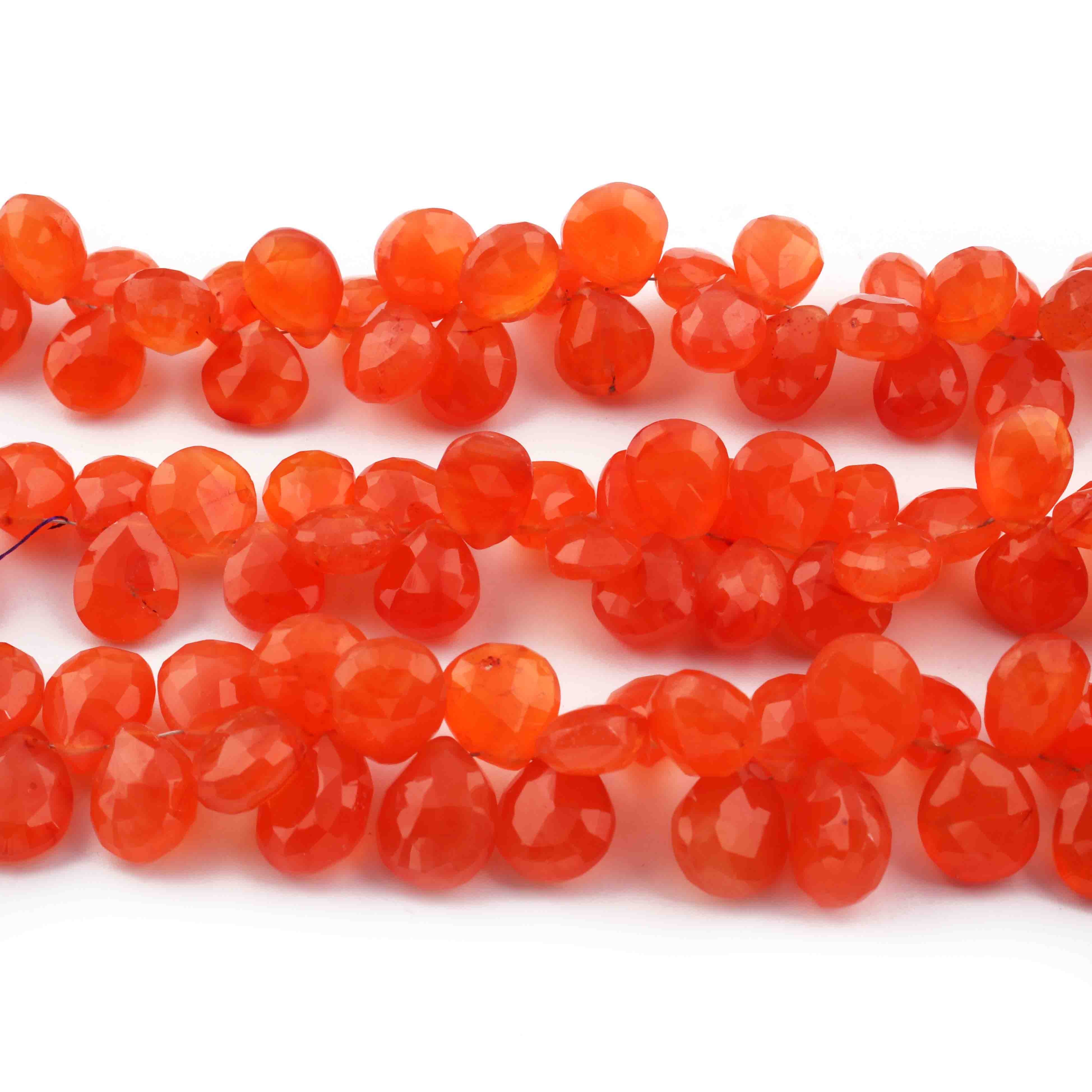 1 Strand Carnelian Faceted Briolettes -Pear Shape Briolettes - 10mmx8mm-10mmx8mm- 9 Inches BR0741
