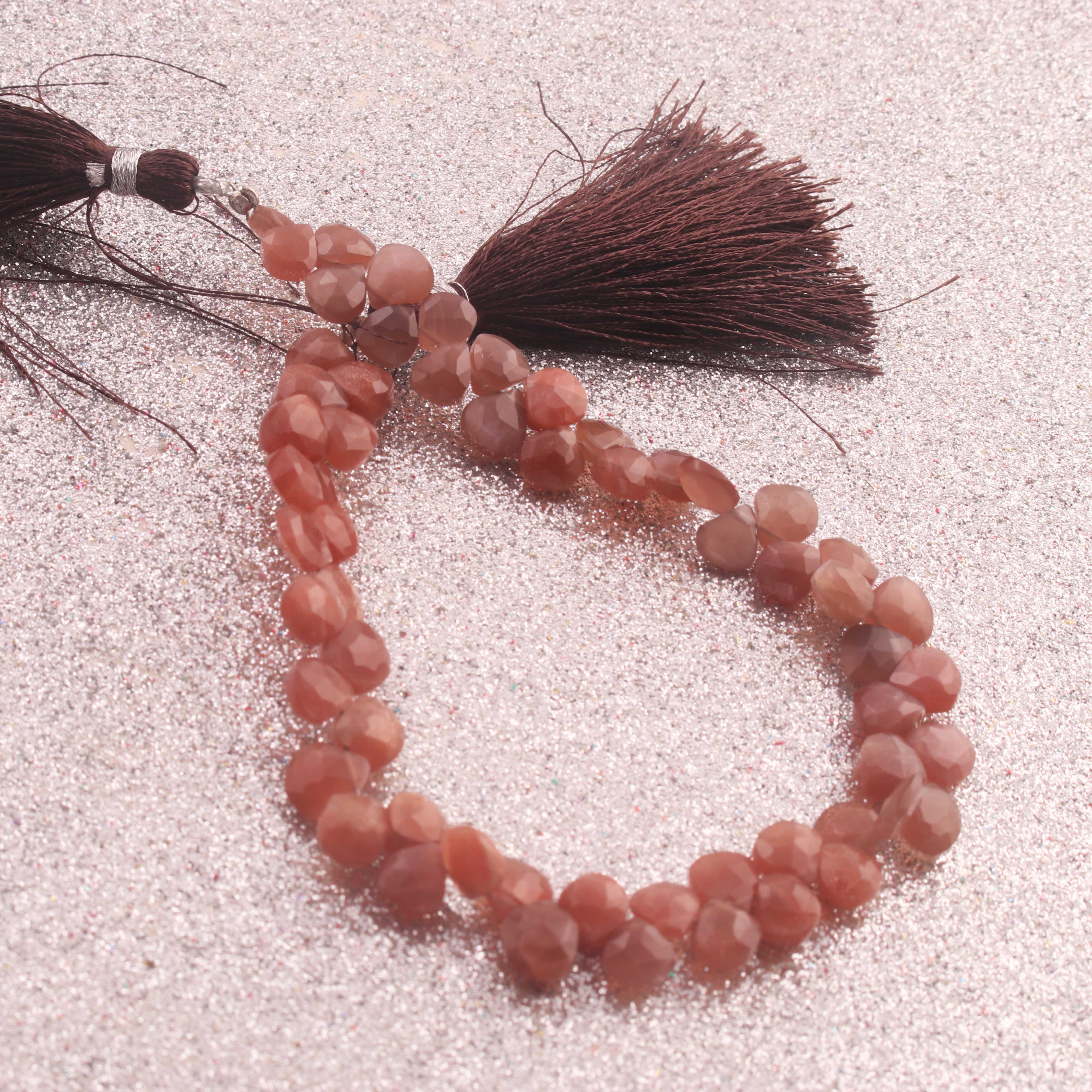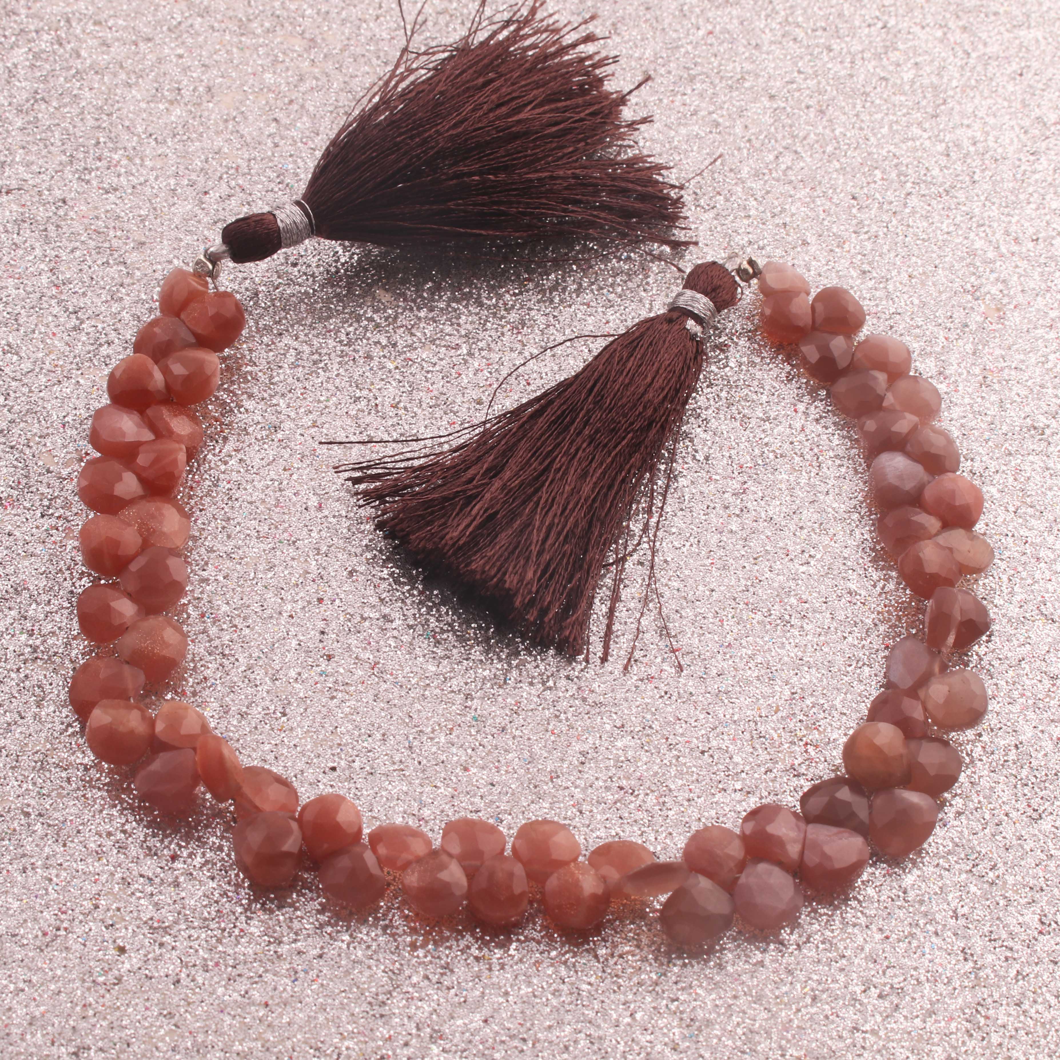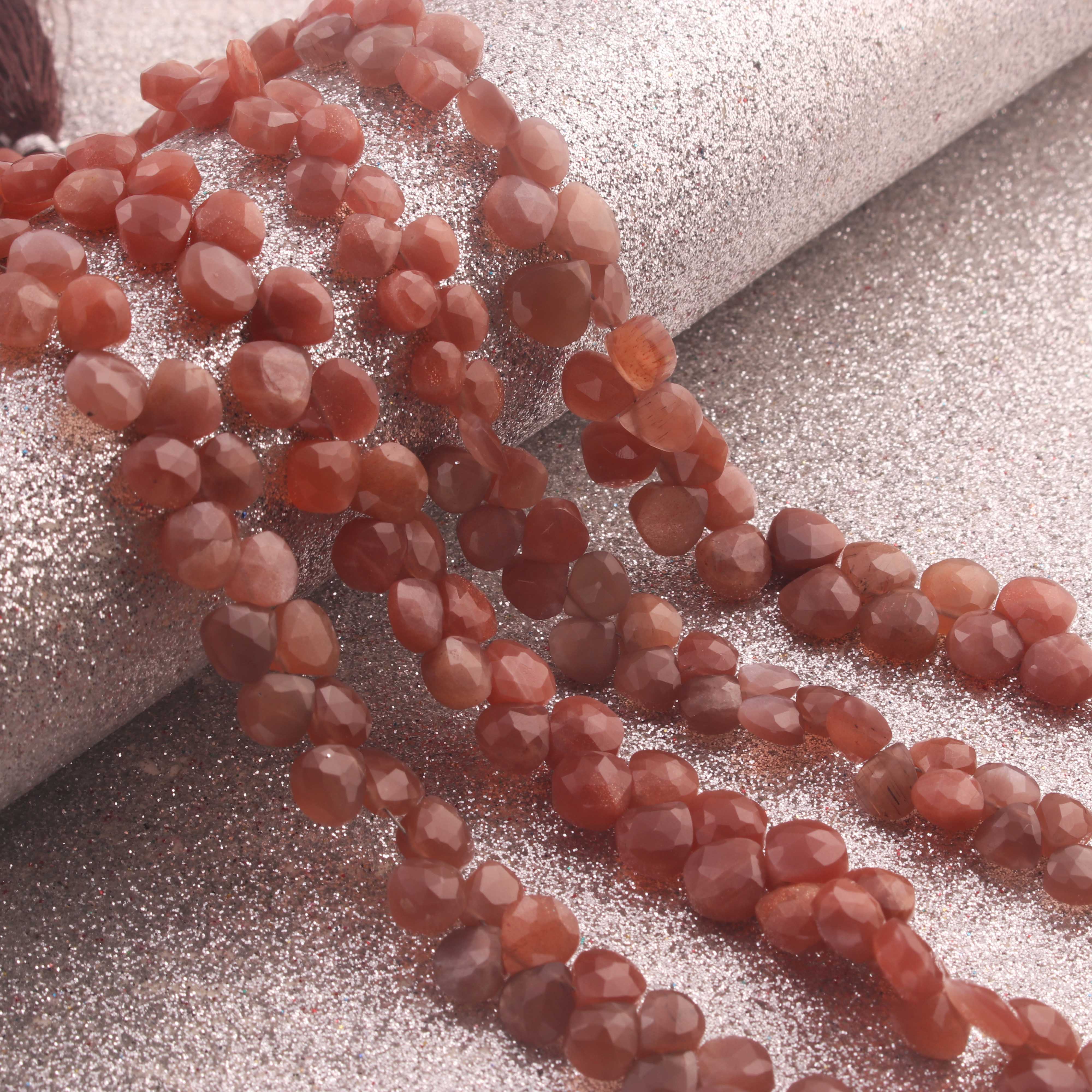 1  Strand Chocolate  Moonstone Faceted Briolettes  - Heart  Shape Briolettes - 9mmx8mm-7mmx6mm 8 Inches BR02931