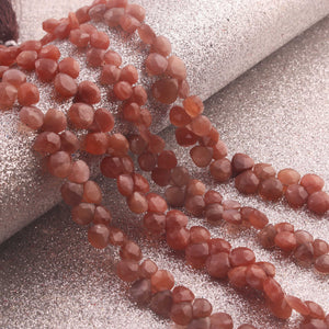 1 Strand Chocolate Moonstone Faceted Briolettes - Heart Shape Briolettes - 9mmx8mm-7mmx6mm 8 Inches BR02931