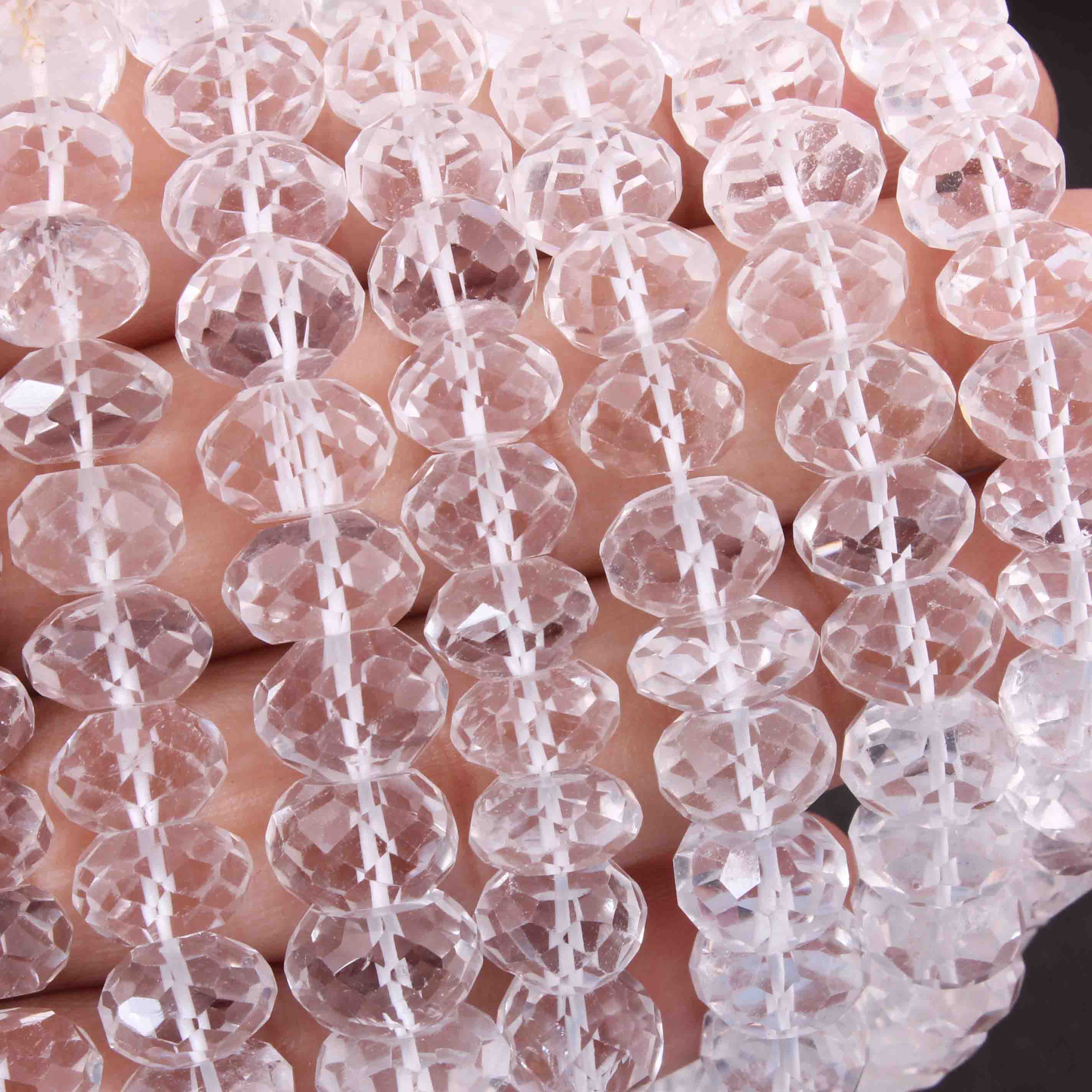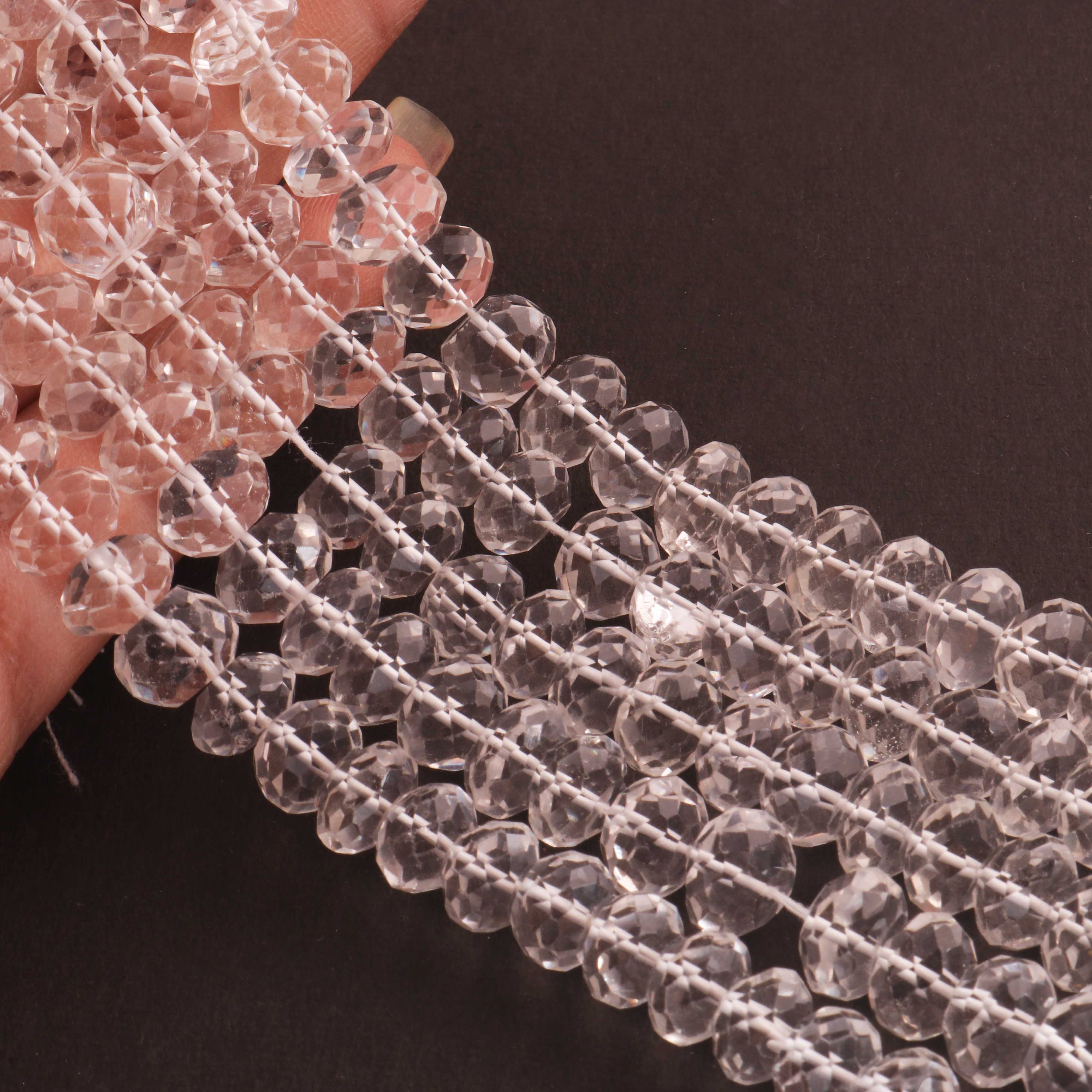 1 Strand Crystal Quartz Faceted Rondelles Beads 9-10mm 14 Inches BR886