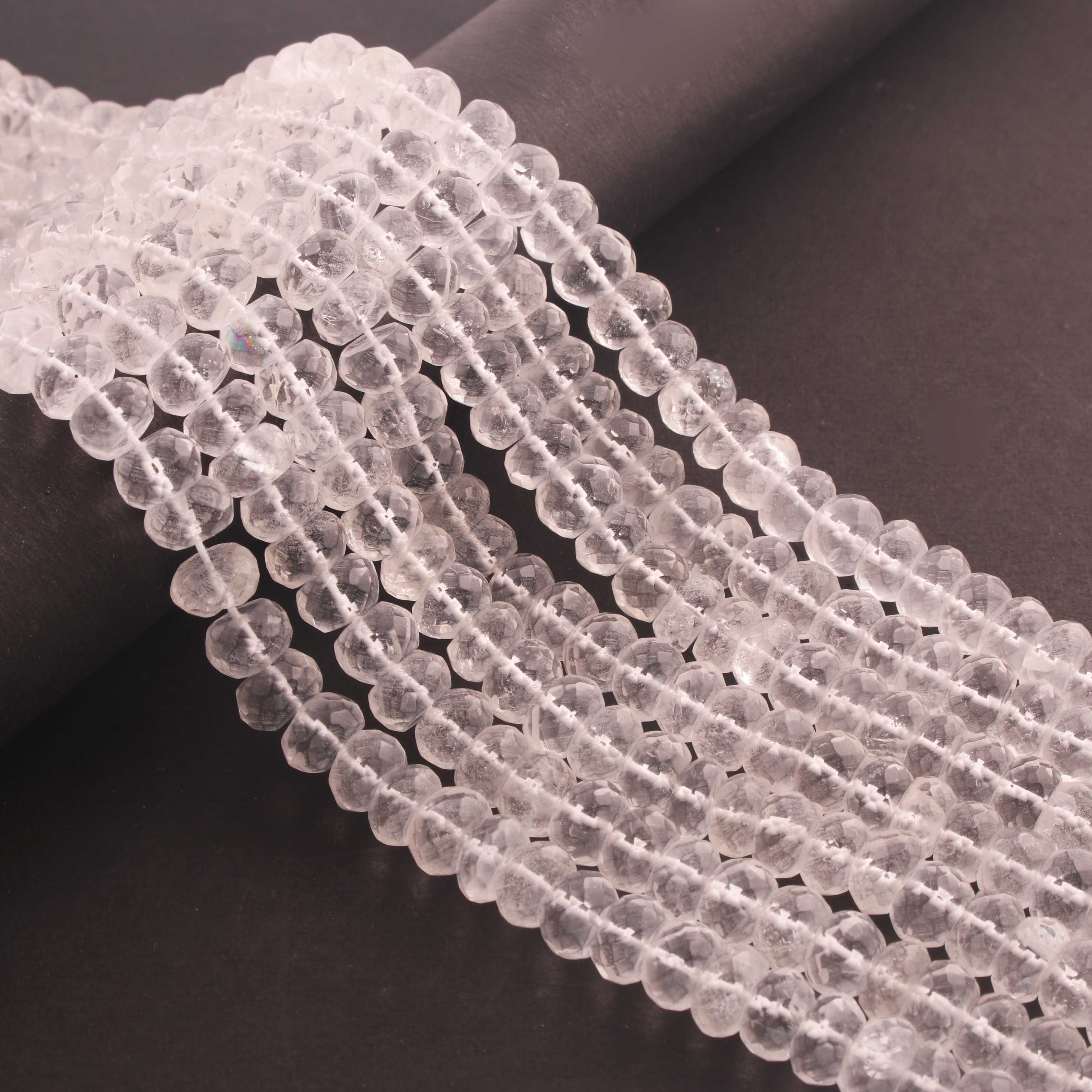 1 Strand Crystal Quartz Faceted Rondelles Round Beads 8mm-9mm 10 inches BR120.