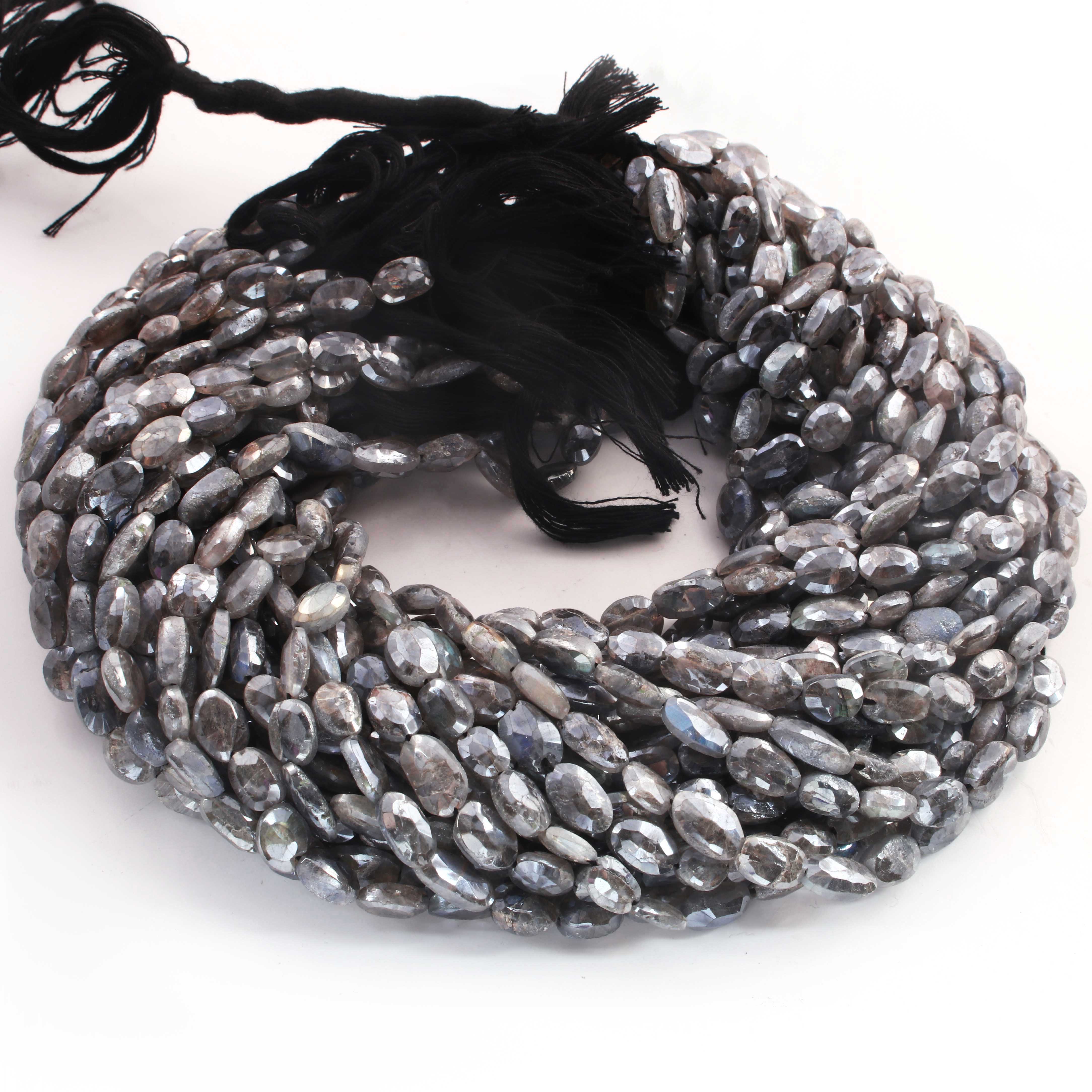 1 Strand Excellent Quality Labradorite Silver Coated Briolettes- Oval Shape Briolettes - 7mmx5mm-14mmx6mm - 12.5 Inches- BR946