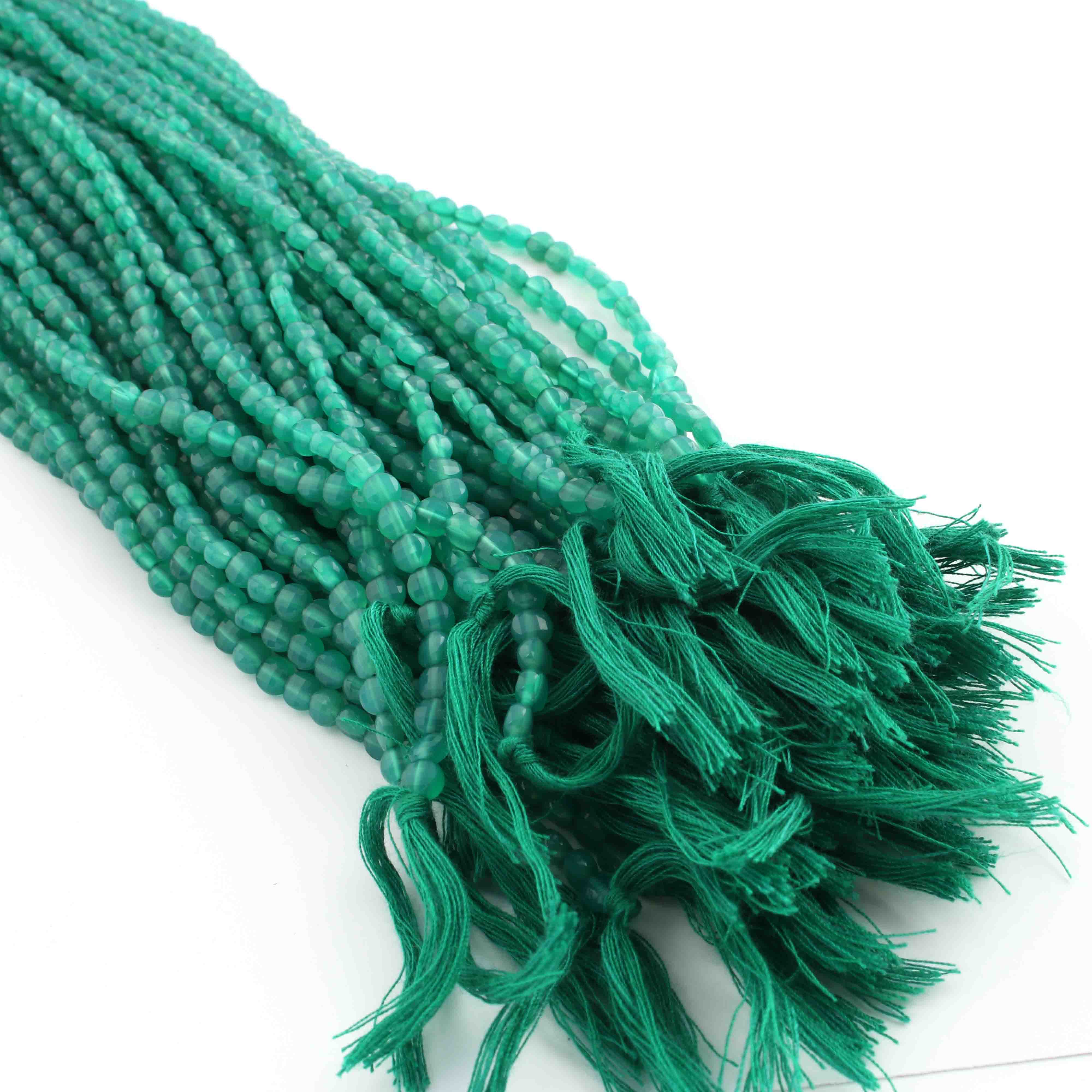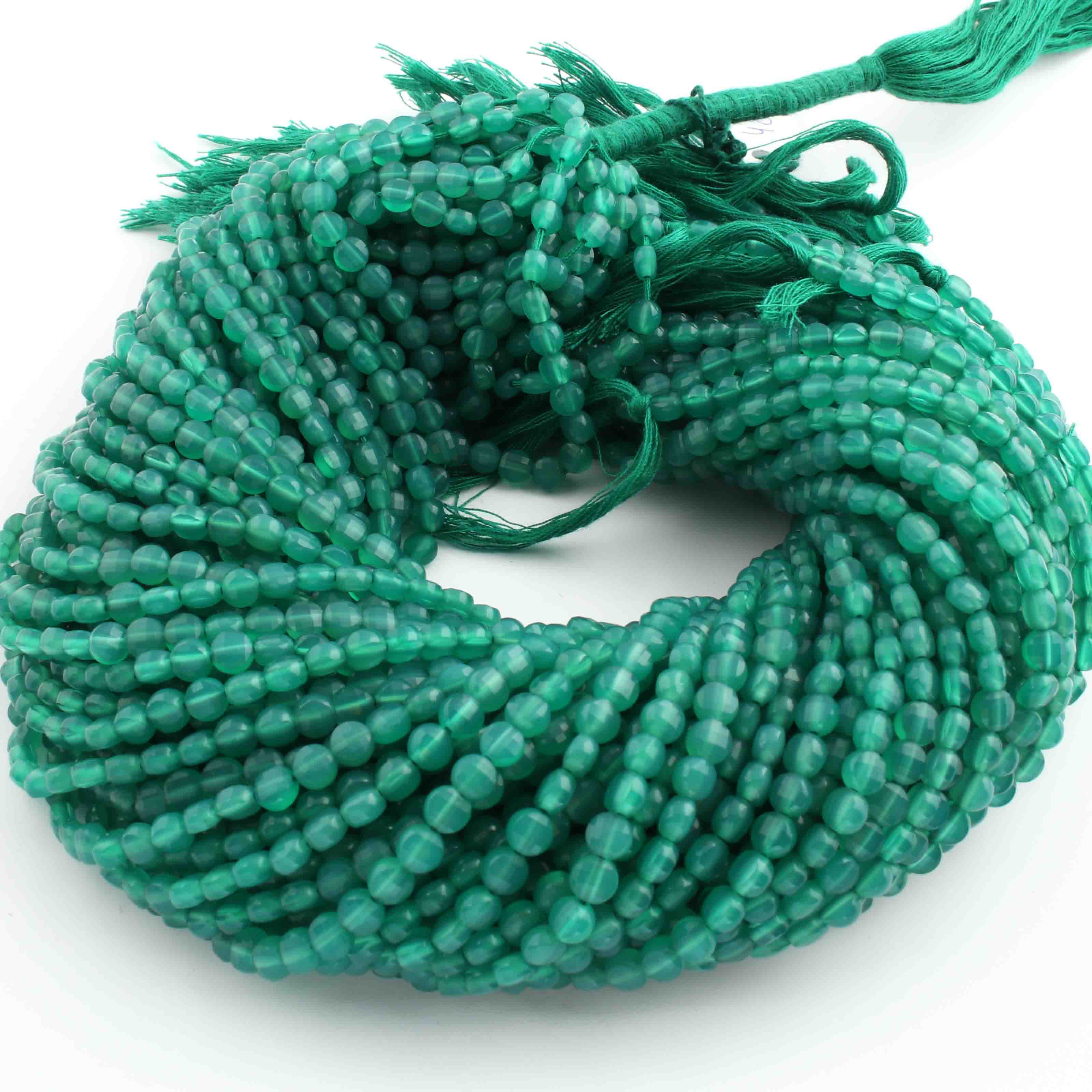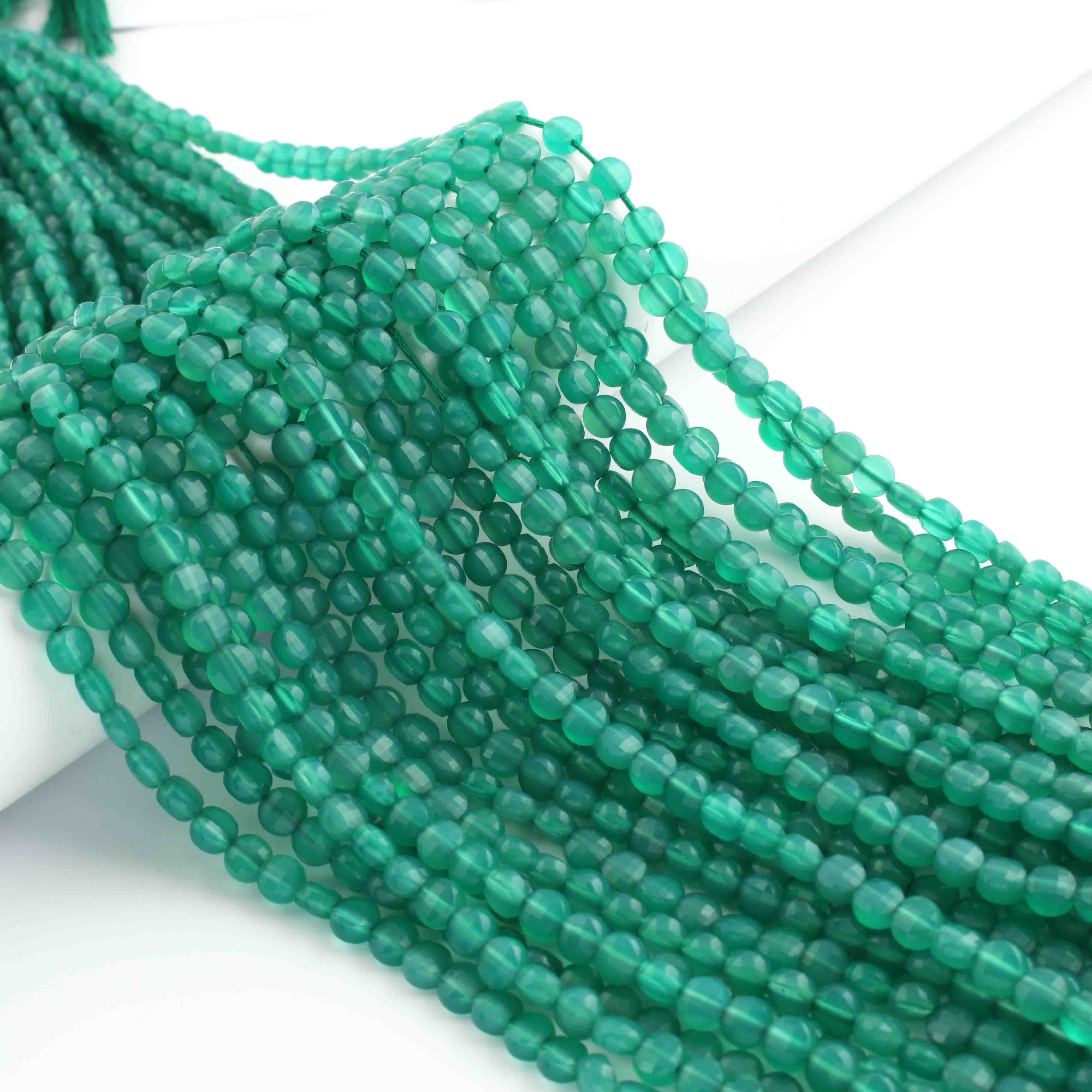 1 Strand Finest Quality Green Onyx Faceted Small Coin Beads Briolettes - Coin Beads 4mm 12.5 Inch BR0994