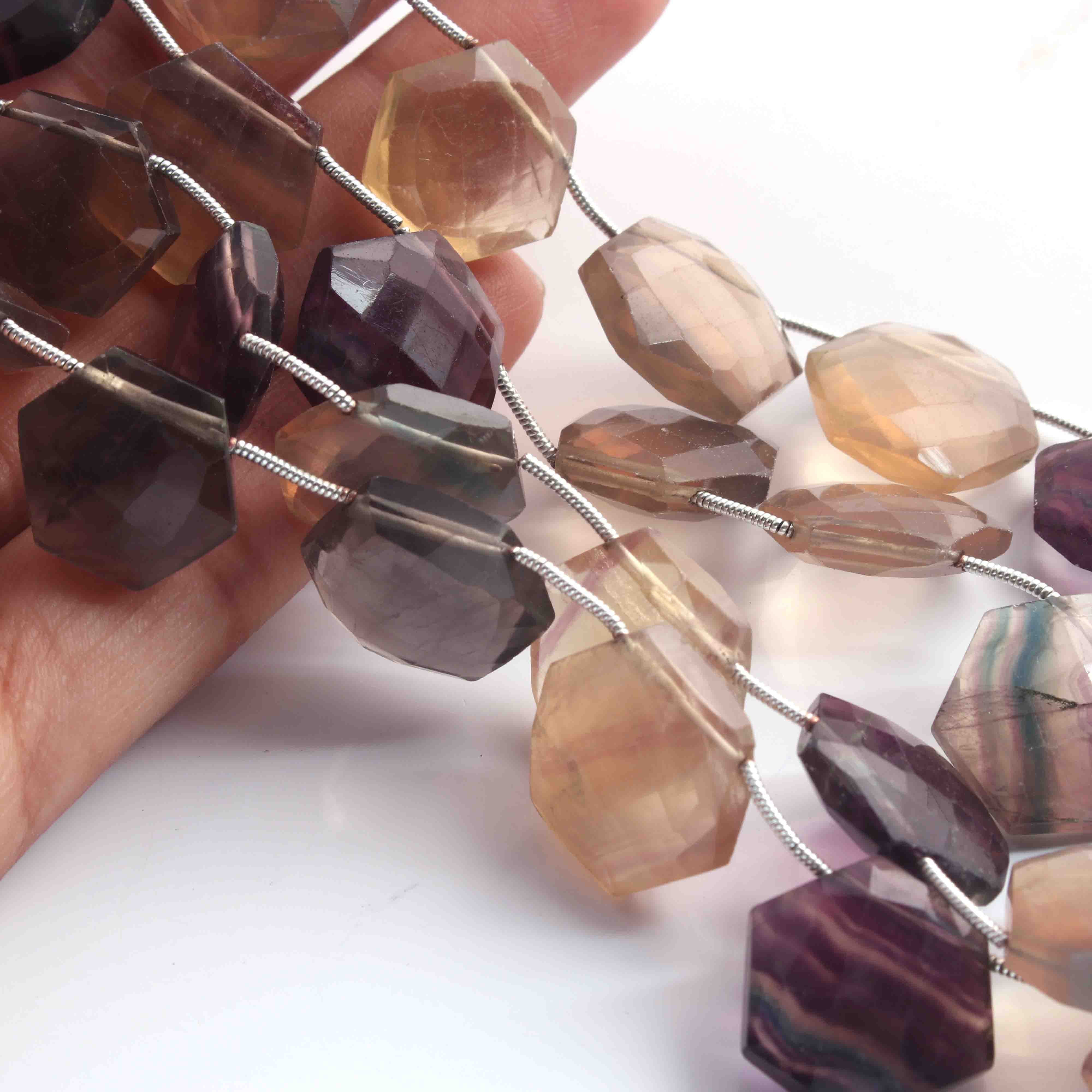 1 Strand Finest Quality Multi Flourite Faceted Hexgone Briolettes- 17mmx19mm-12mmx12mm 9 Inch BR02343