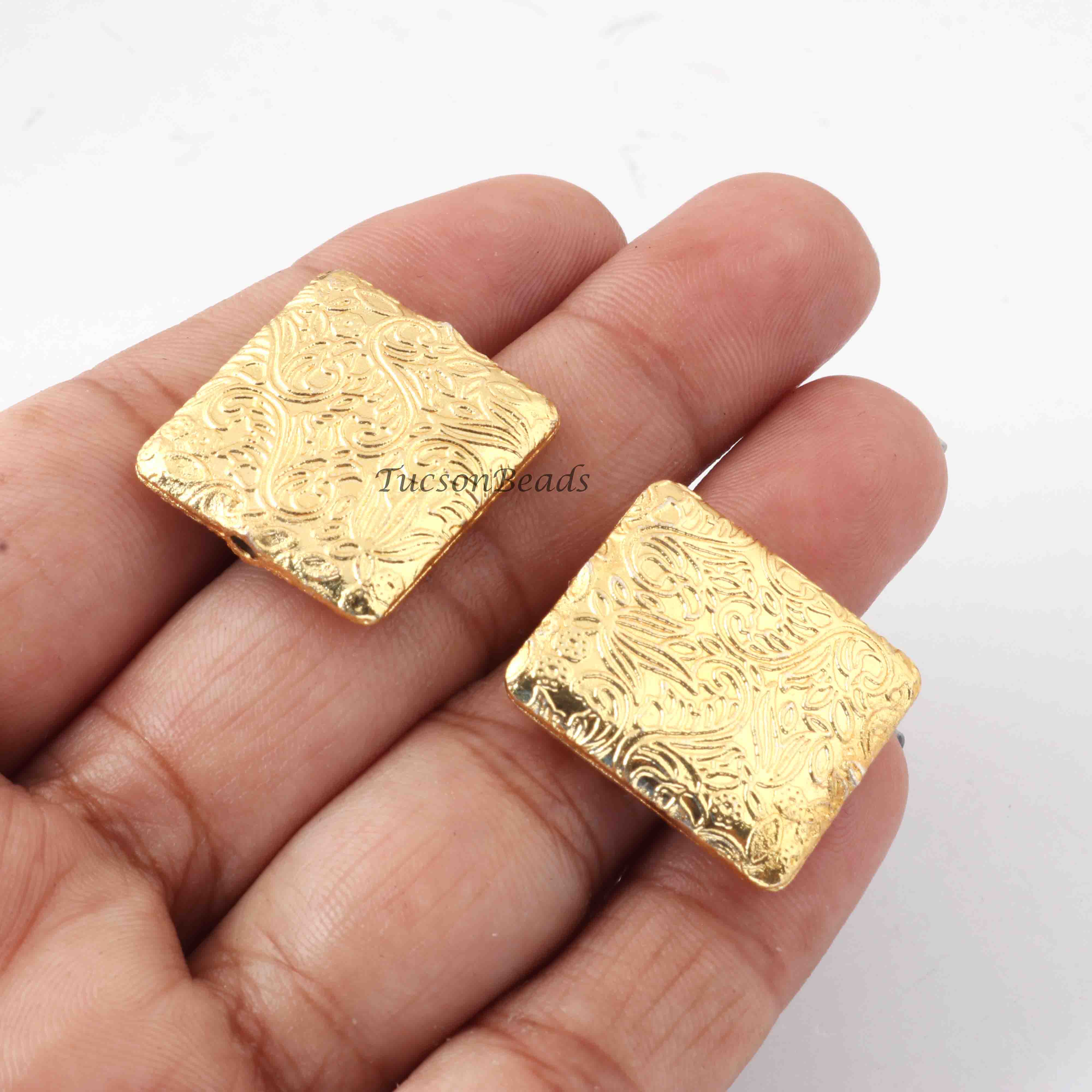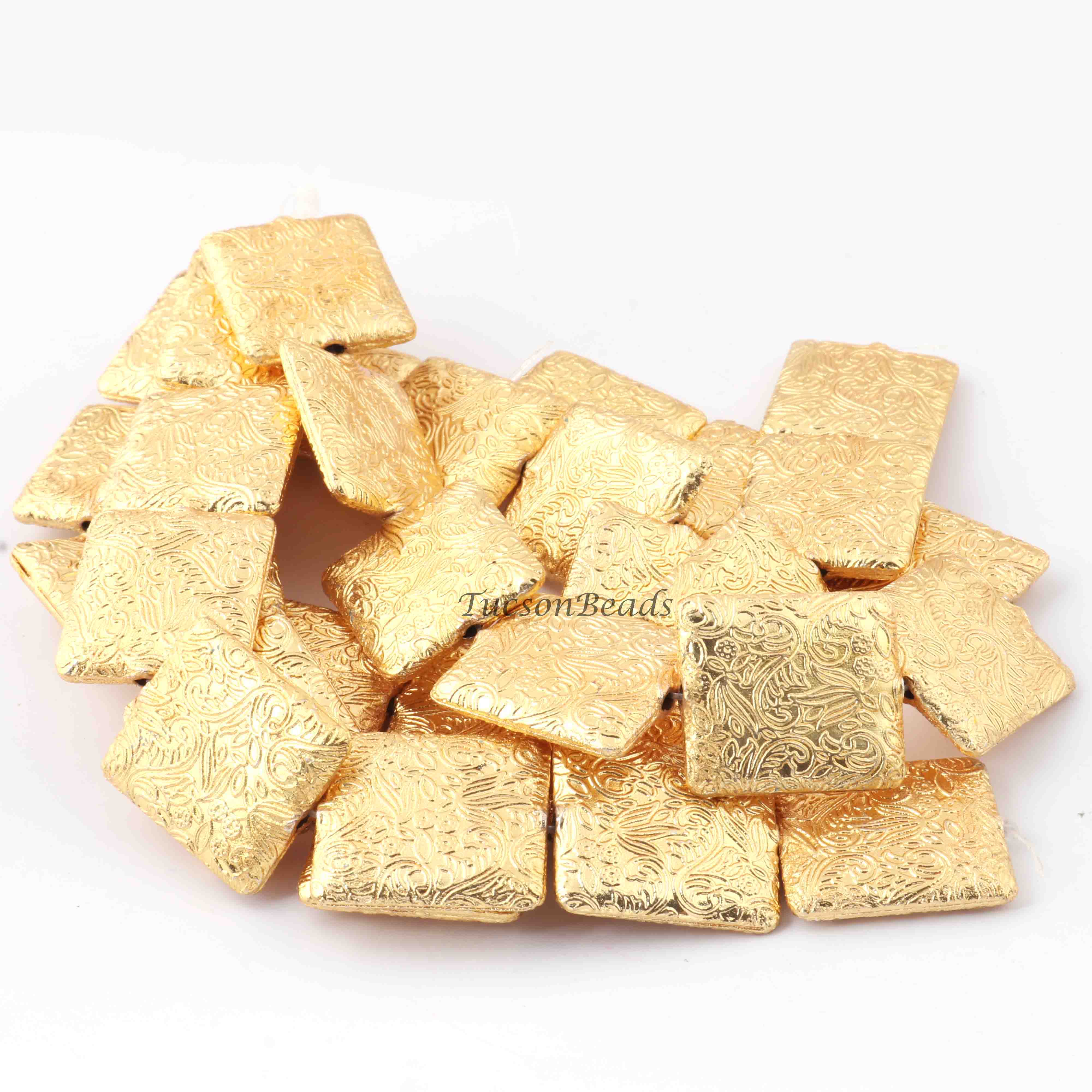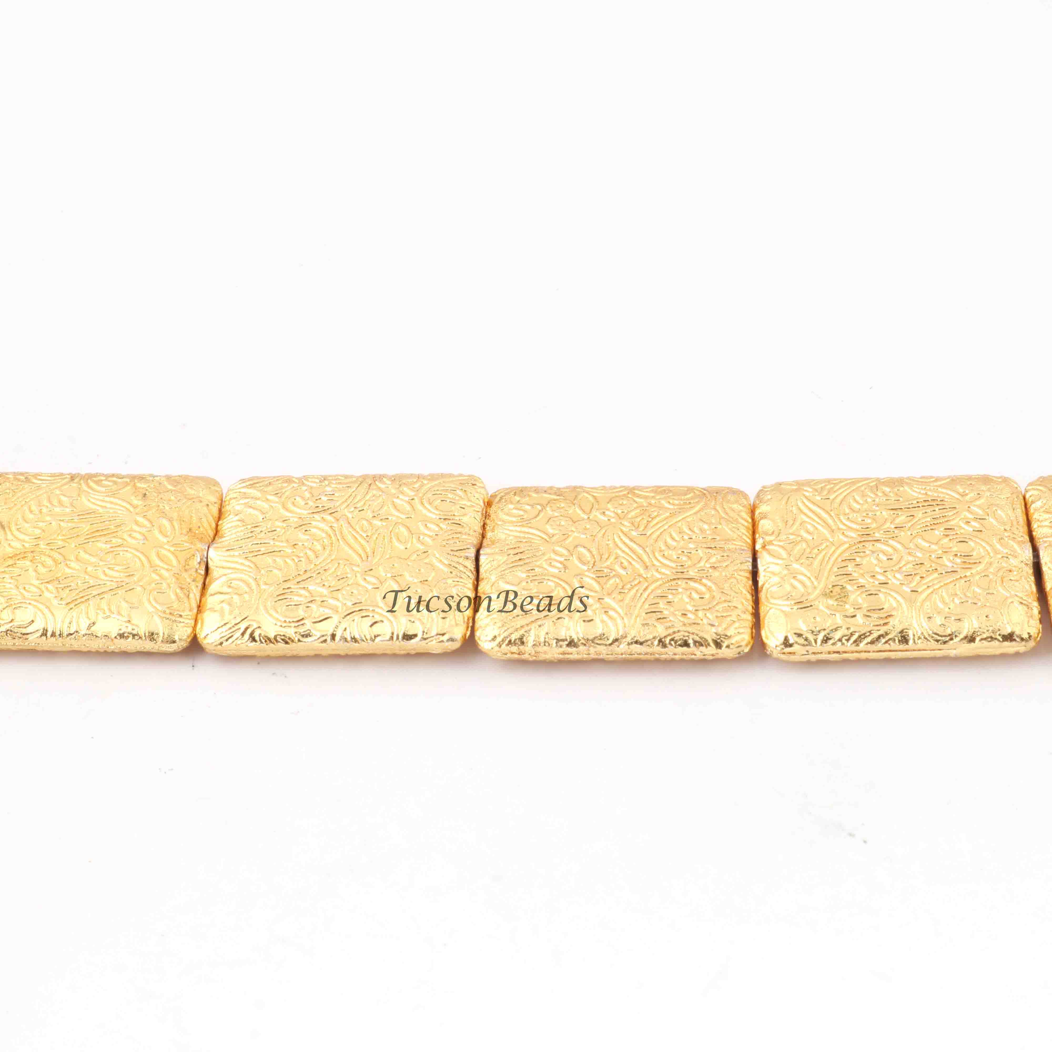 1 Strand Gold Plated Designer Copper Rectangle Scratch Bar Shape Beads,Jewelry Making 20mmx23 8 inches BulkLot GPC248