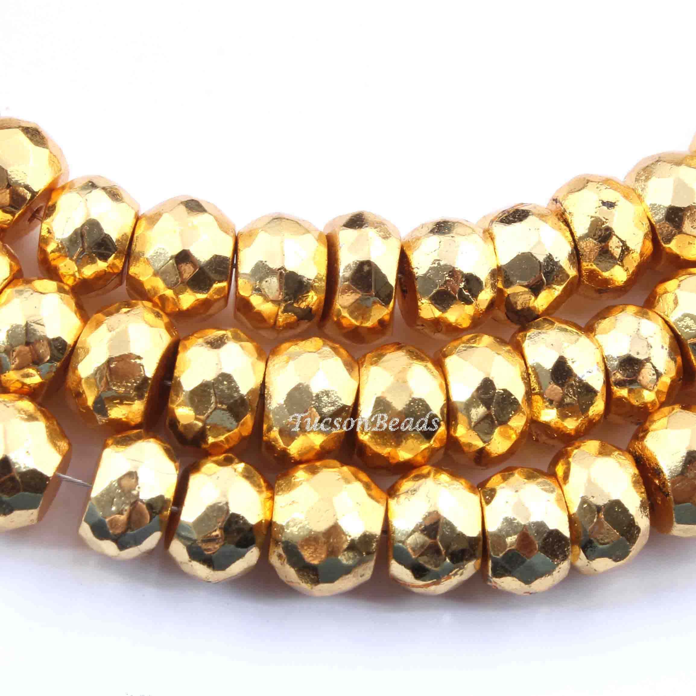 1 Strand Gold Pyrite Faceted Rondelles-Pyrite Faceted Beads 7mmx5mm 8 Inches BR2379