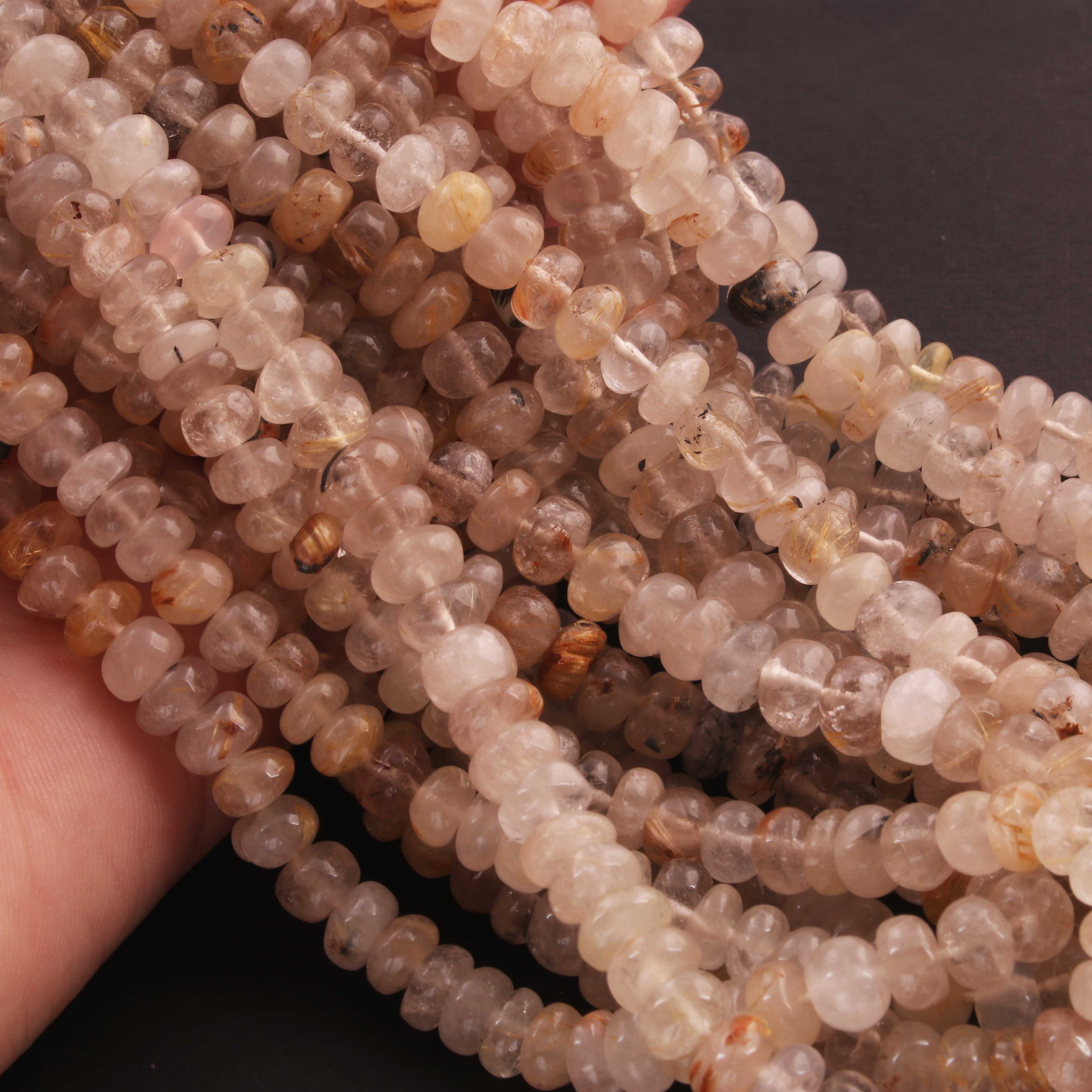1 Strand Golden Rutile Smooth Rondelles - Smooth Rondelles Beads 7mm-8mm- 16 Inches BR02594