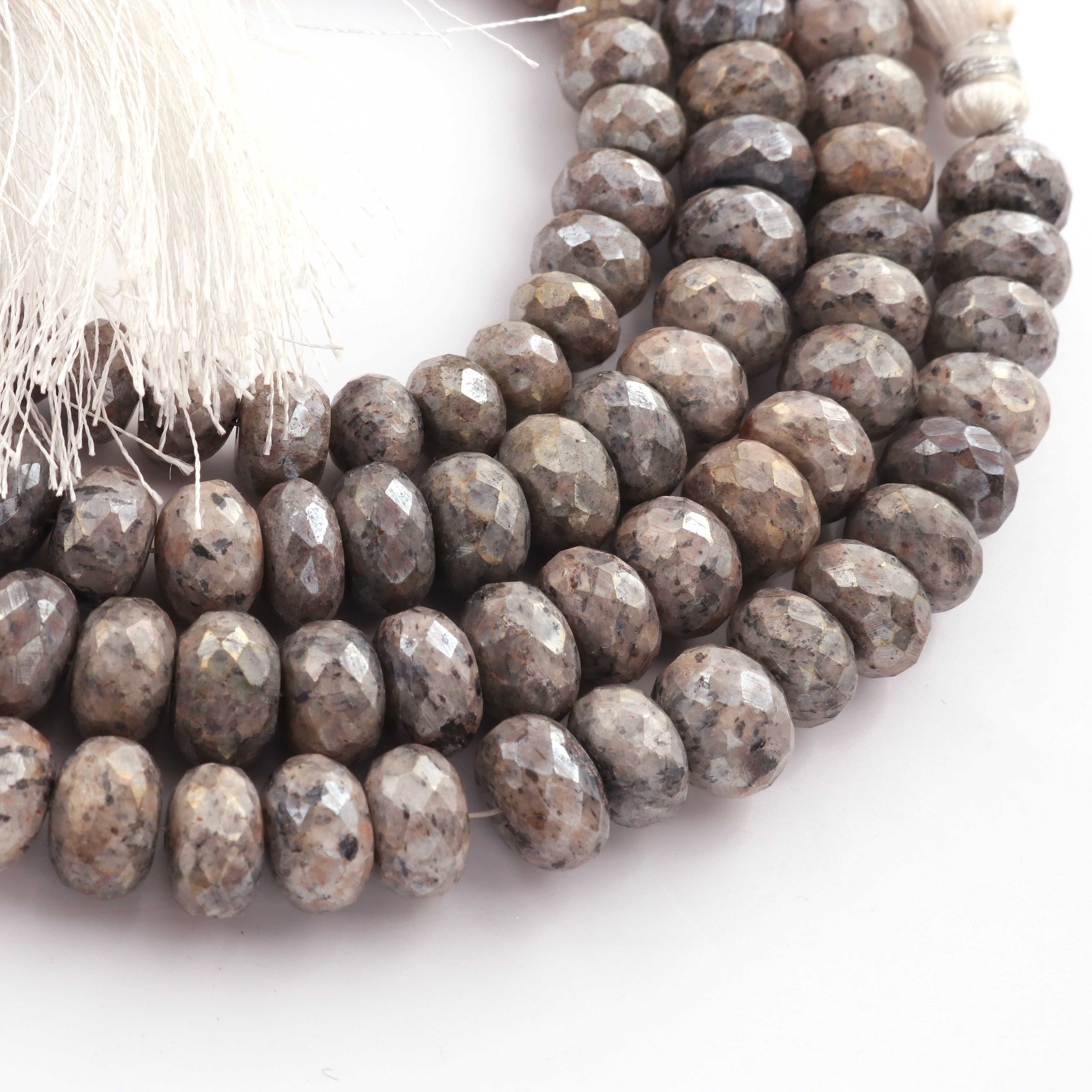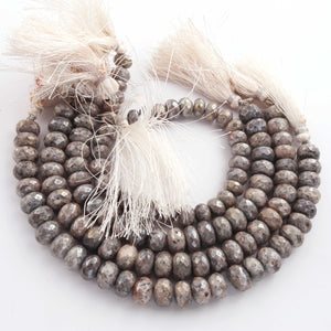 1 Strand Gray Moonstone Silver Coated Faceted Rondelles - 8mm-11mm 7.5 Inches BR1708