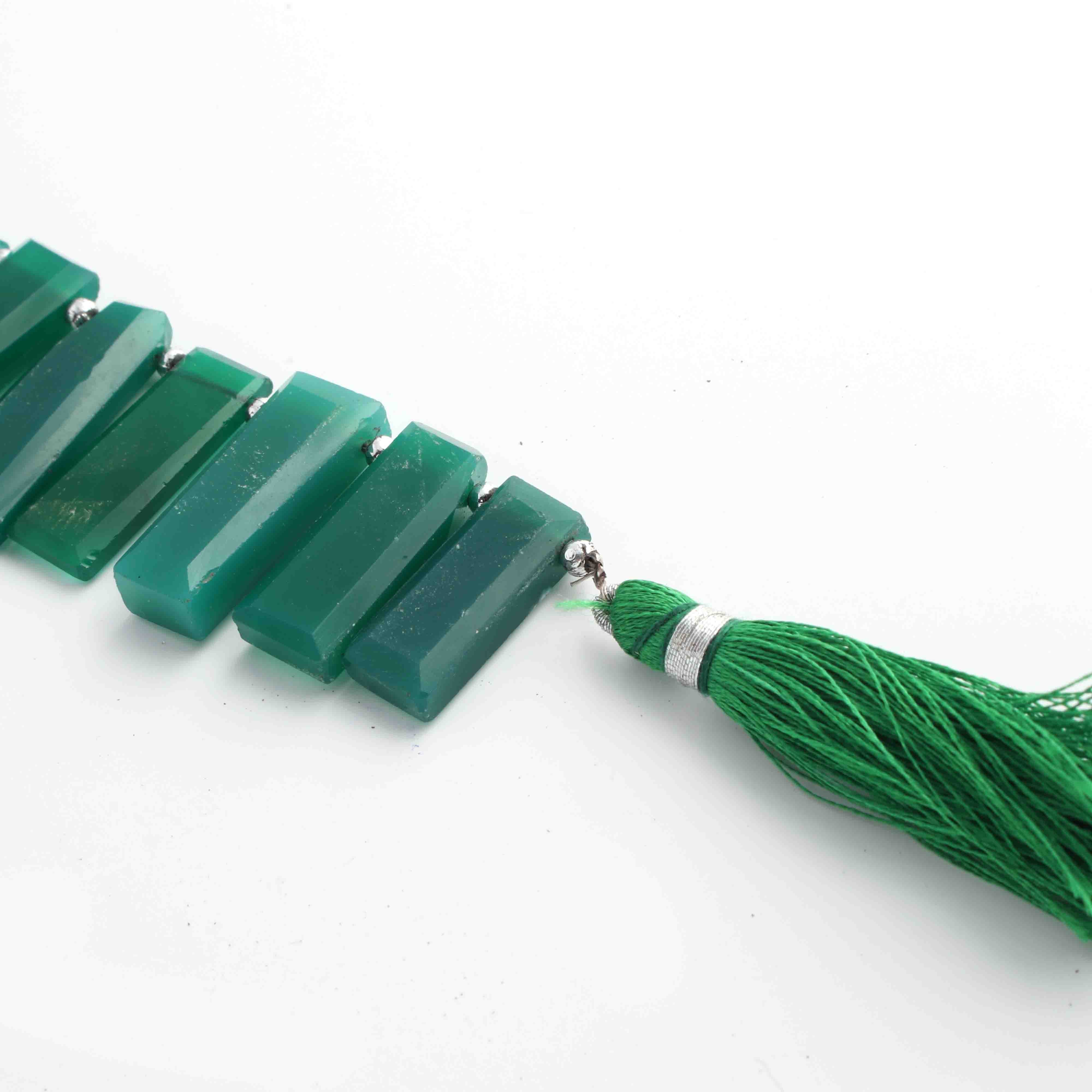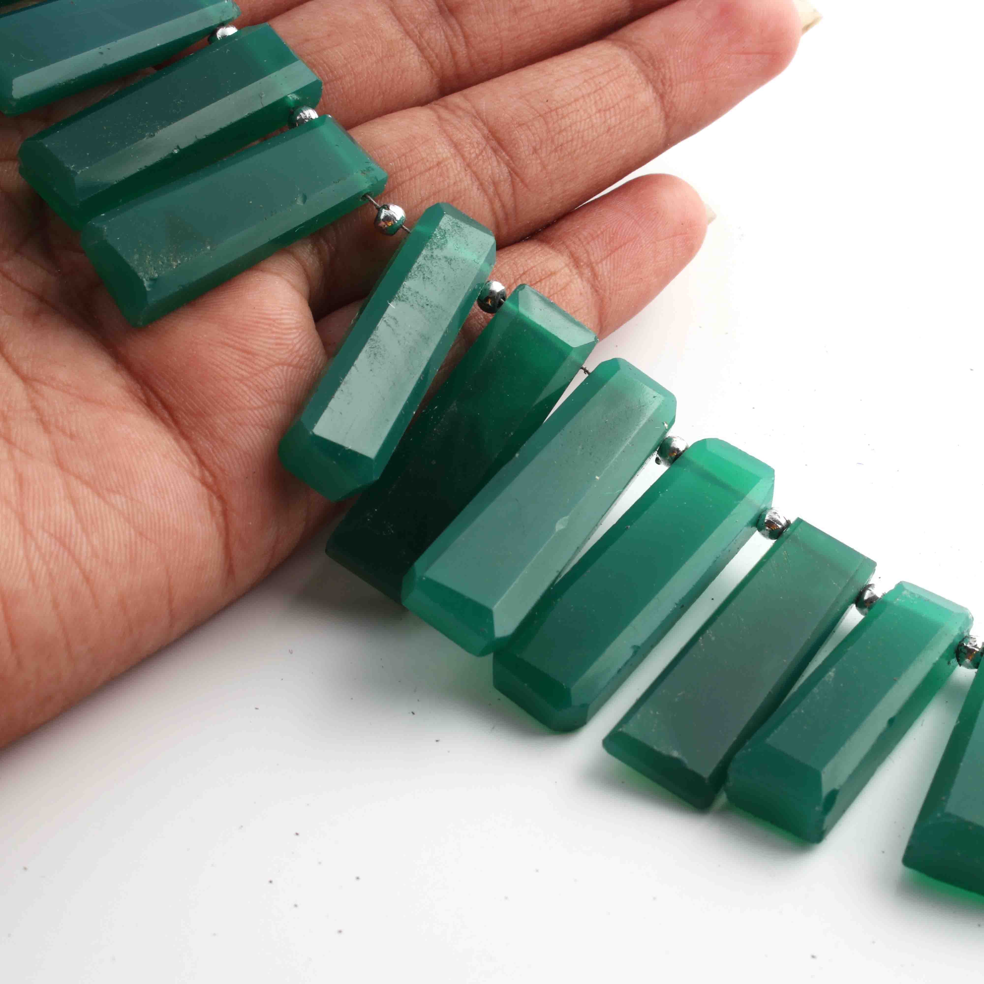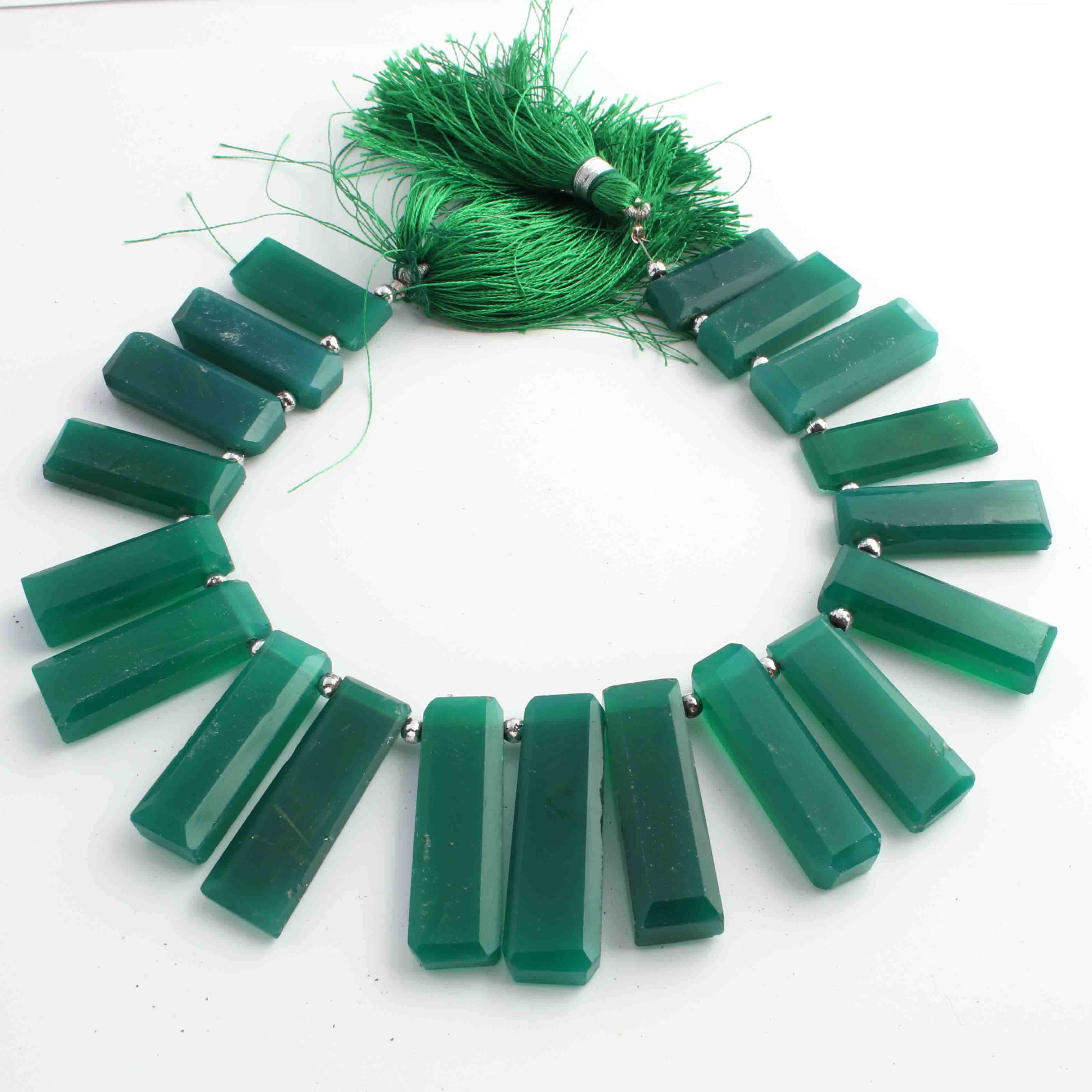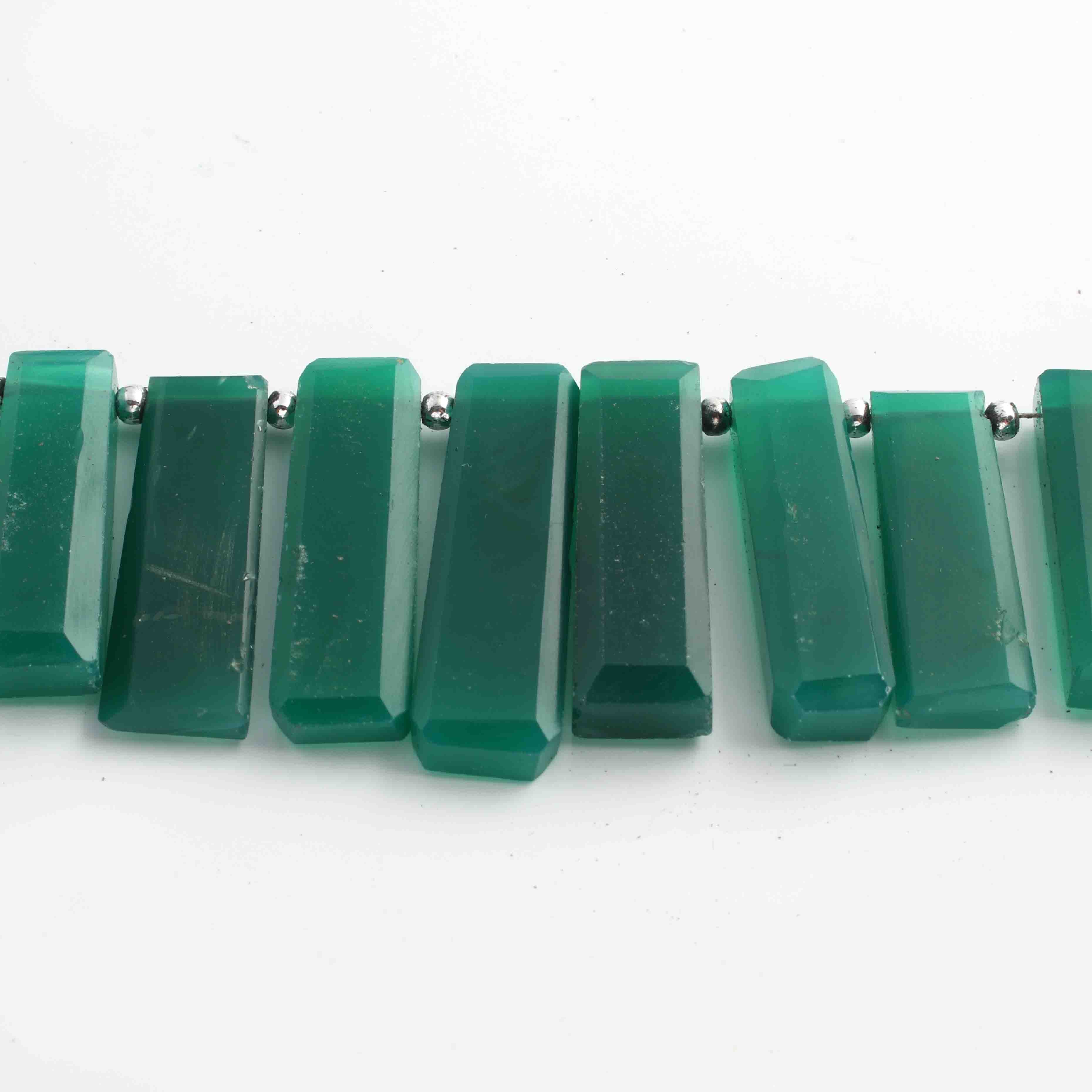 1 Strand Green Chalcedony Faceted Rectangle Shape Briolettes - Jewelry Making Supplies - 23mmx8mm-37mmx12mm 9 .5 Inch BR3226
