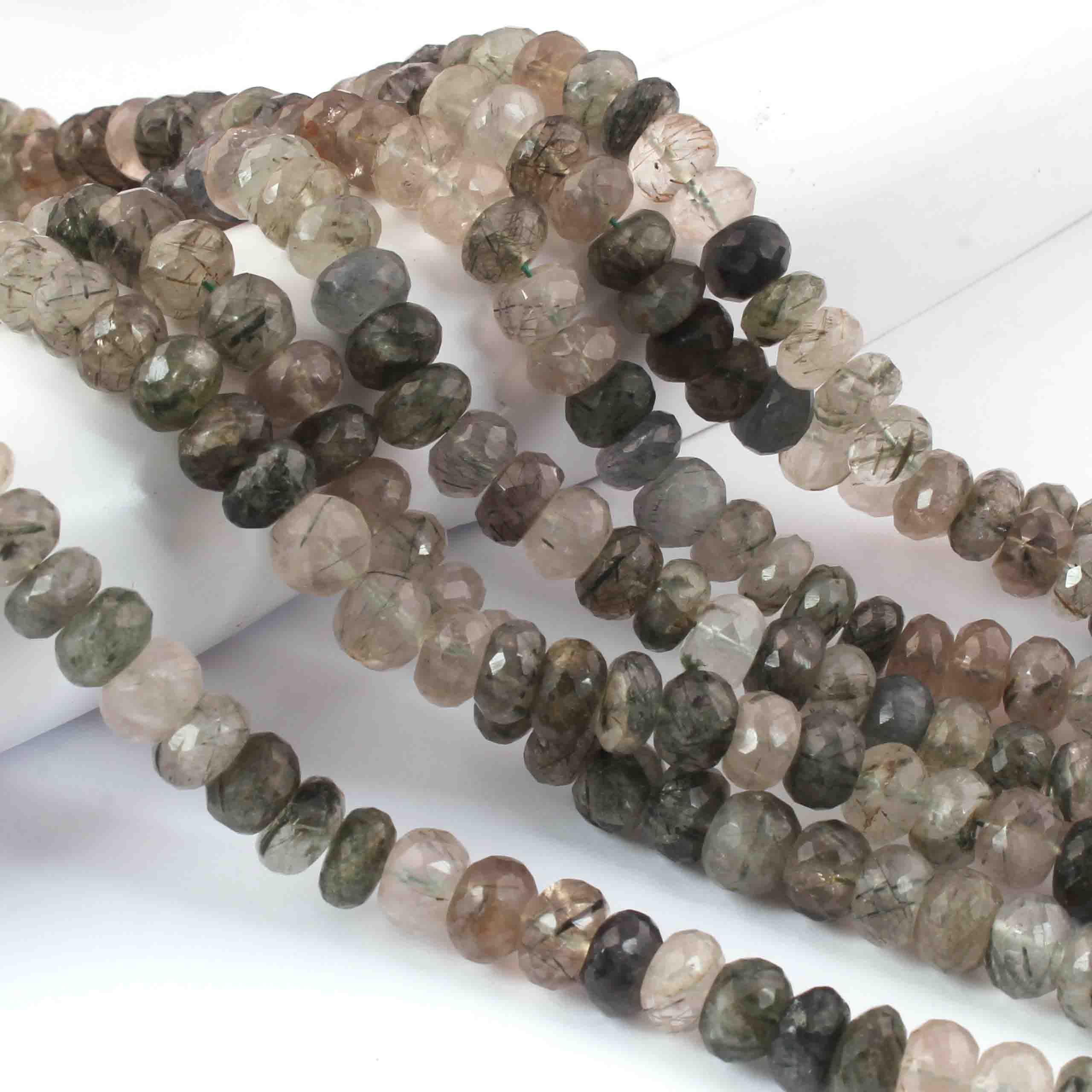 1 Strand Green Rutile Faceted  Rondelles-  -8mm - 14 Inches BR0595