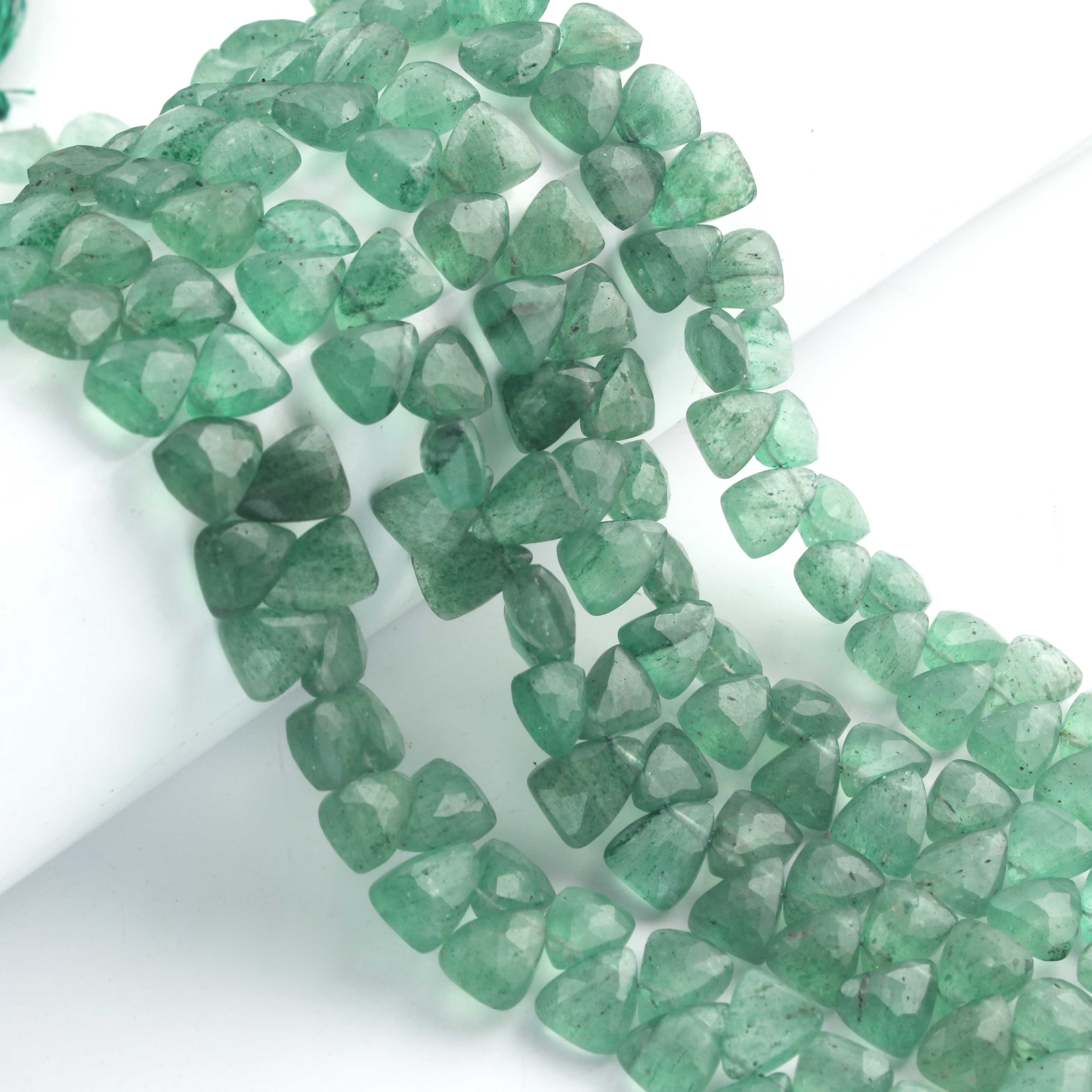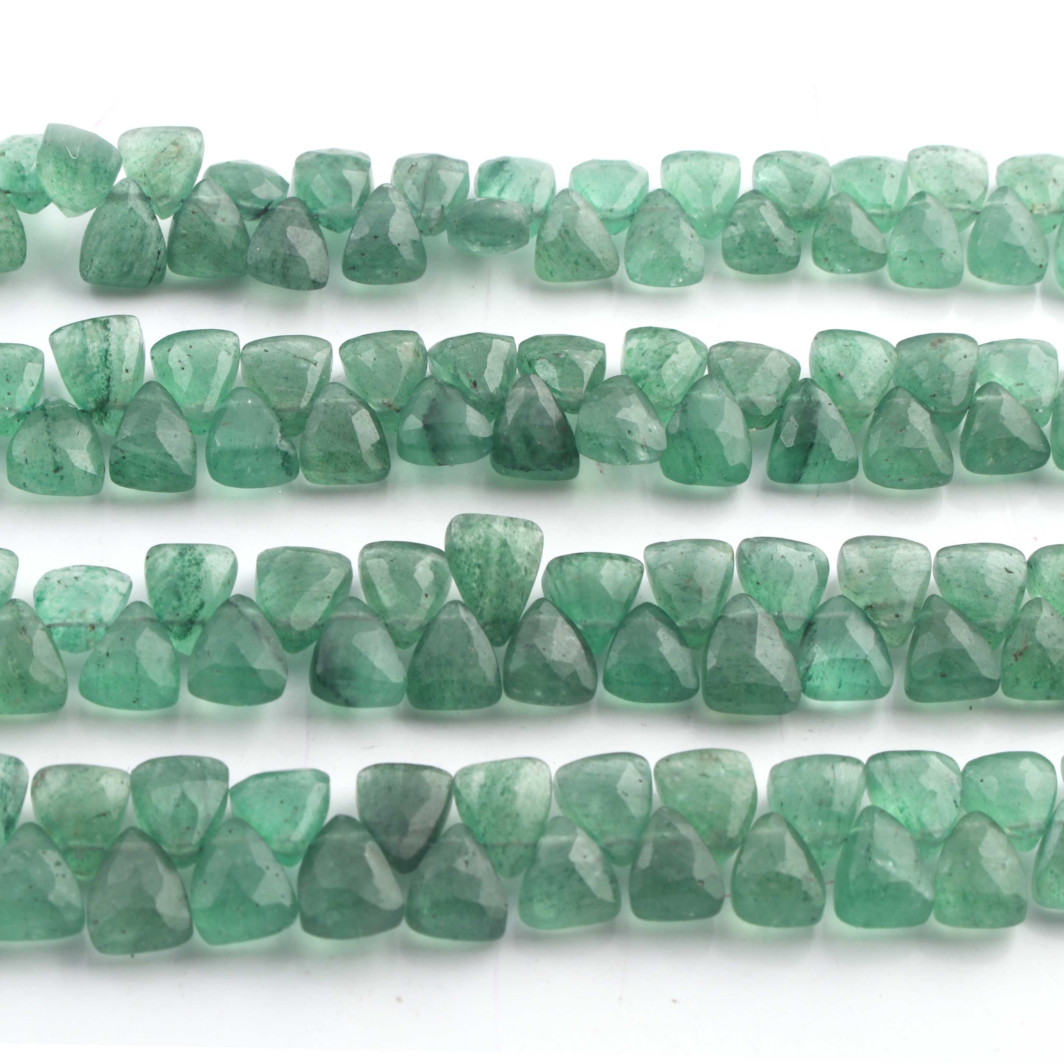 1 Strand Green Strawberry Faceted Briolettes -Trillion Shape Briolettes -6mm x 9mm - 8-Inches br02921