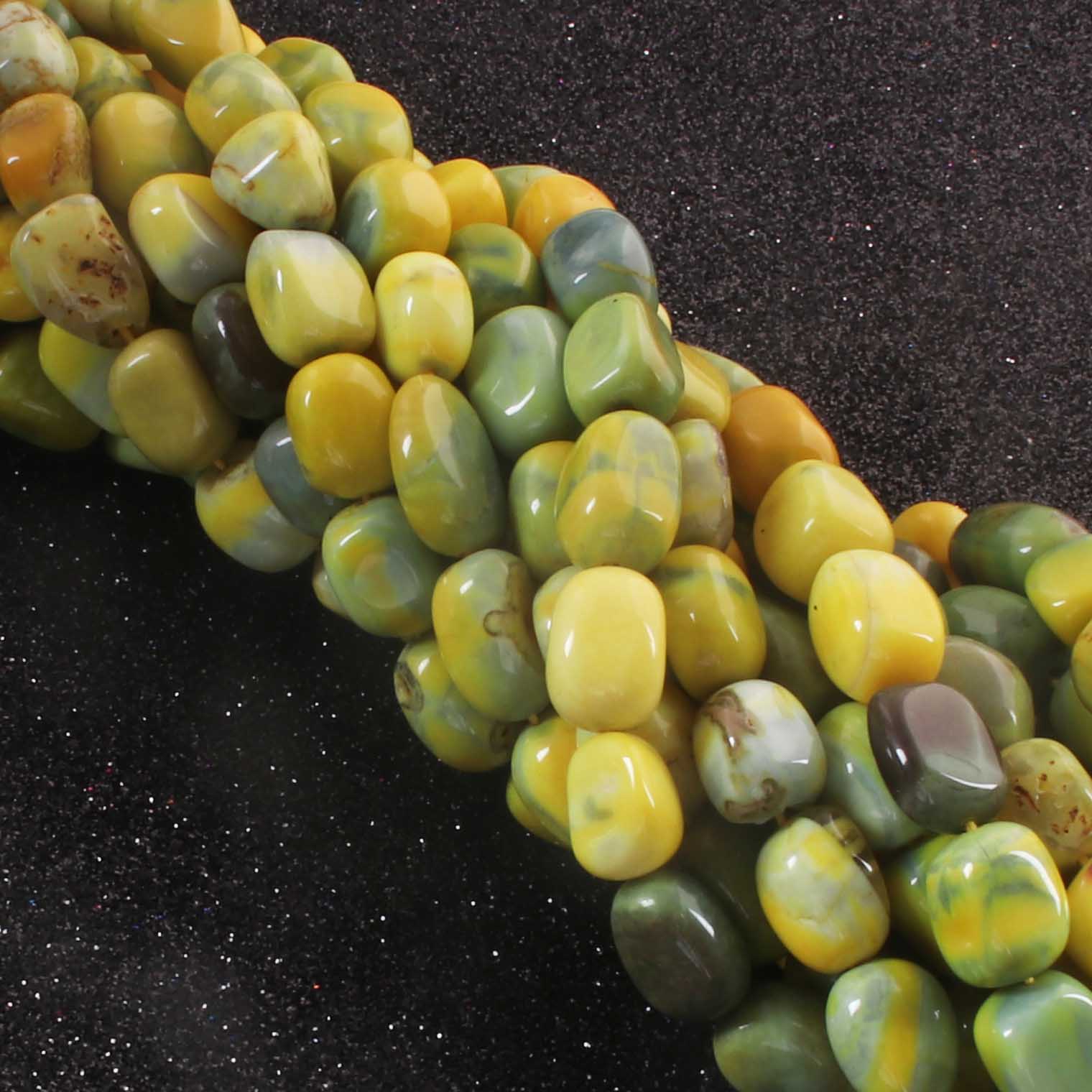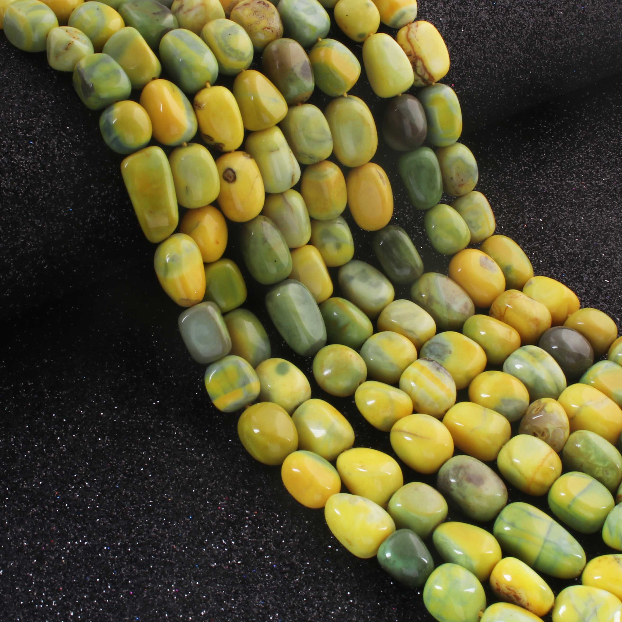 1 Strand Green&Yellow Opal Smooth Tumble Shape Beads, Plain Nuggets Gemstone Beads 11mmx8mm-13mmx9mm 13 Inches BR02827