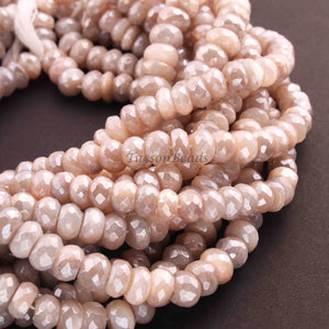 1 Strand Grey Moonstone Silver Coated Faceted Briolettes - Rondelles Beads - 9mm-12mm- 13 Inches BR01034