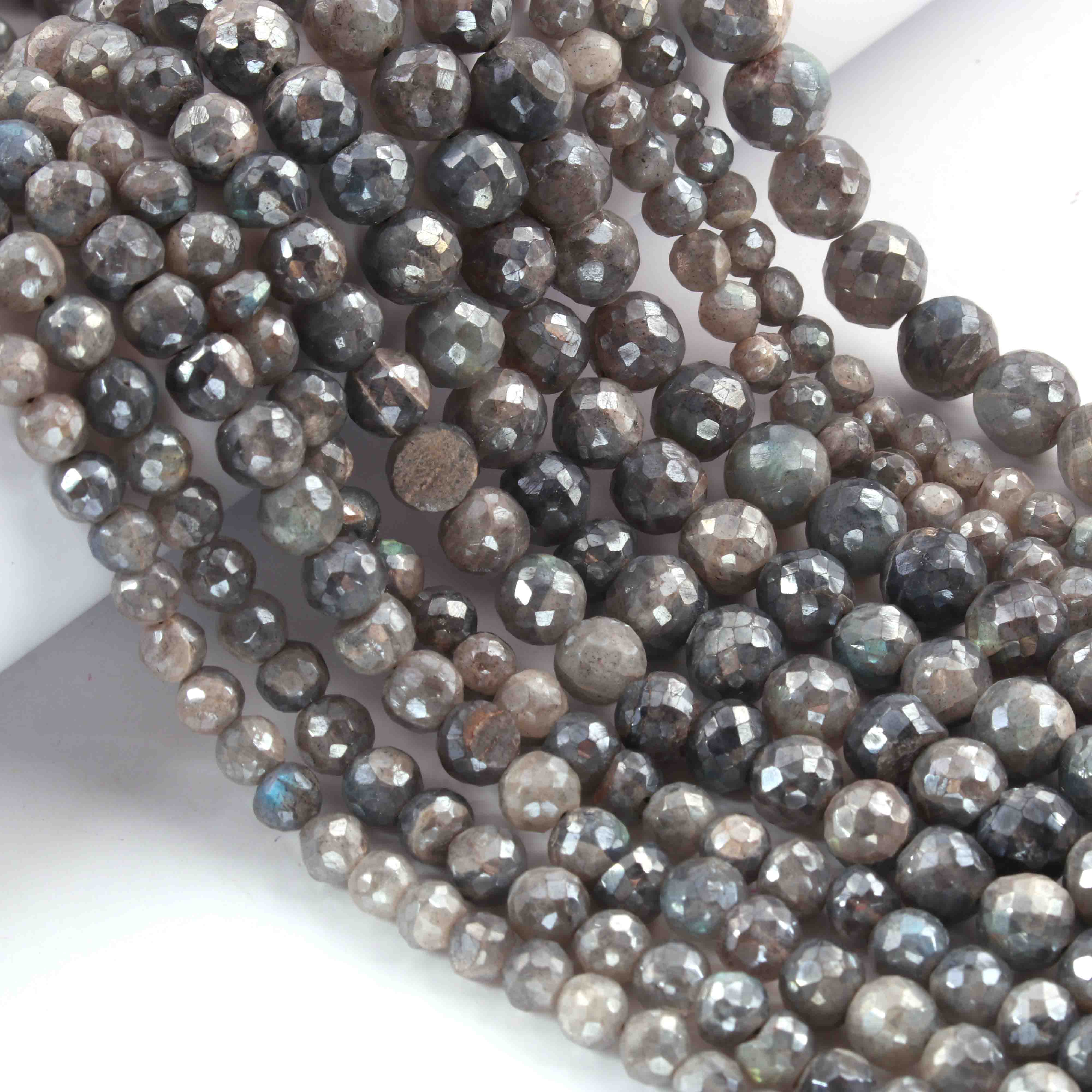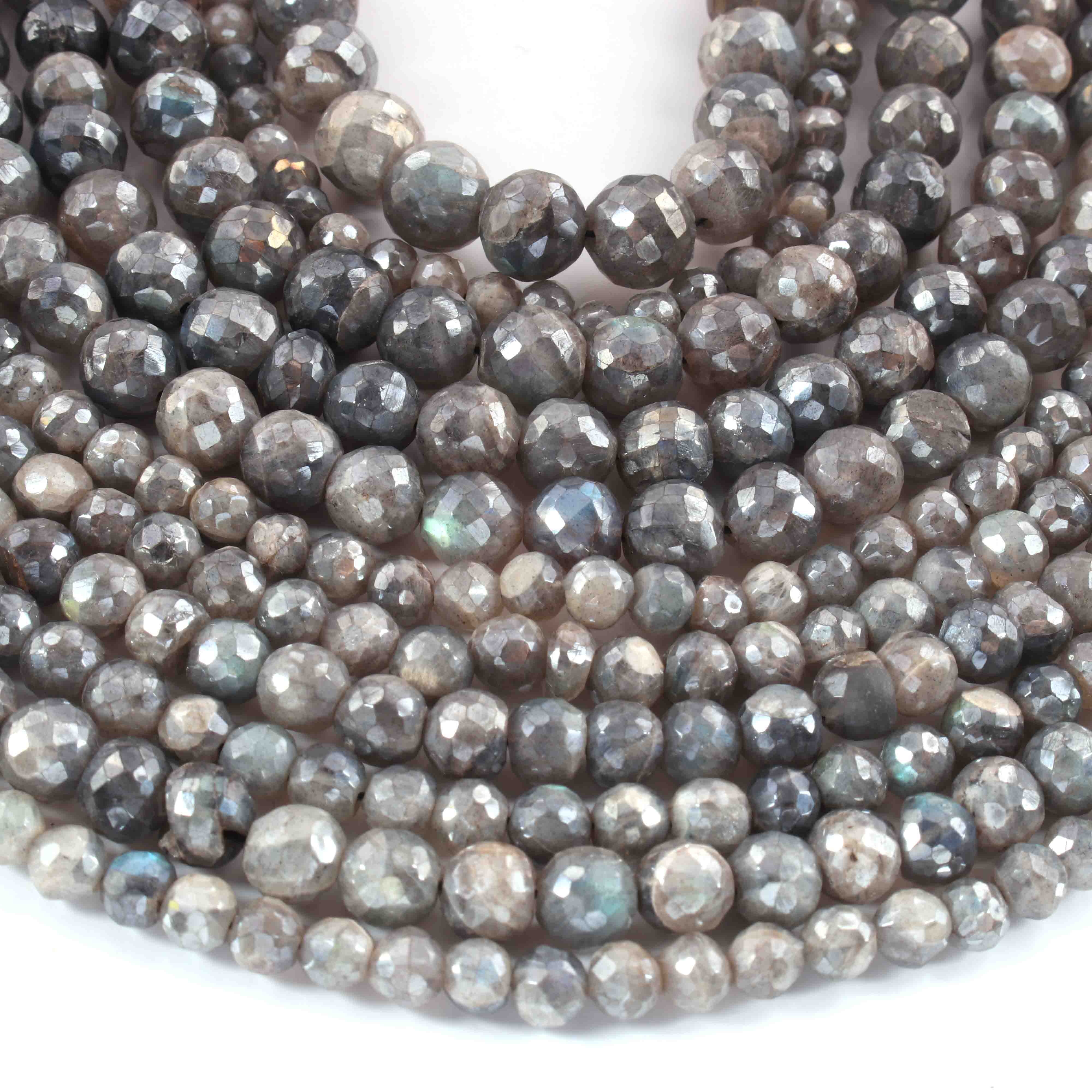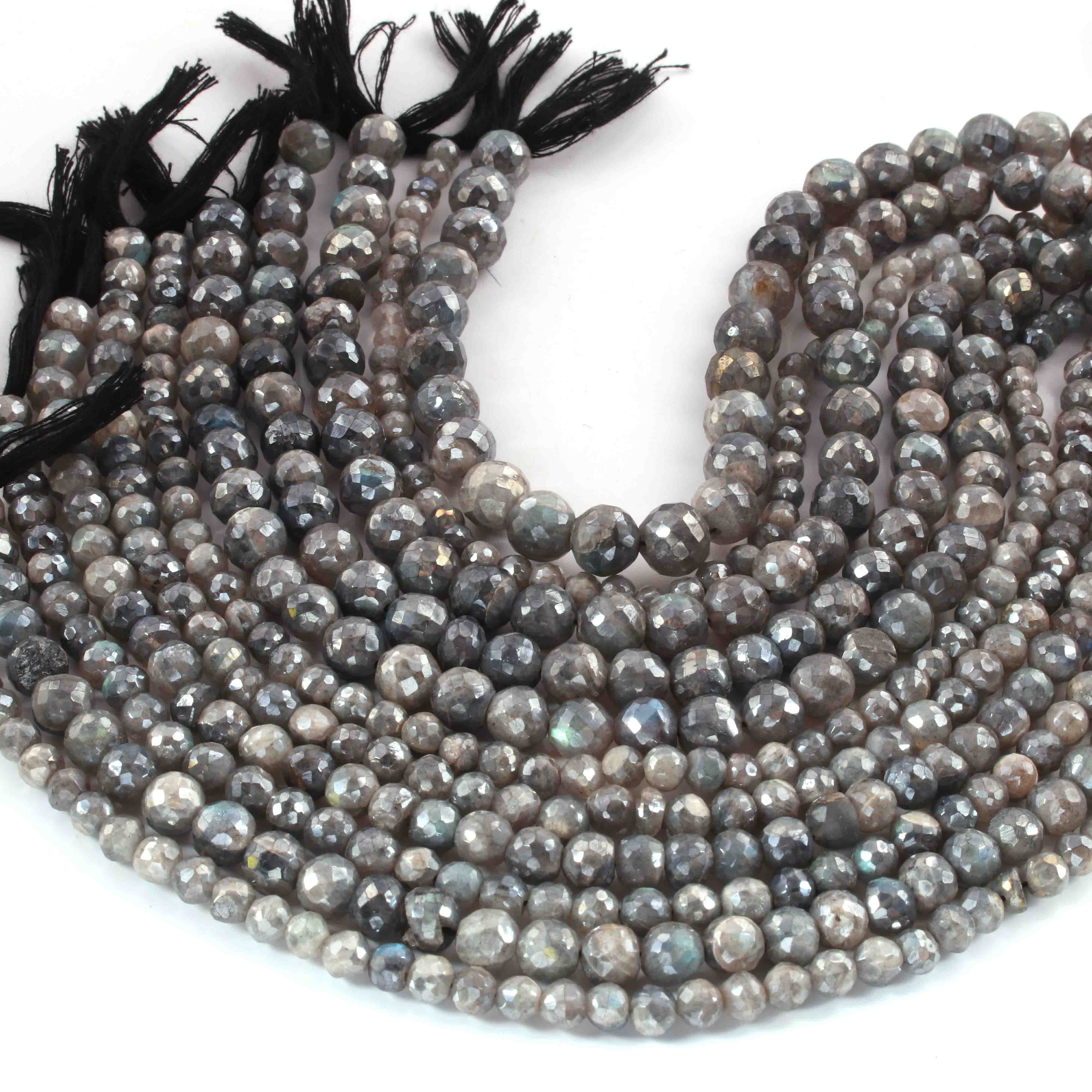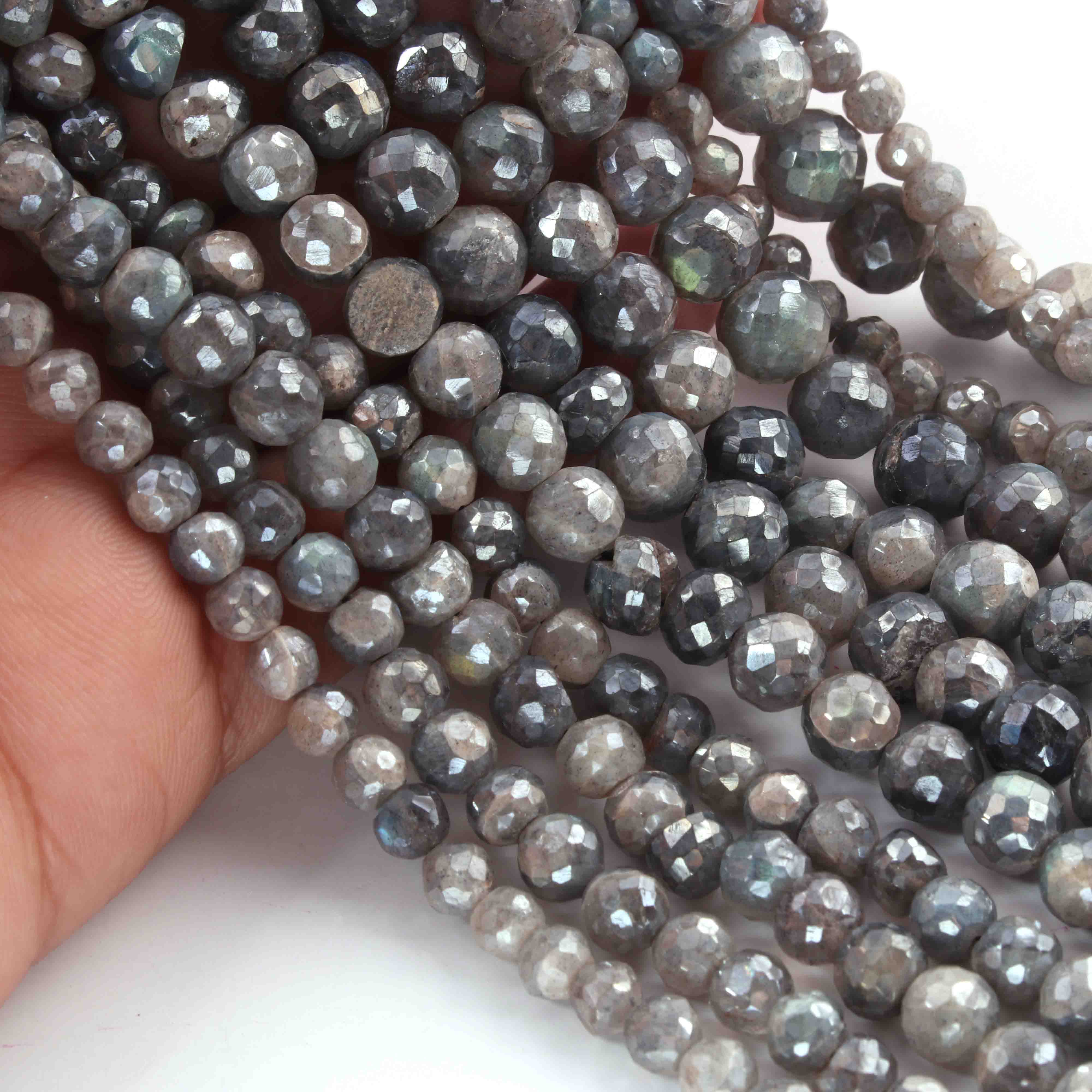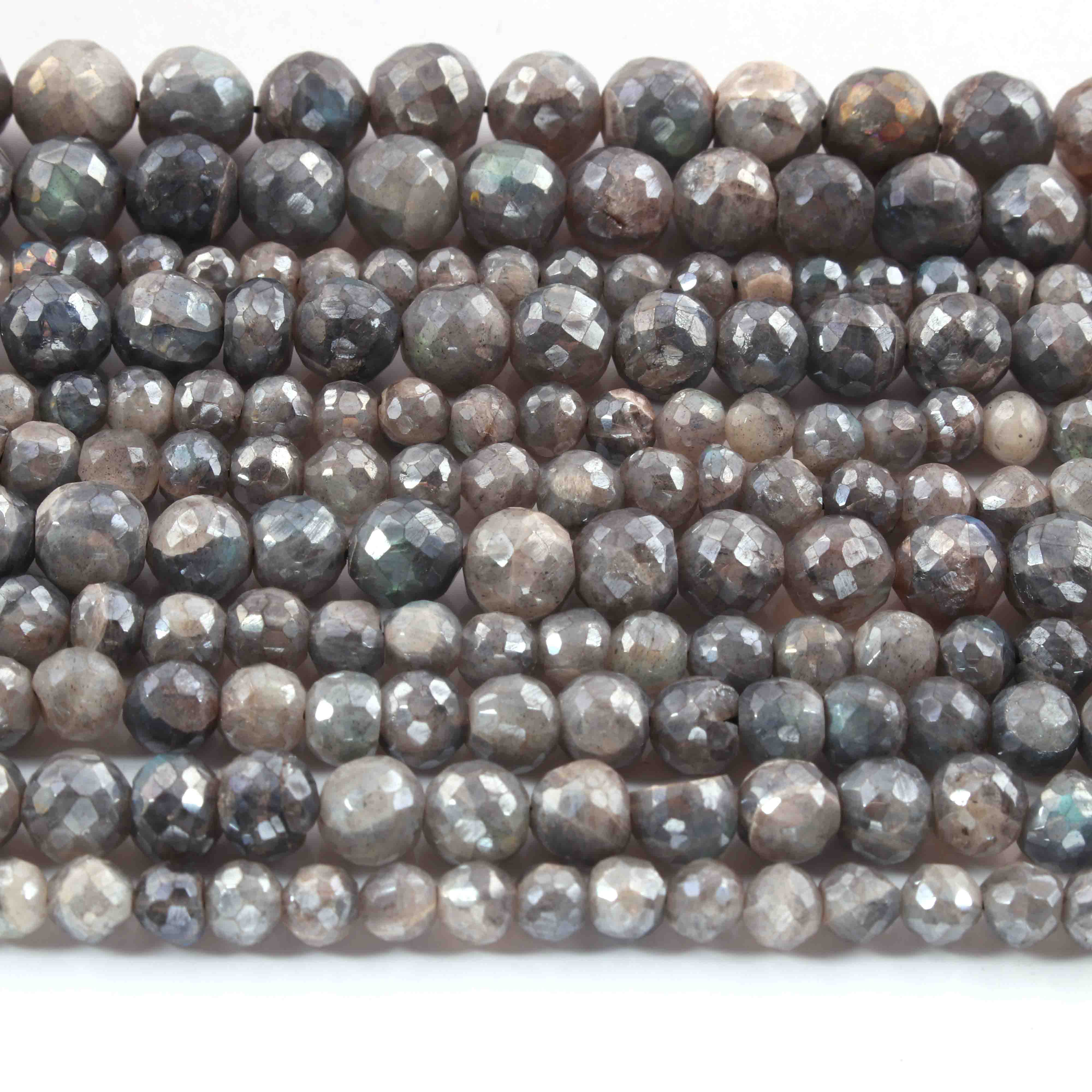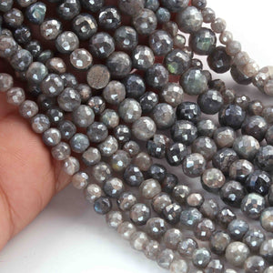 1 Strand Grey Moonstone Silver Coated Faceted Rondelles - Rondelles Beads - 9mm-10mm - 8 Inches BR01876