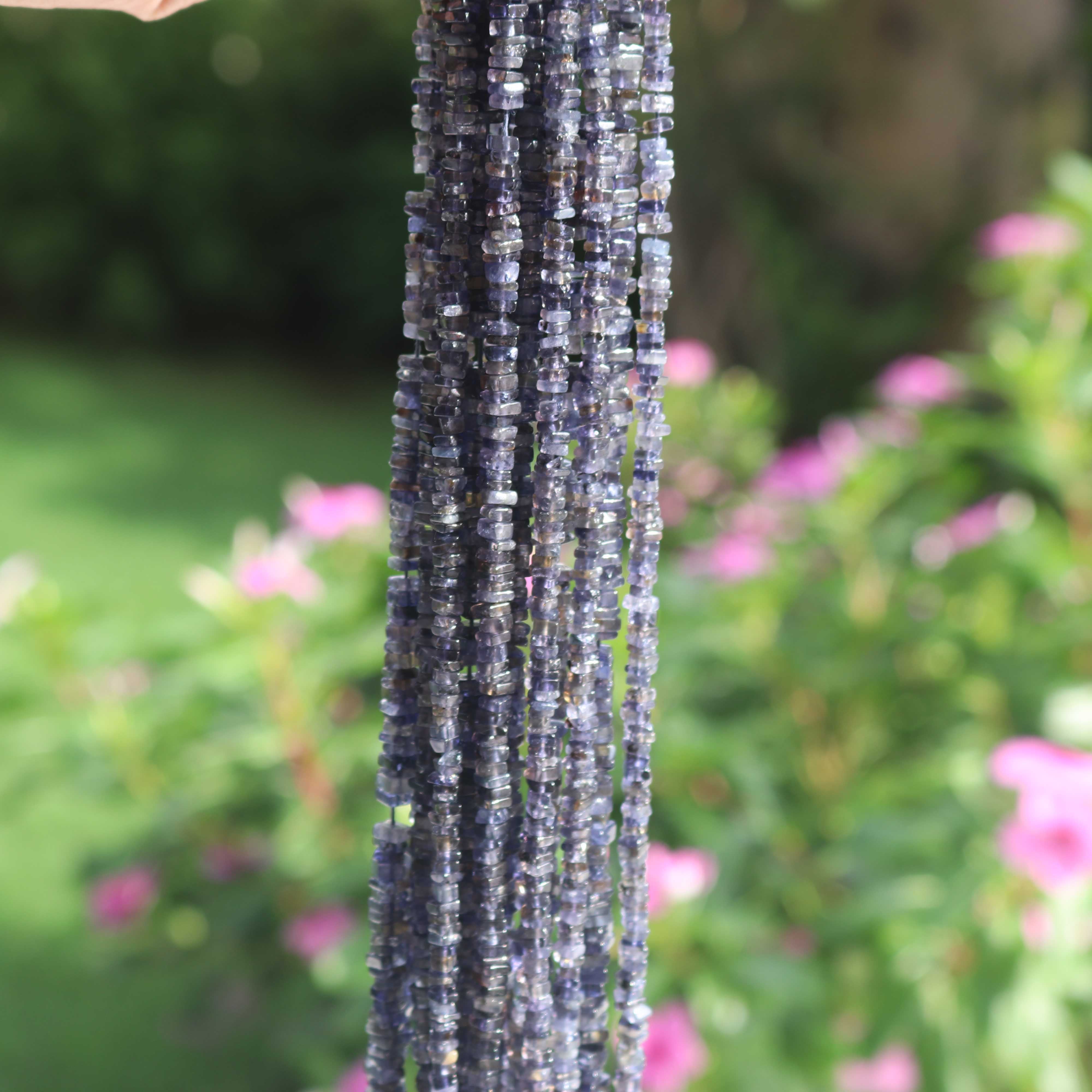 This listing is for ONE (1) Strand Iolite Smooth Heishi Beads - Square Flat Thin Beads. BR550 listing/Price is for ONE (1) strand. Size = 3mm-5mm Stone =Iolite Lenght = 16 Inches Beads= 100+ Shape = Square (Thin) Heishi Beads EC-005 Measurements and weight are close approximations. Great Quality for making Necklace, earrings, Bracelet or any other jewelry. https://www.etsy.com/shop/Tucsonbeads?section_id=15296279&ref=shopsection_leftnav_8