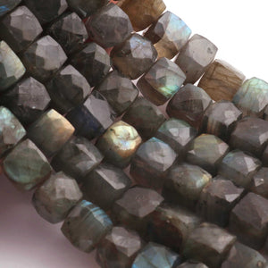 1 Strand Labradorite Faceted Cube Briolettes - Box shape Beads 8mm-10mm -10 Inches BR504