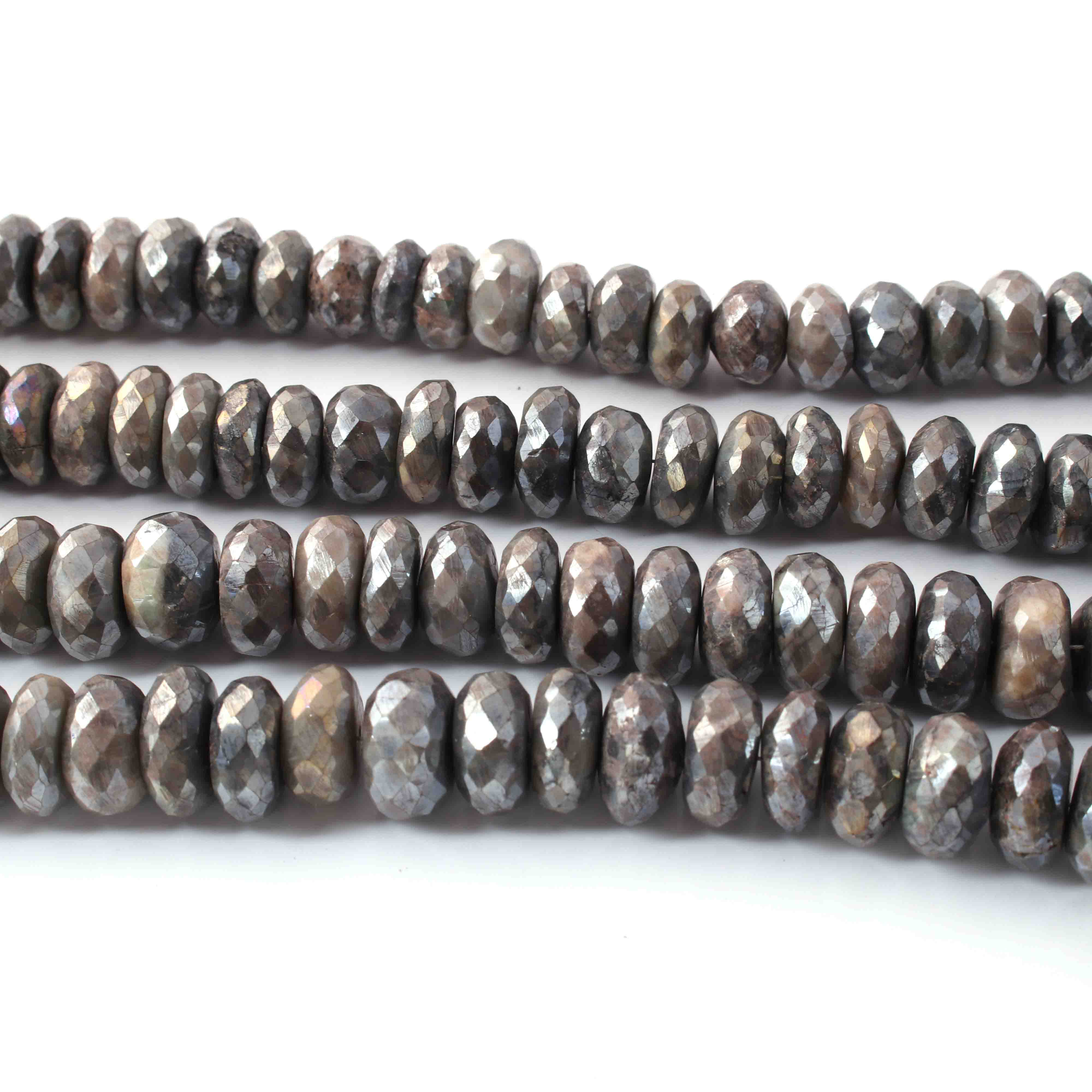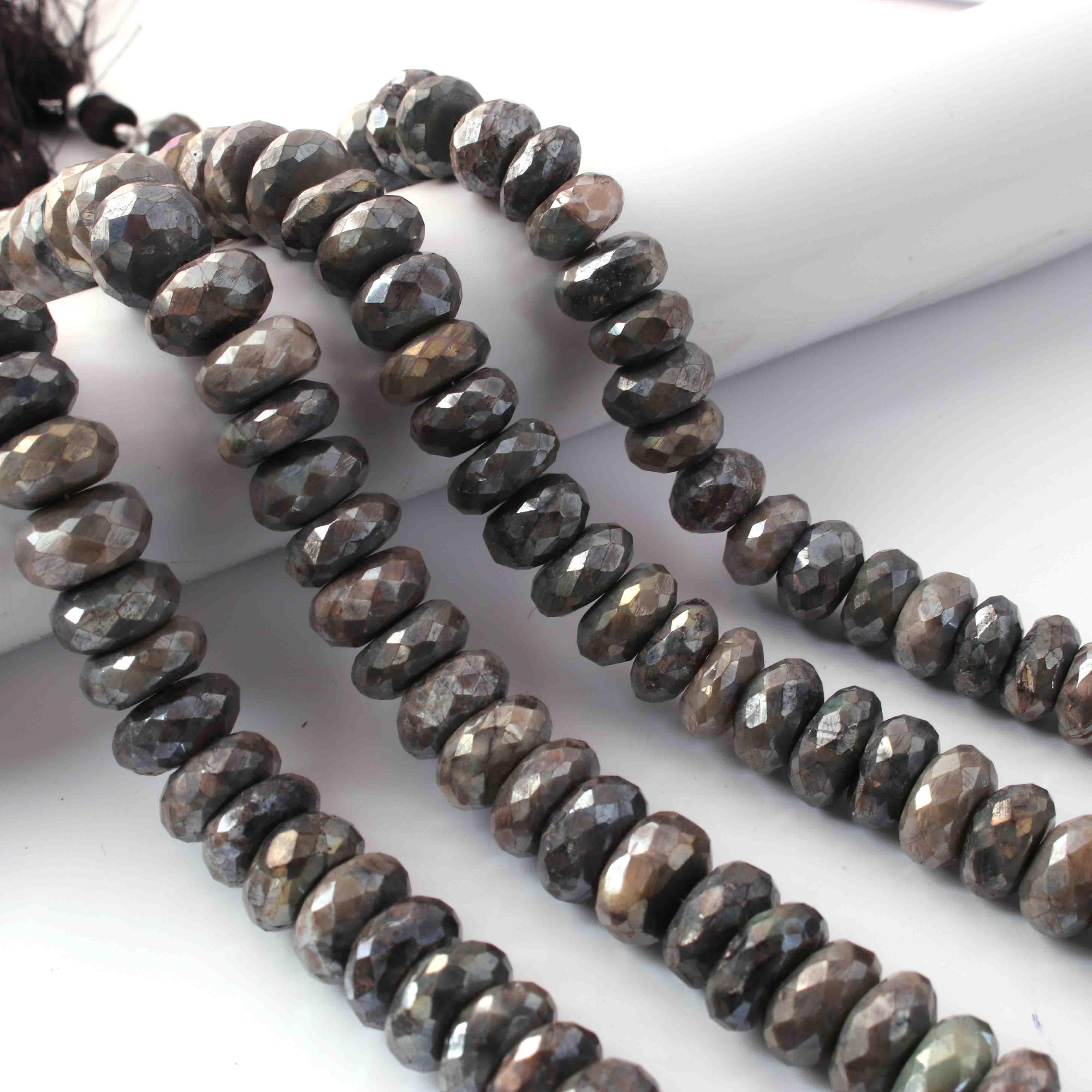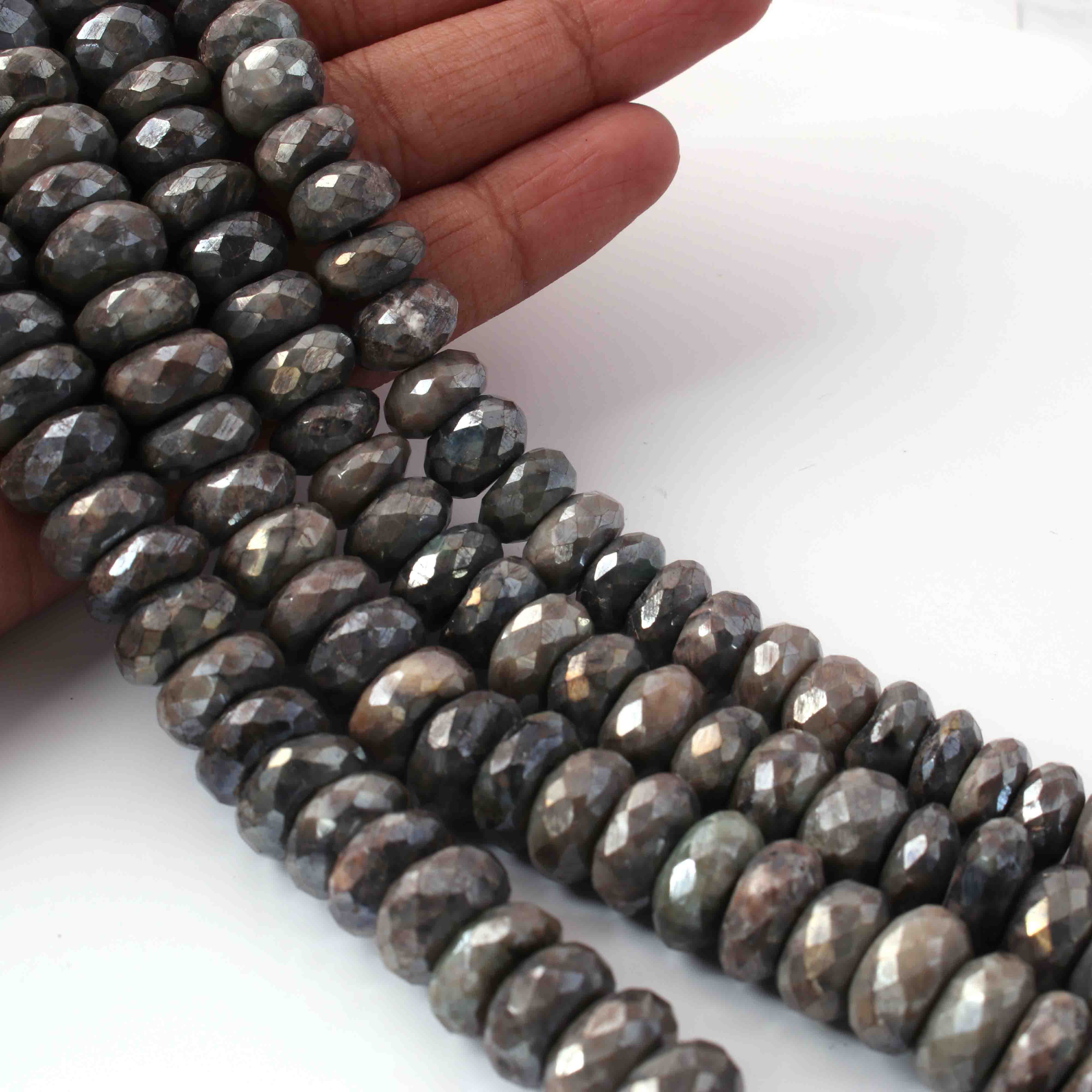 1 Strand Labradorite Silver Coated Faceted Rondelles - 9mm-10mm -7 Inches BR0770