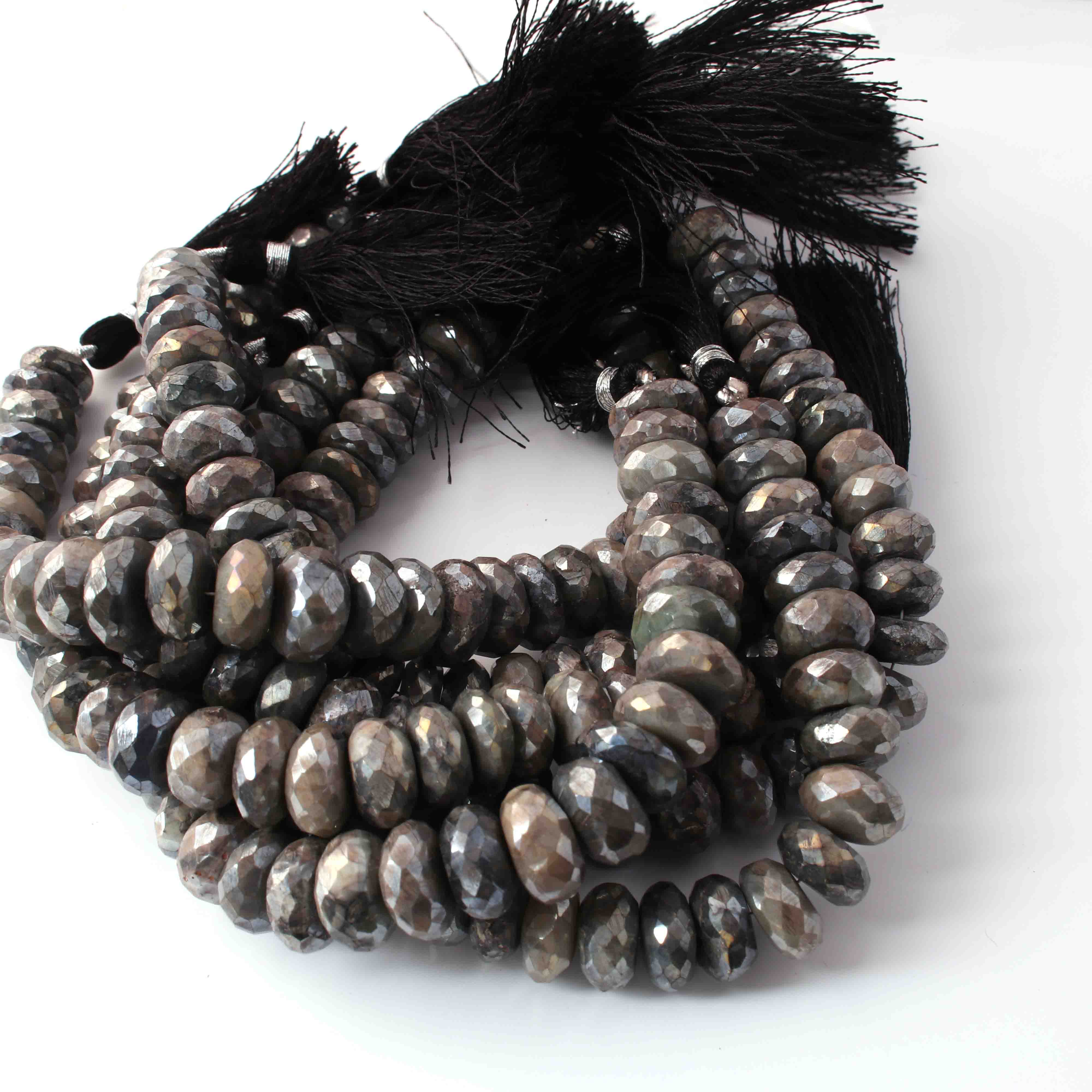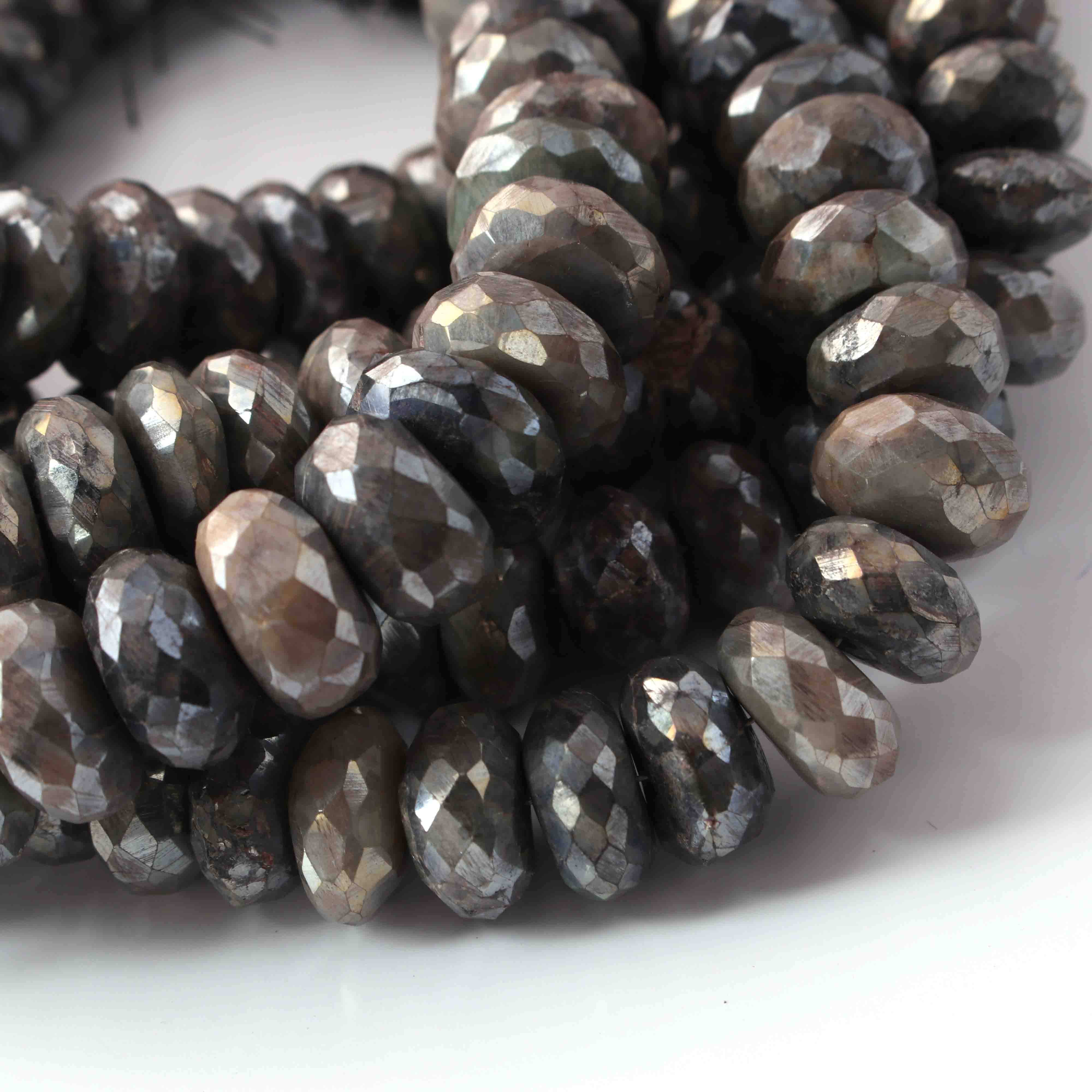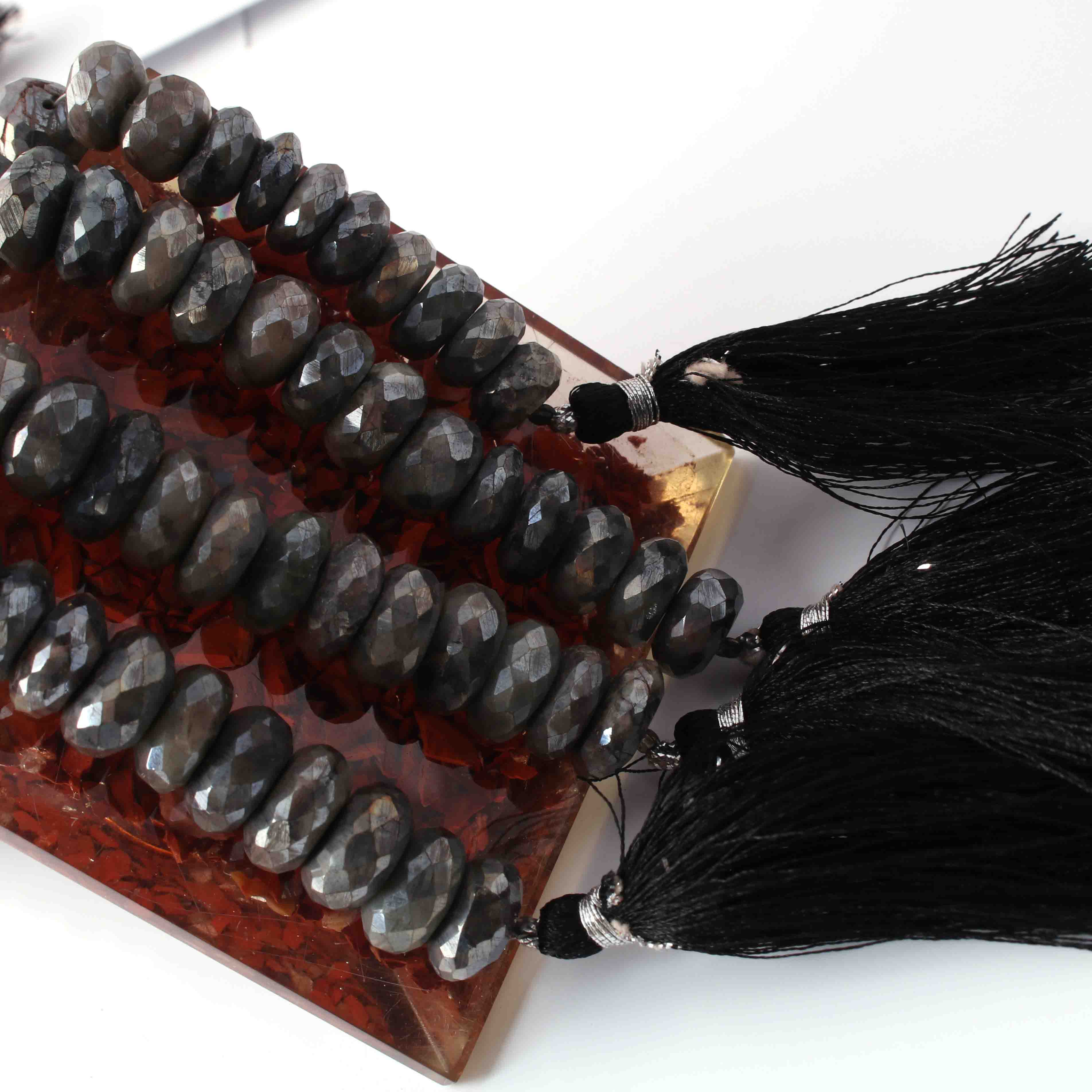 1 Strand Labradorite Silver Coated Faceted Rondelles - 9mm-10mm -7 Inches BR0770