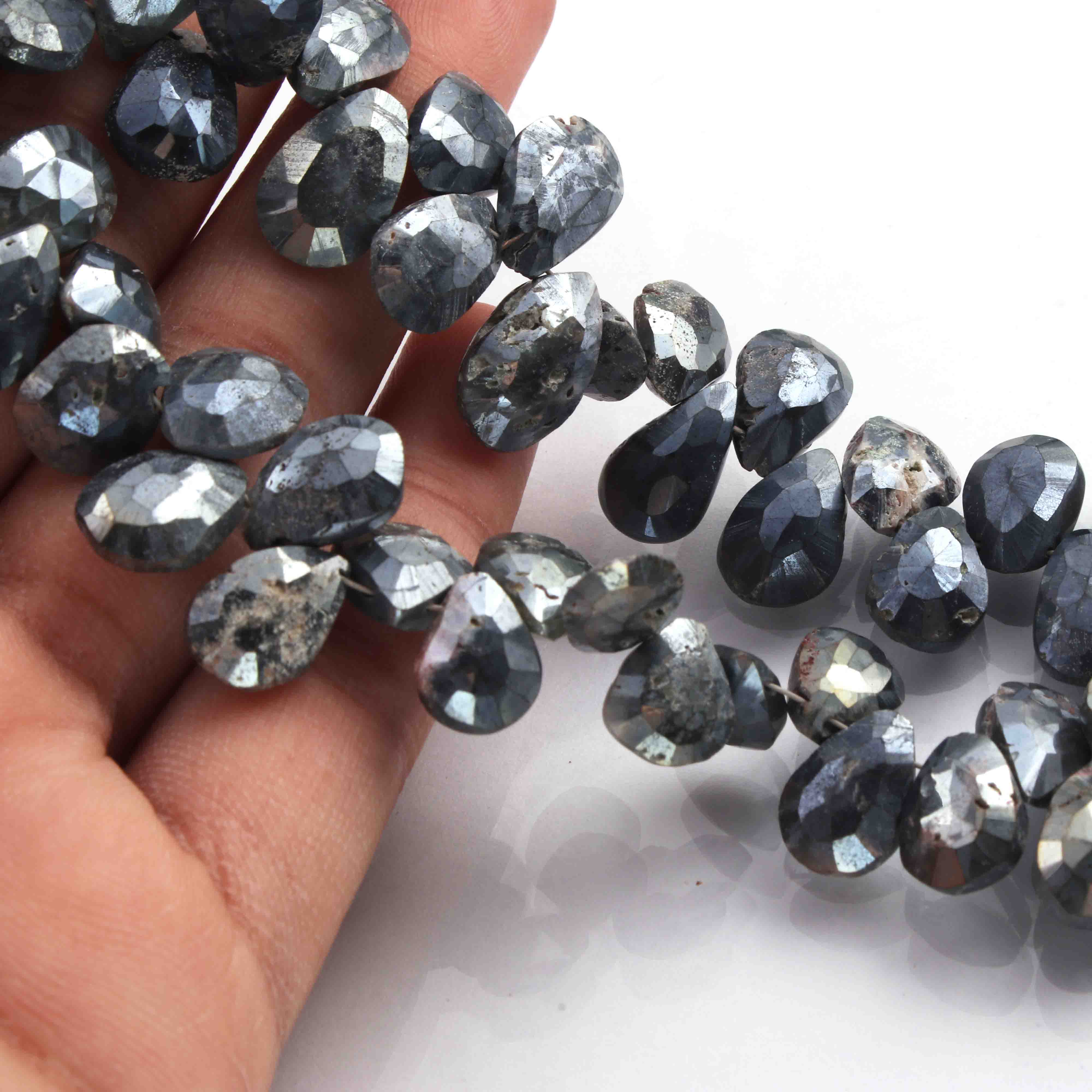 1 Strand Labradorite Silver coting Faceted pear Briolettes - Labradorite pear Briolettes 12mmx10mm-15mmx9mm 8 inch BR361