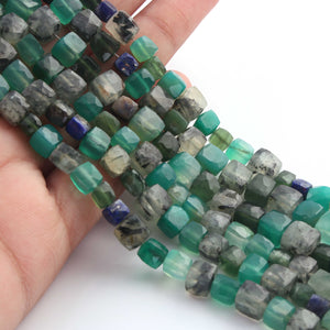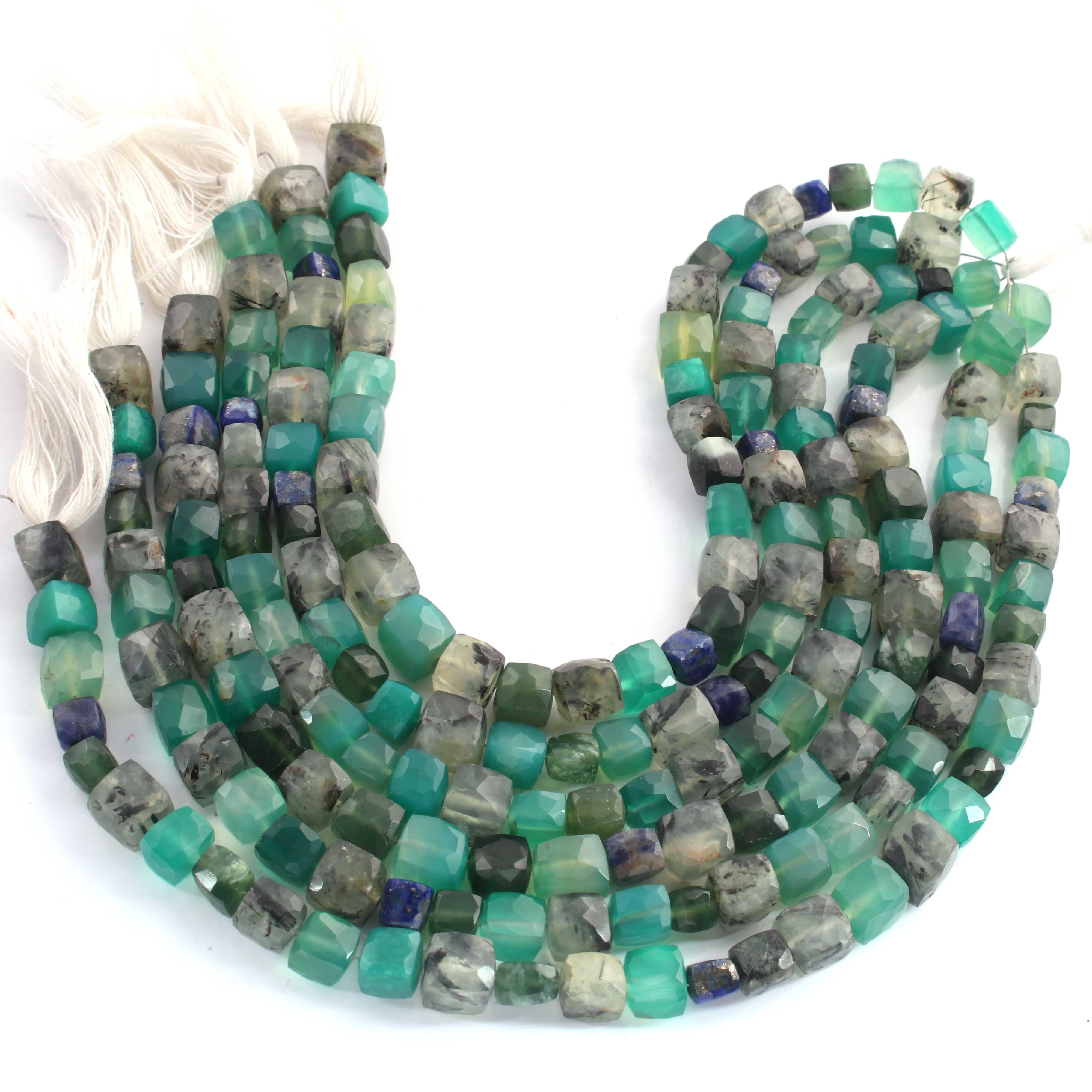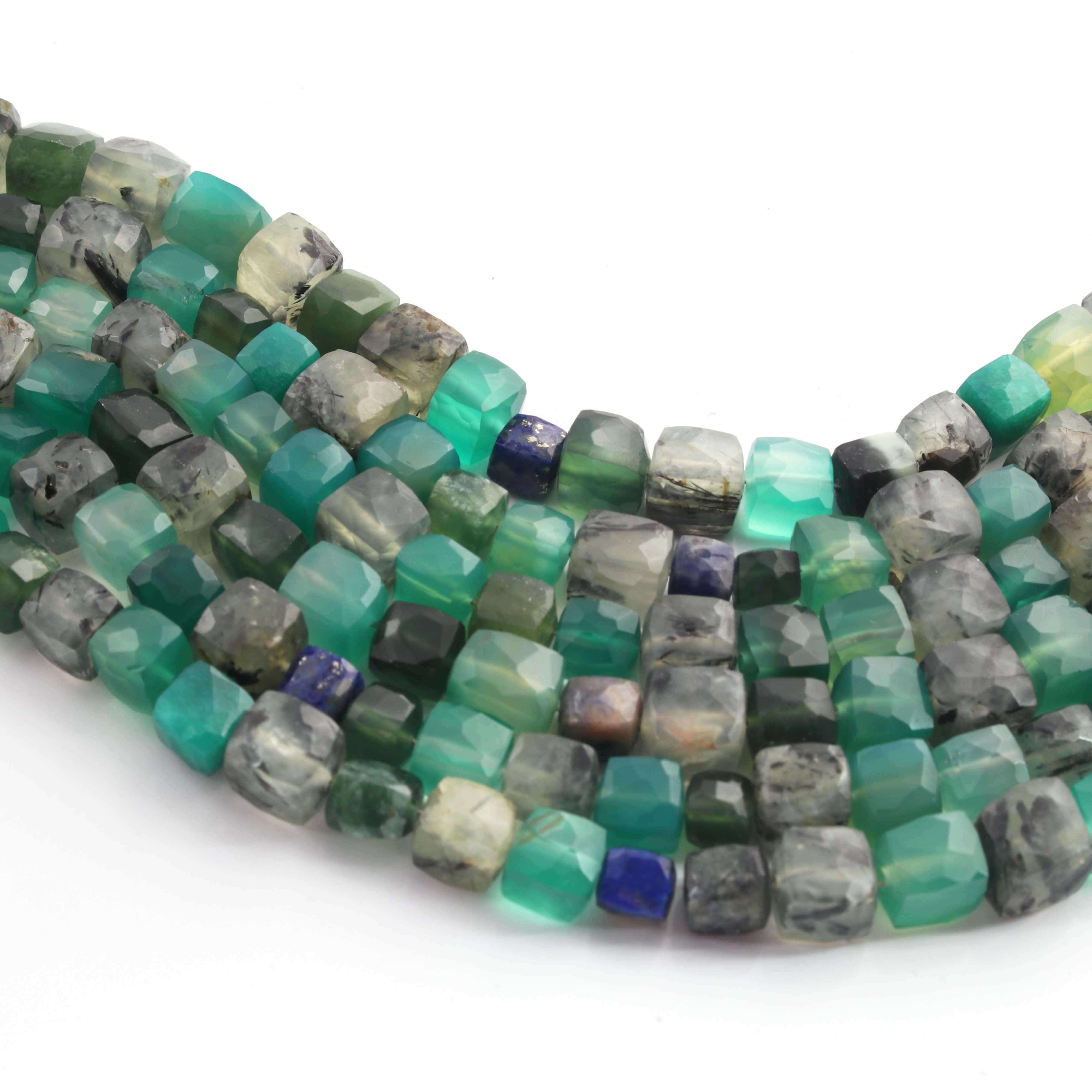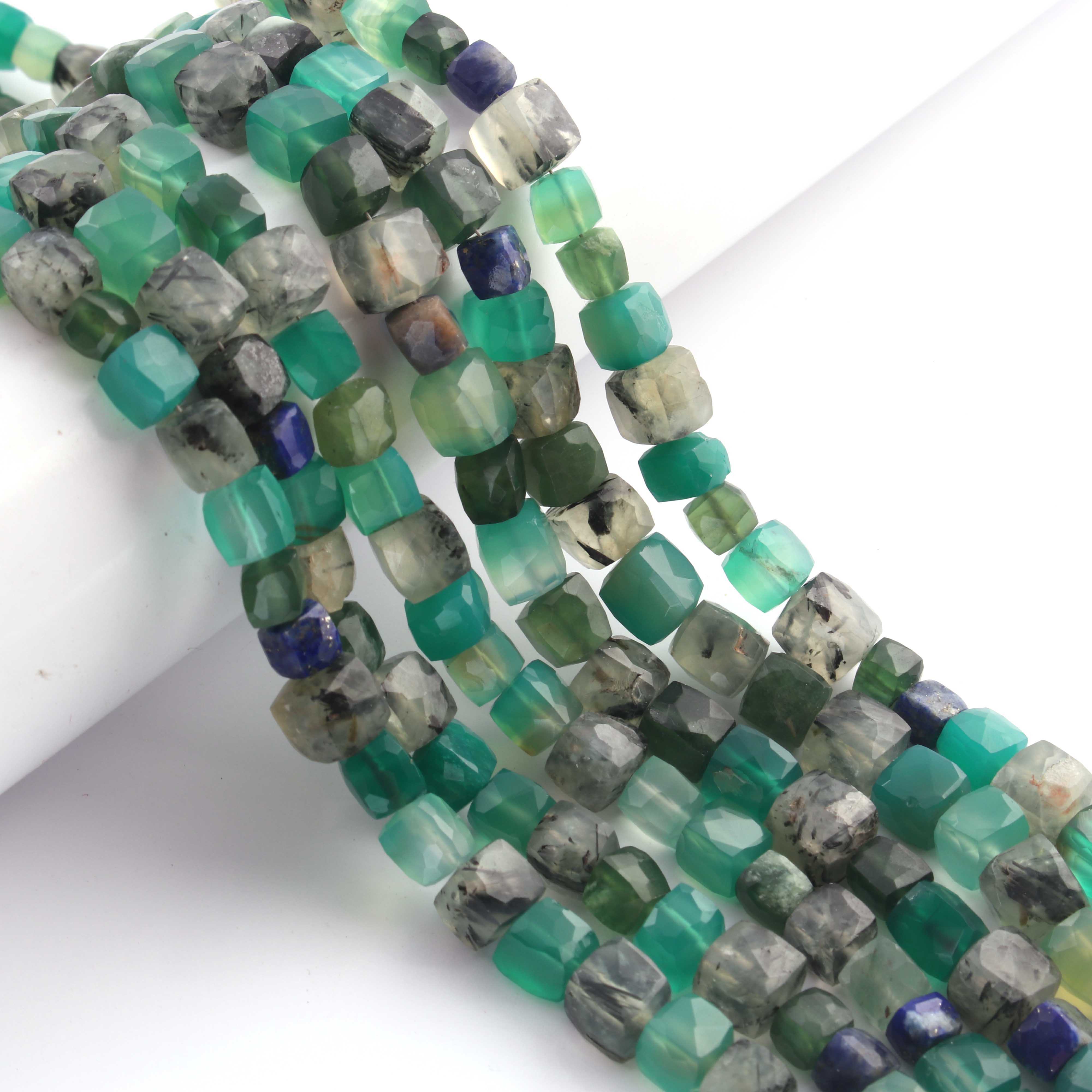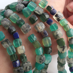 1 Strand Mix Stone Faceted Cube Briolettes - Box Shape Beads - 5mmx7mm-7mmx8mm - 8 Inches BR02613