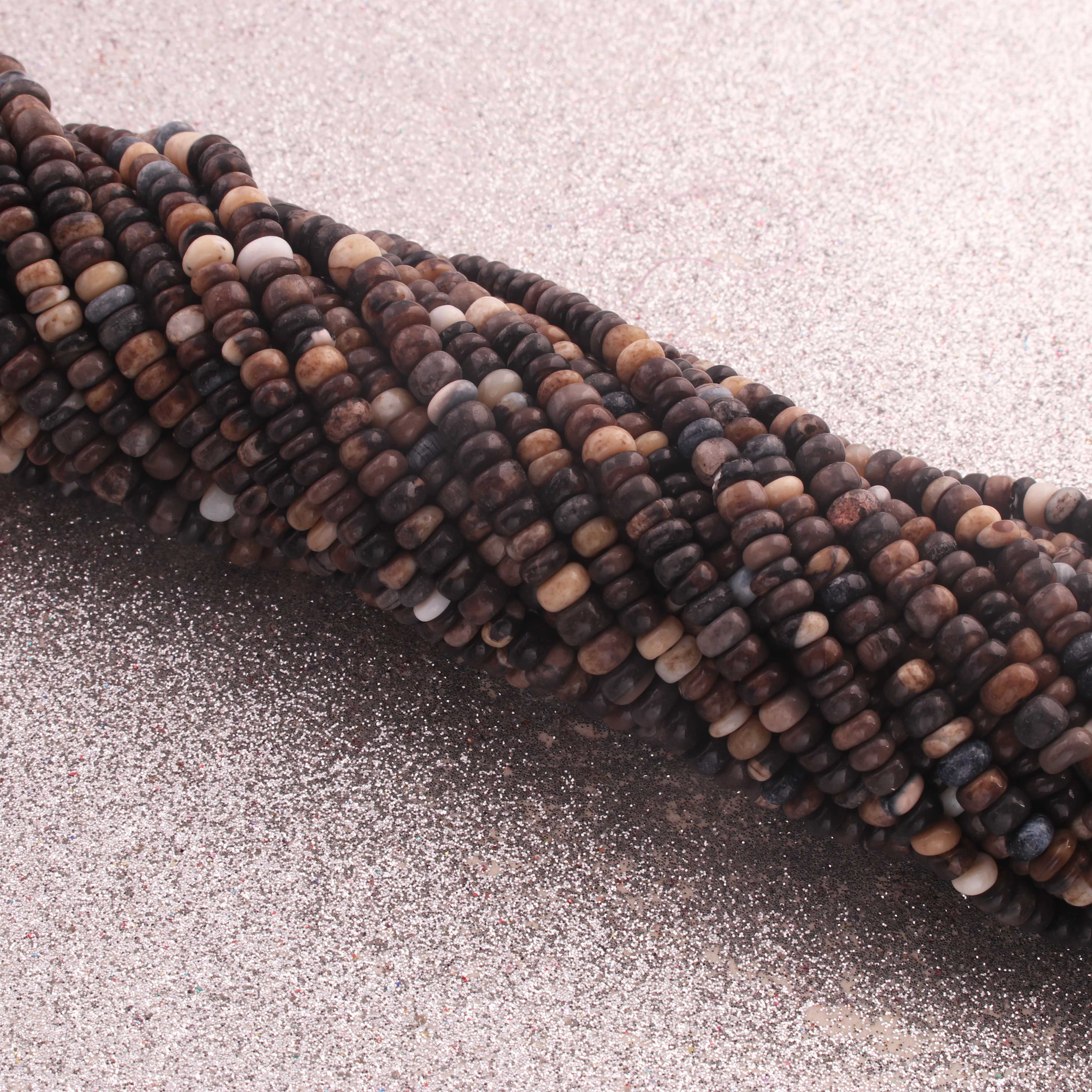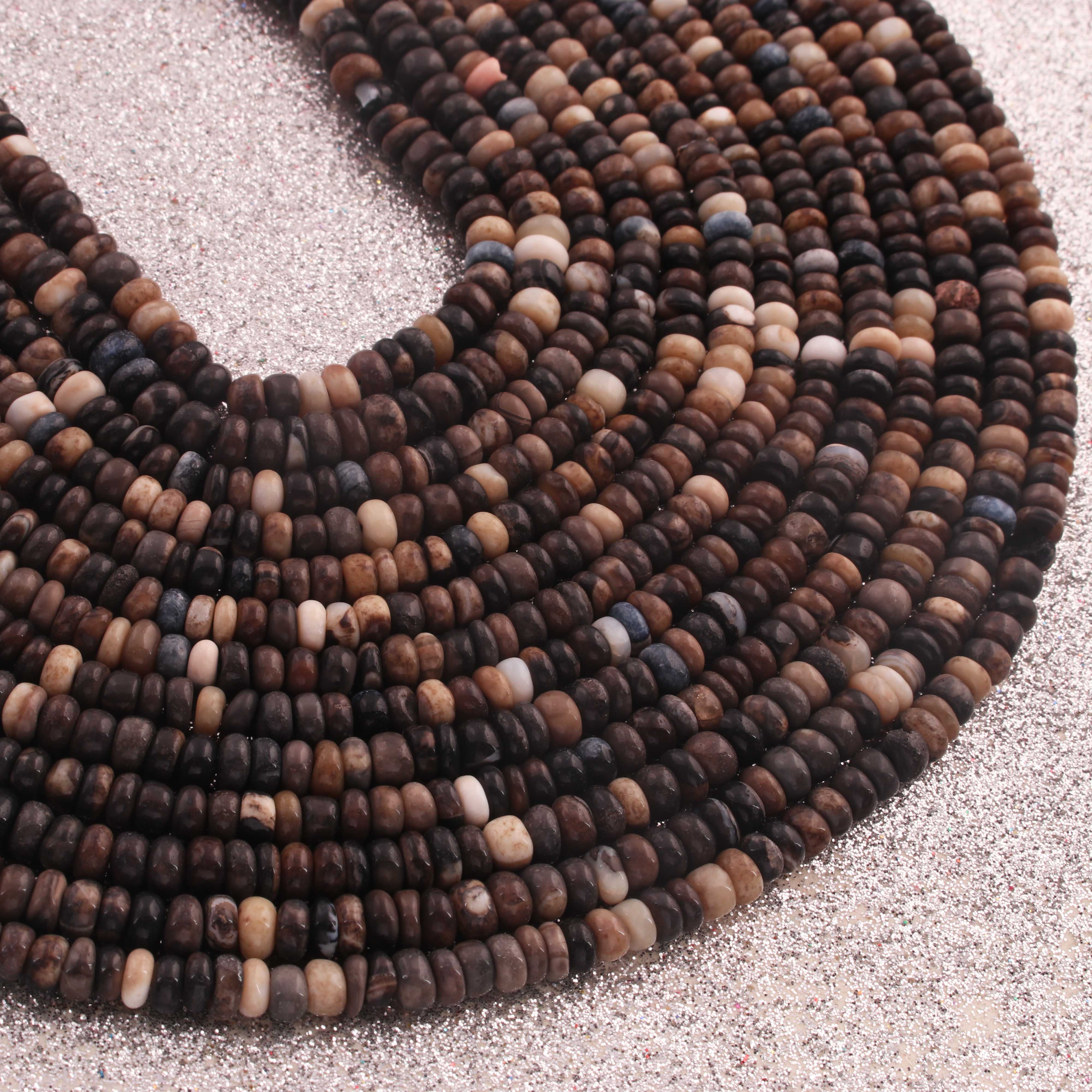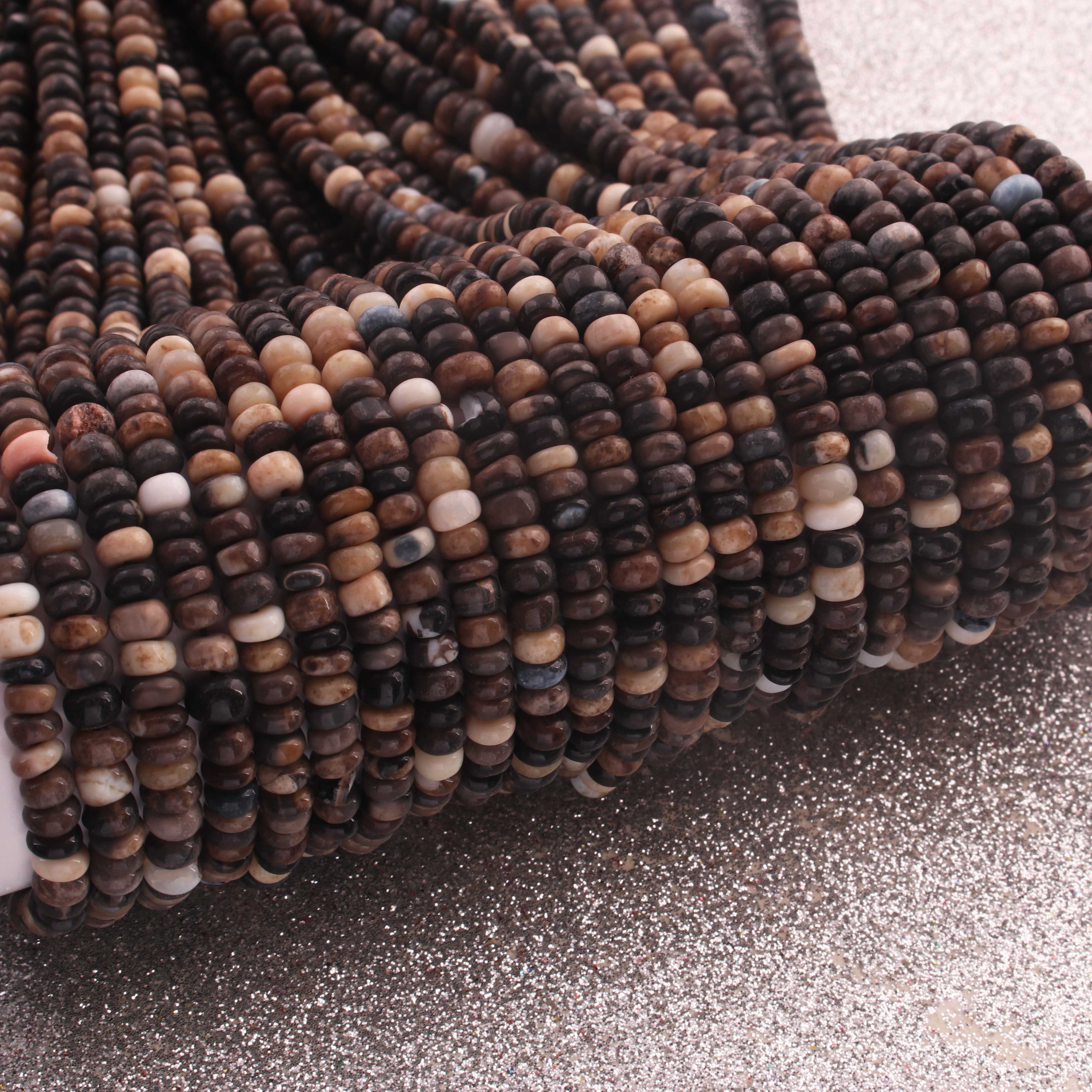 1 Strand Natural Black Opal Smooth Rondelle -Gem Stone Beads Plain Rondelles Beads, 5 mm-13.5 Inches BR02961