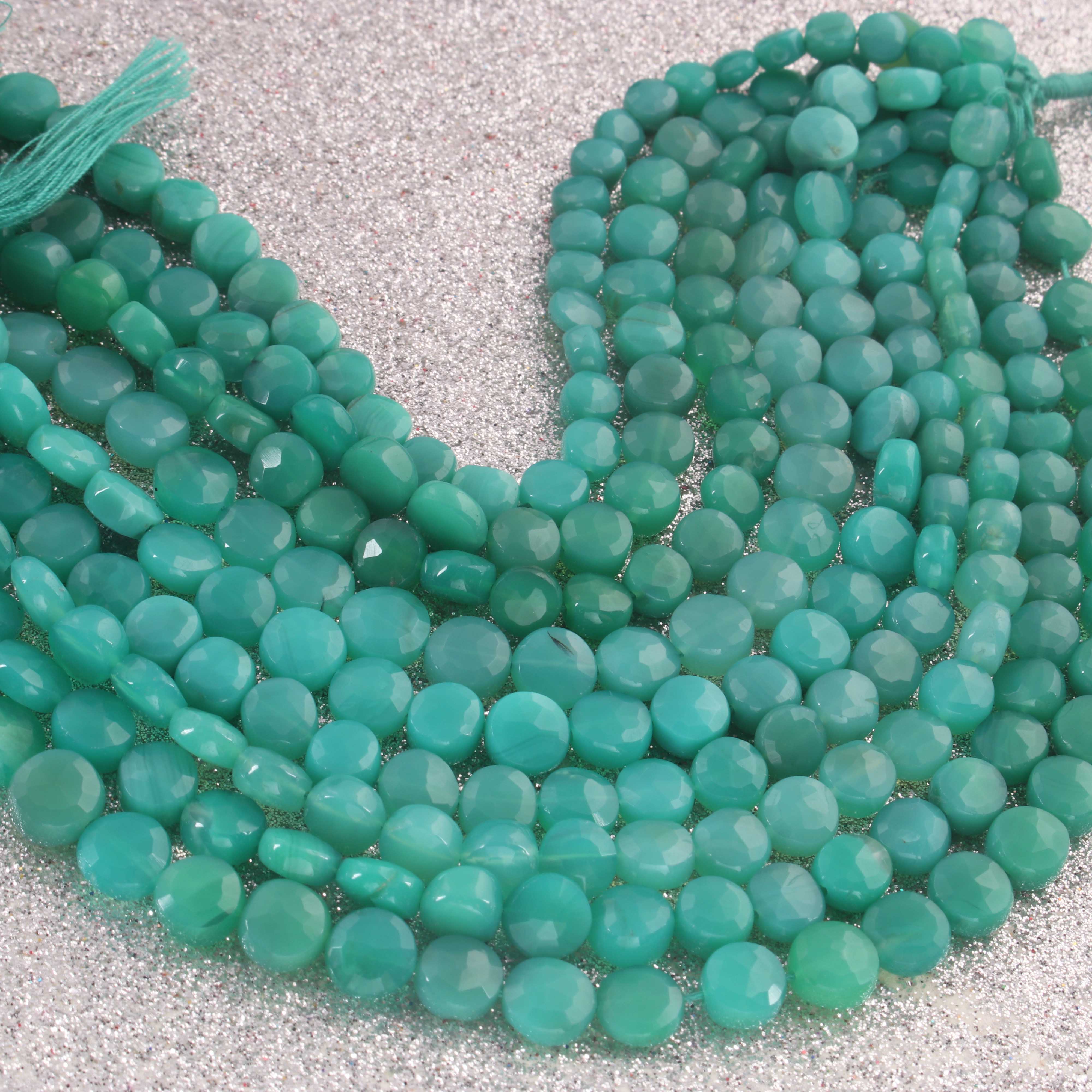 1 Strand Natural Chrysoprase Faceted Small Coin Briolettes- Gemstone Faceted Beads -7mm-8mm- 8 Inch BR02814