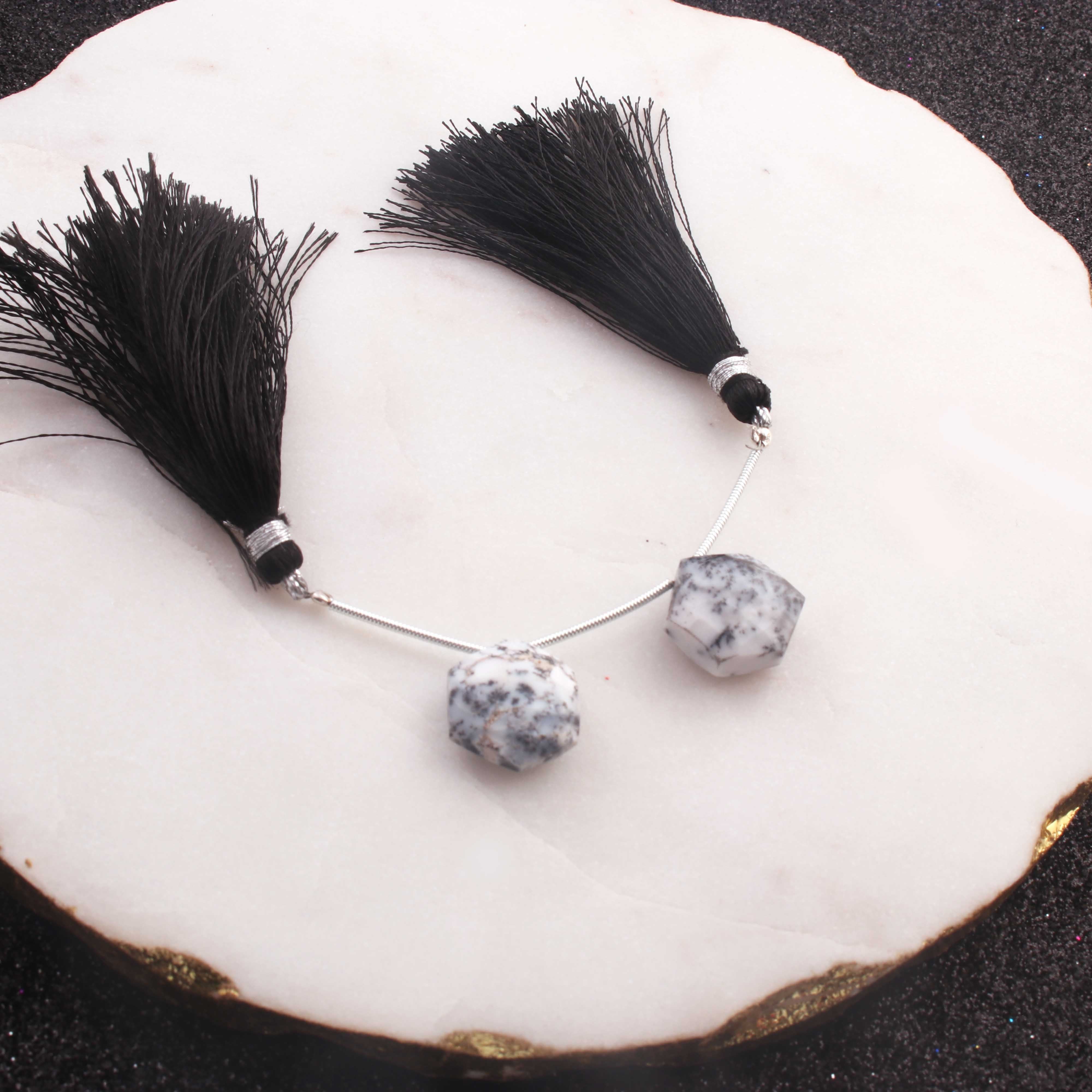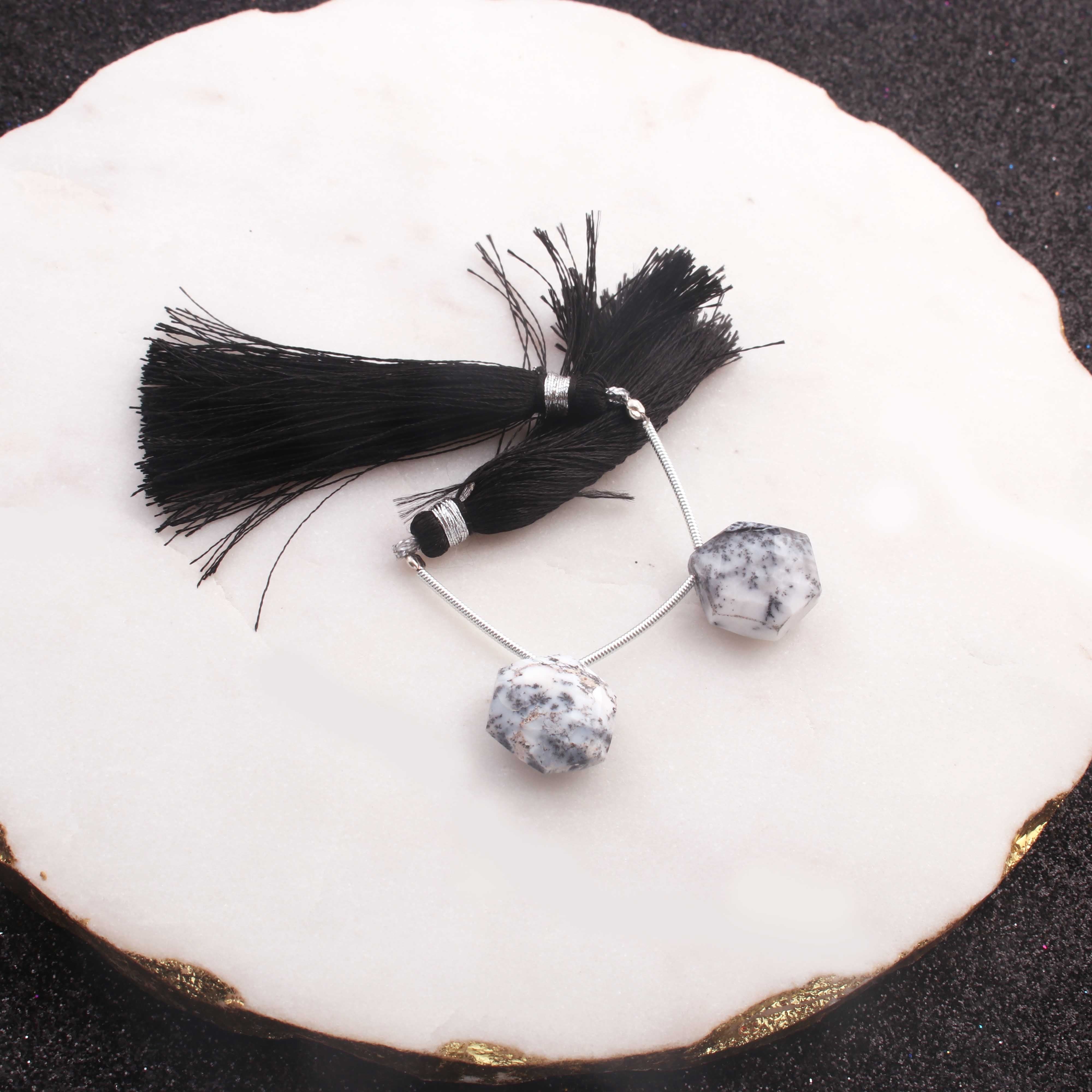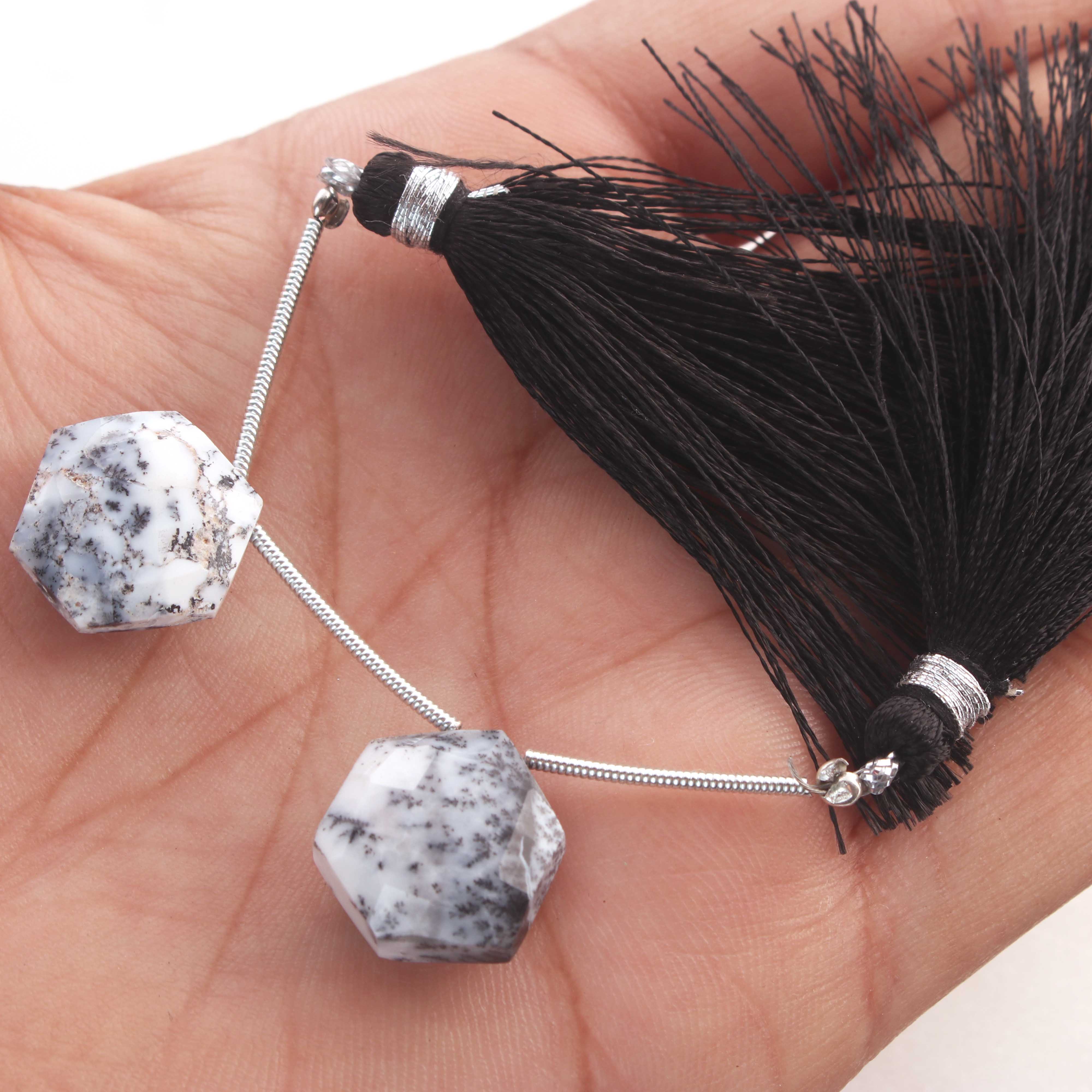 1 Strand Natural Dendrite Opal Hexagon Briolettes - Semi Precious Gemstone Beads - 15mmx14mm-2.5 Inches BR1875