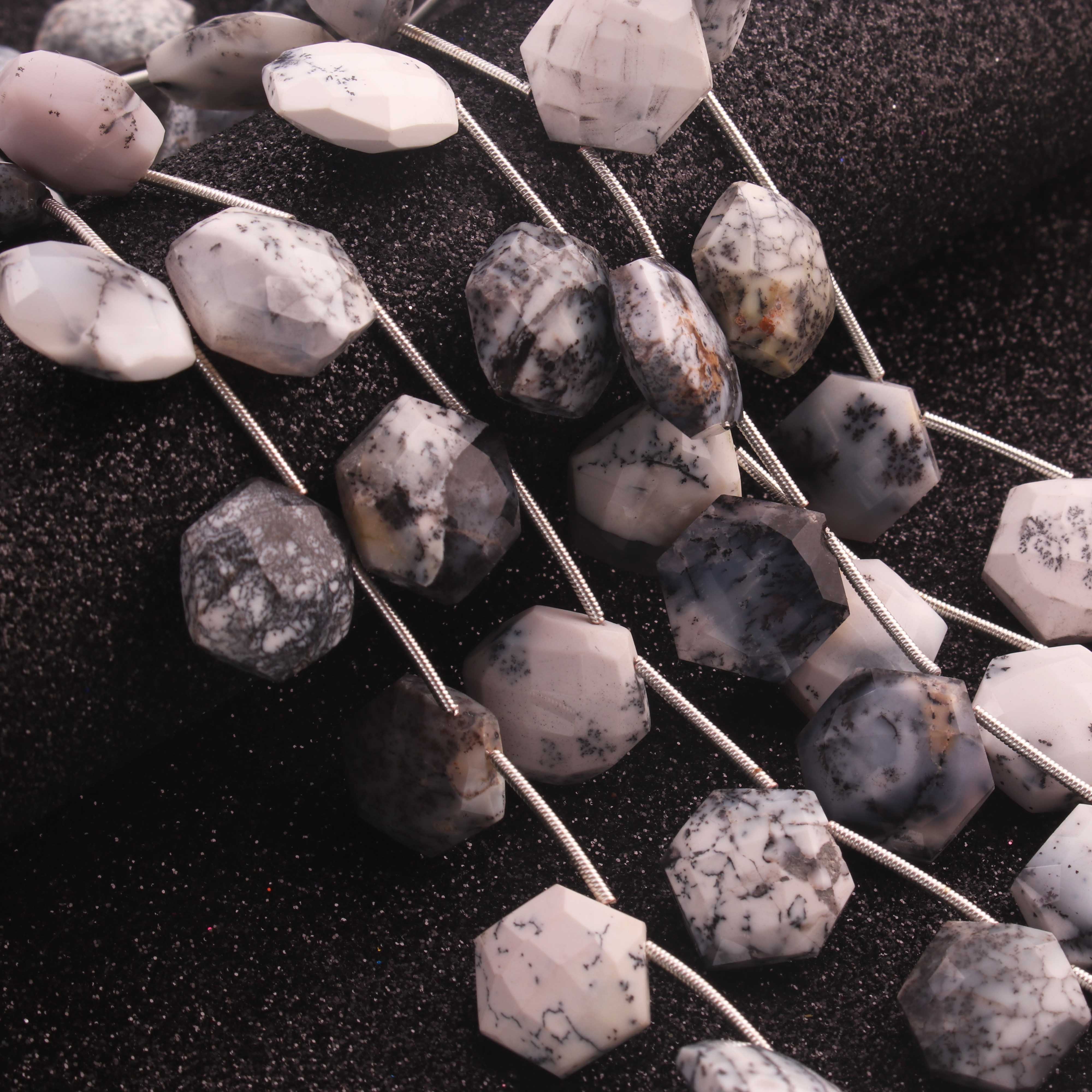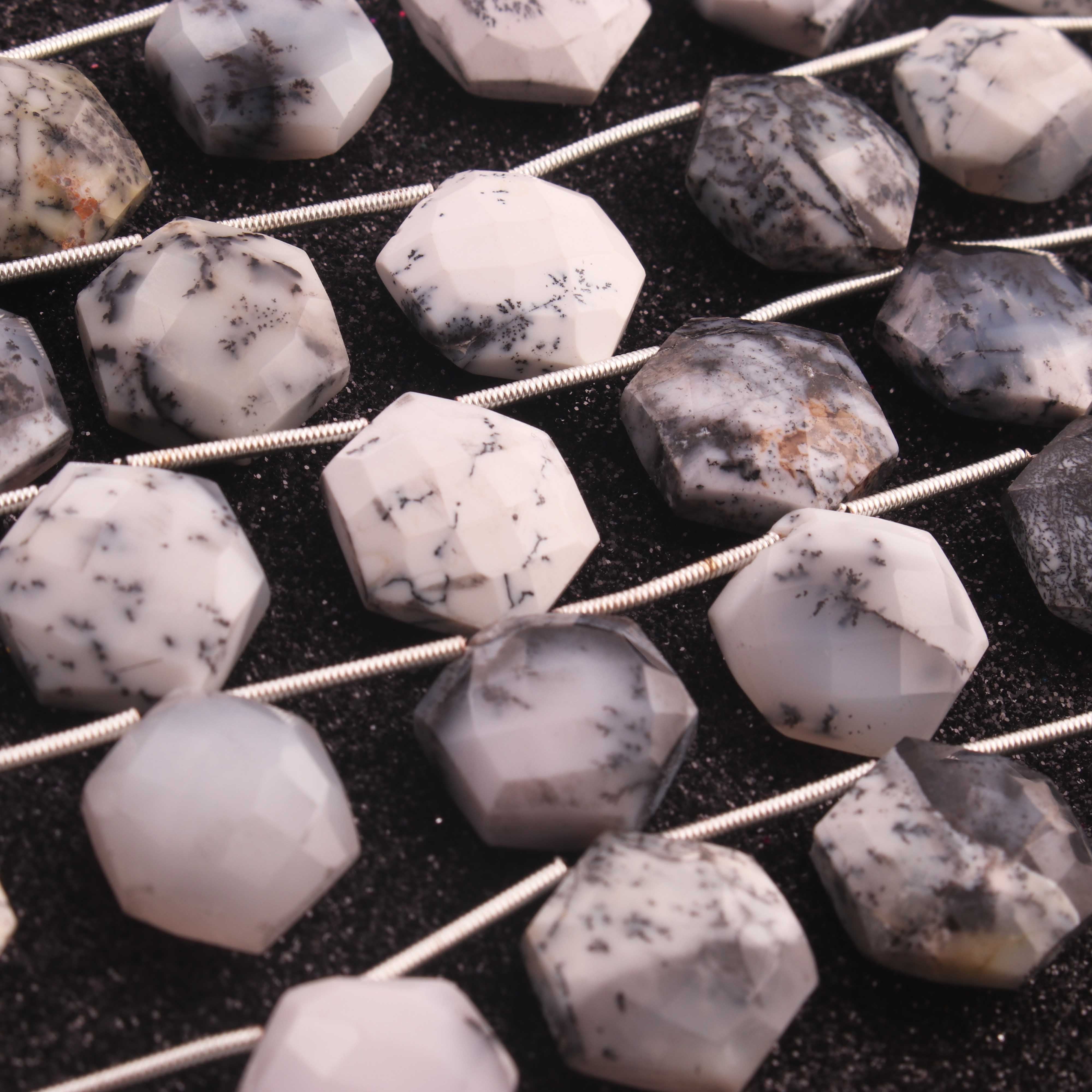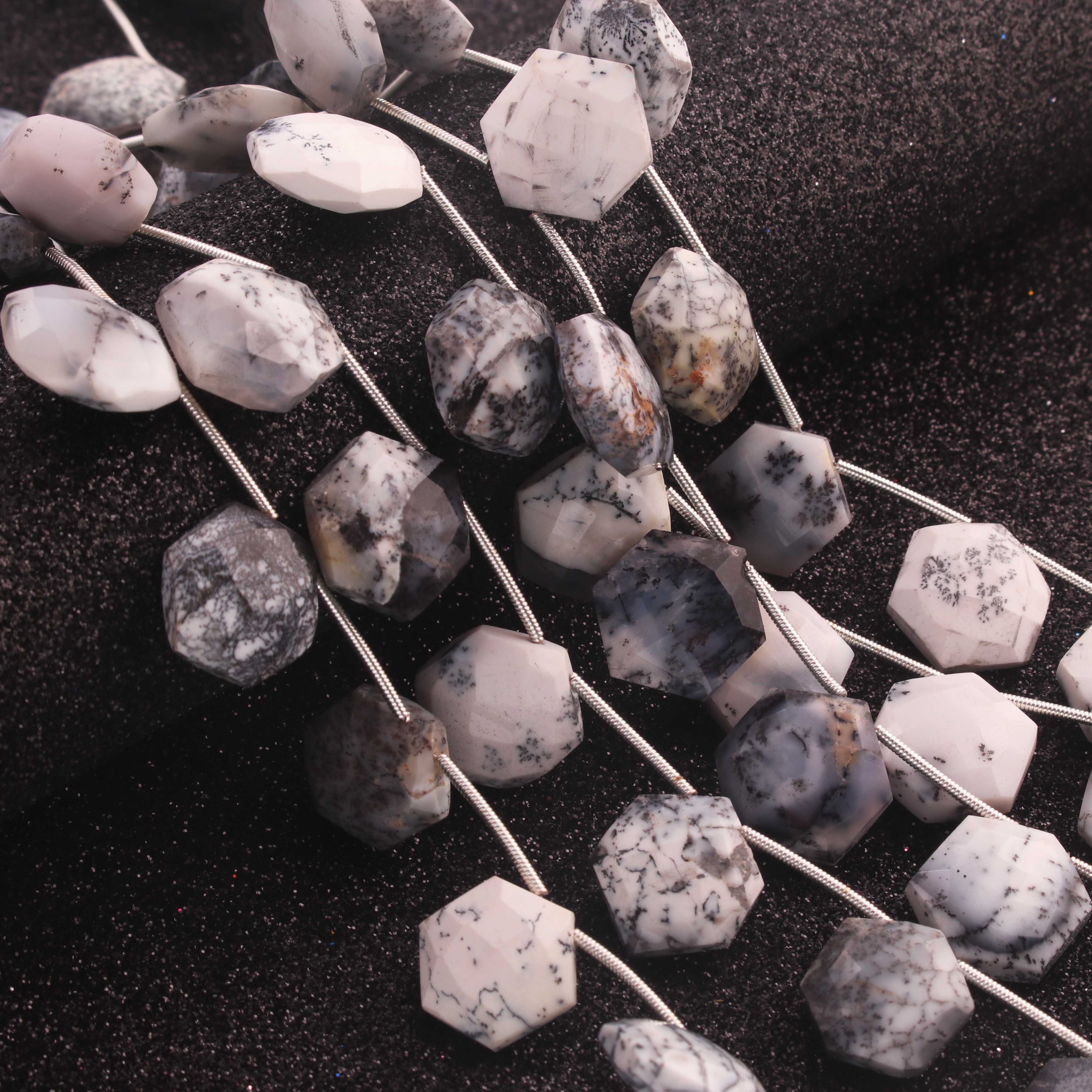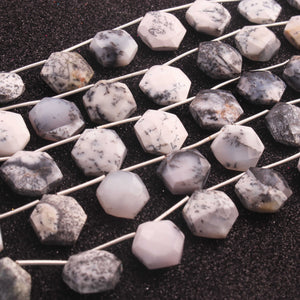 1 Strand Natural Dendrite Opal Hexagon Briolettes - Semi Precious Gemstone Beads - 16mmx14mm- 9 Inches BR02914