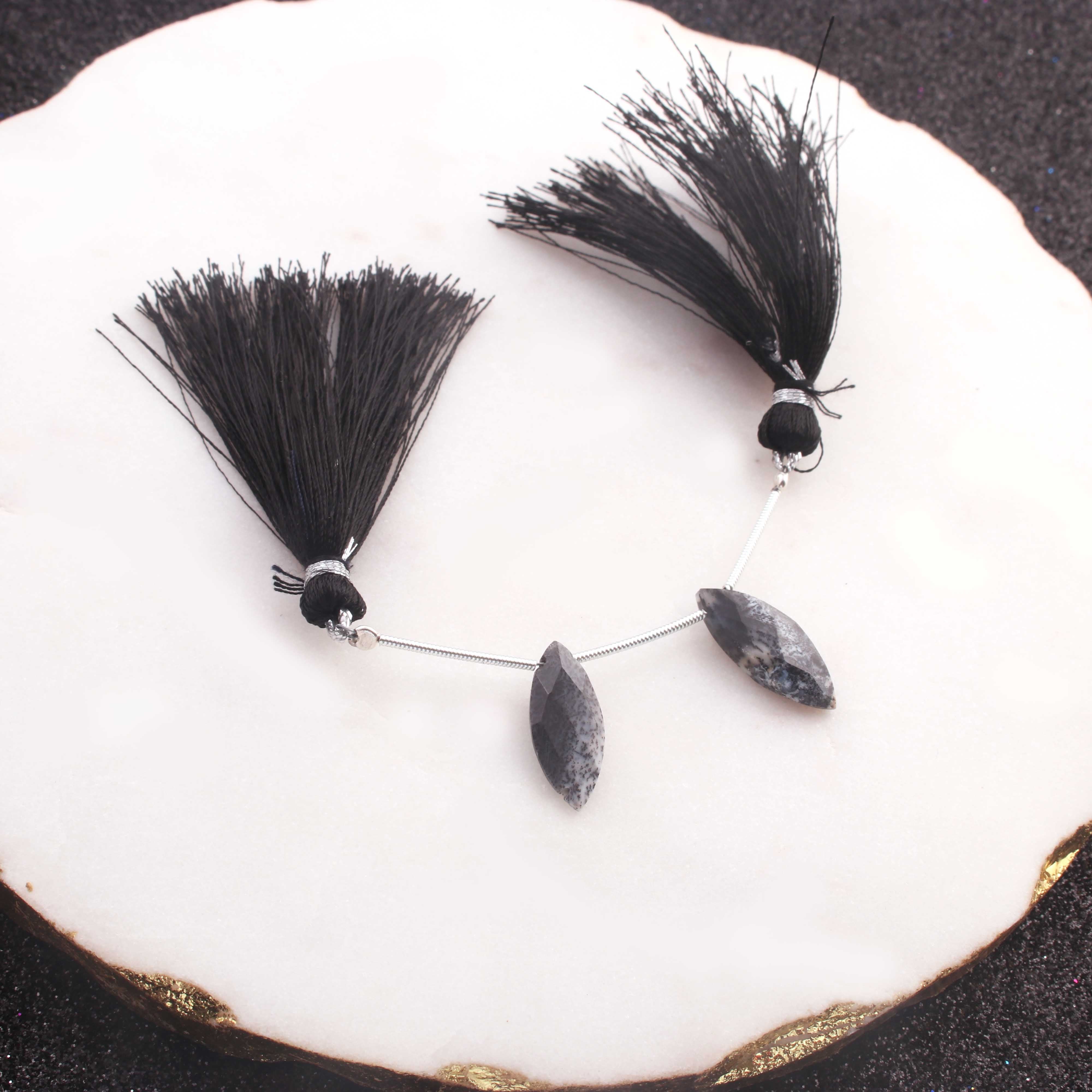 1 Strand Natural Dendrite Opal Pear Briolettes - Semi Precious Gemstone Beads - 20mmx7mm-2 Inches BR016