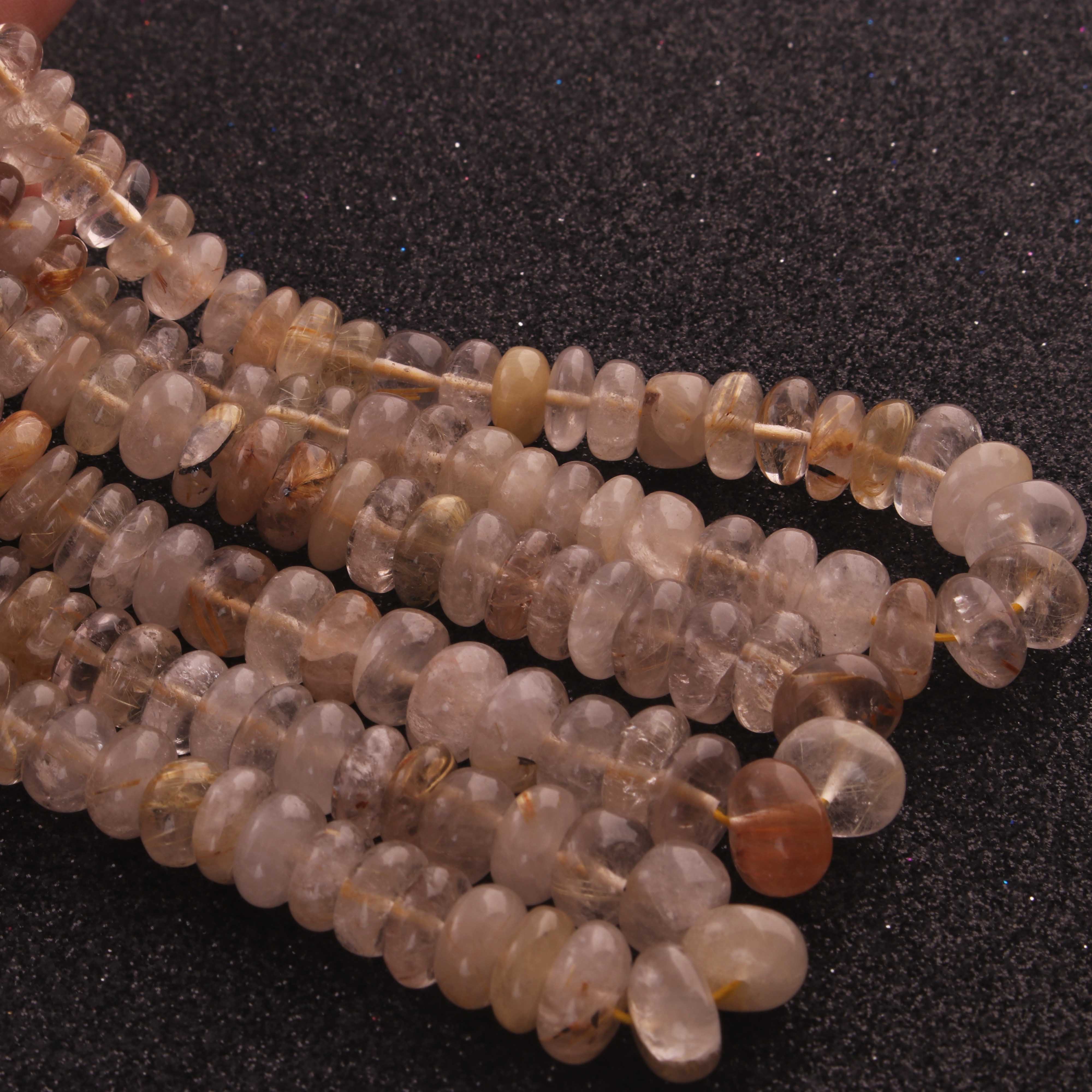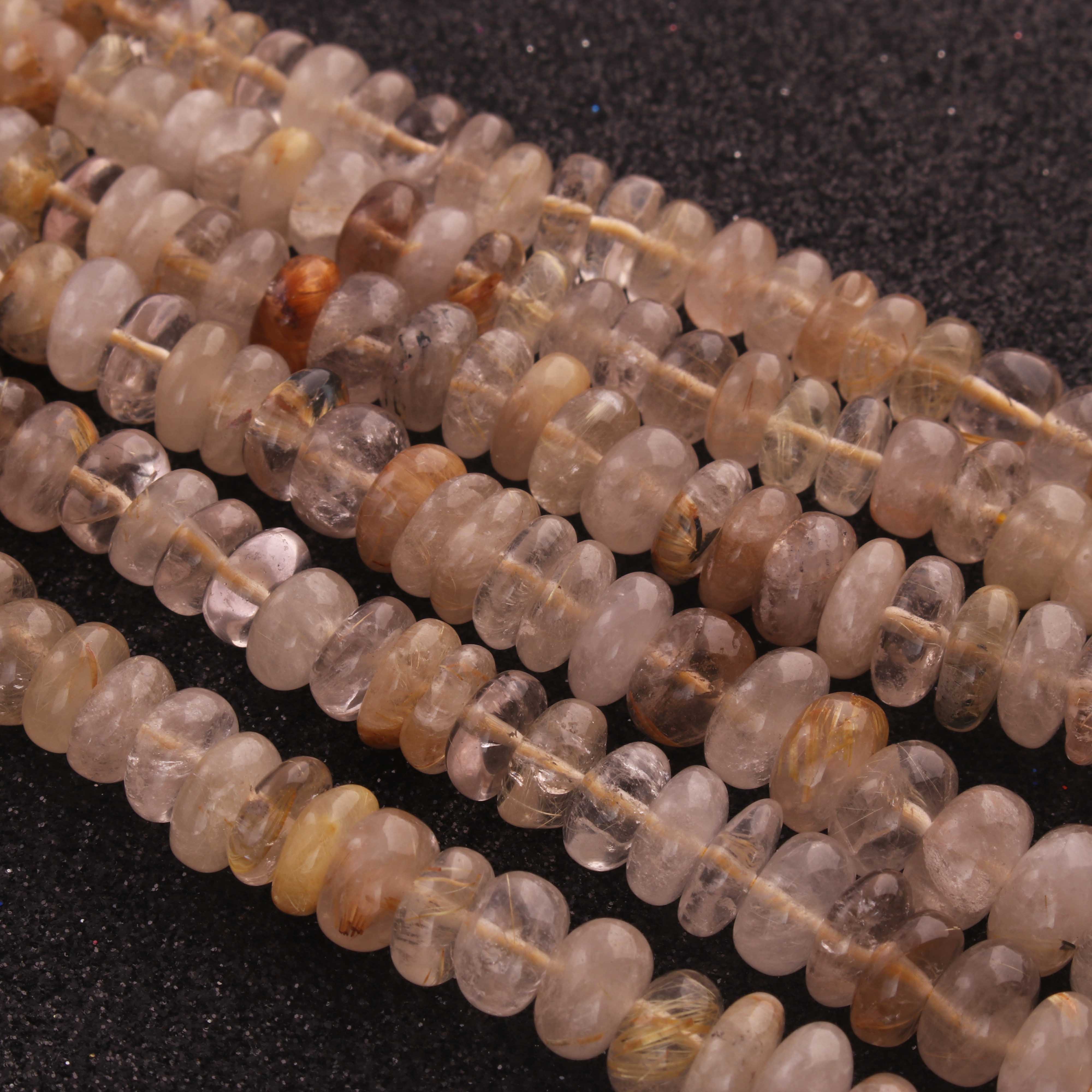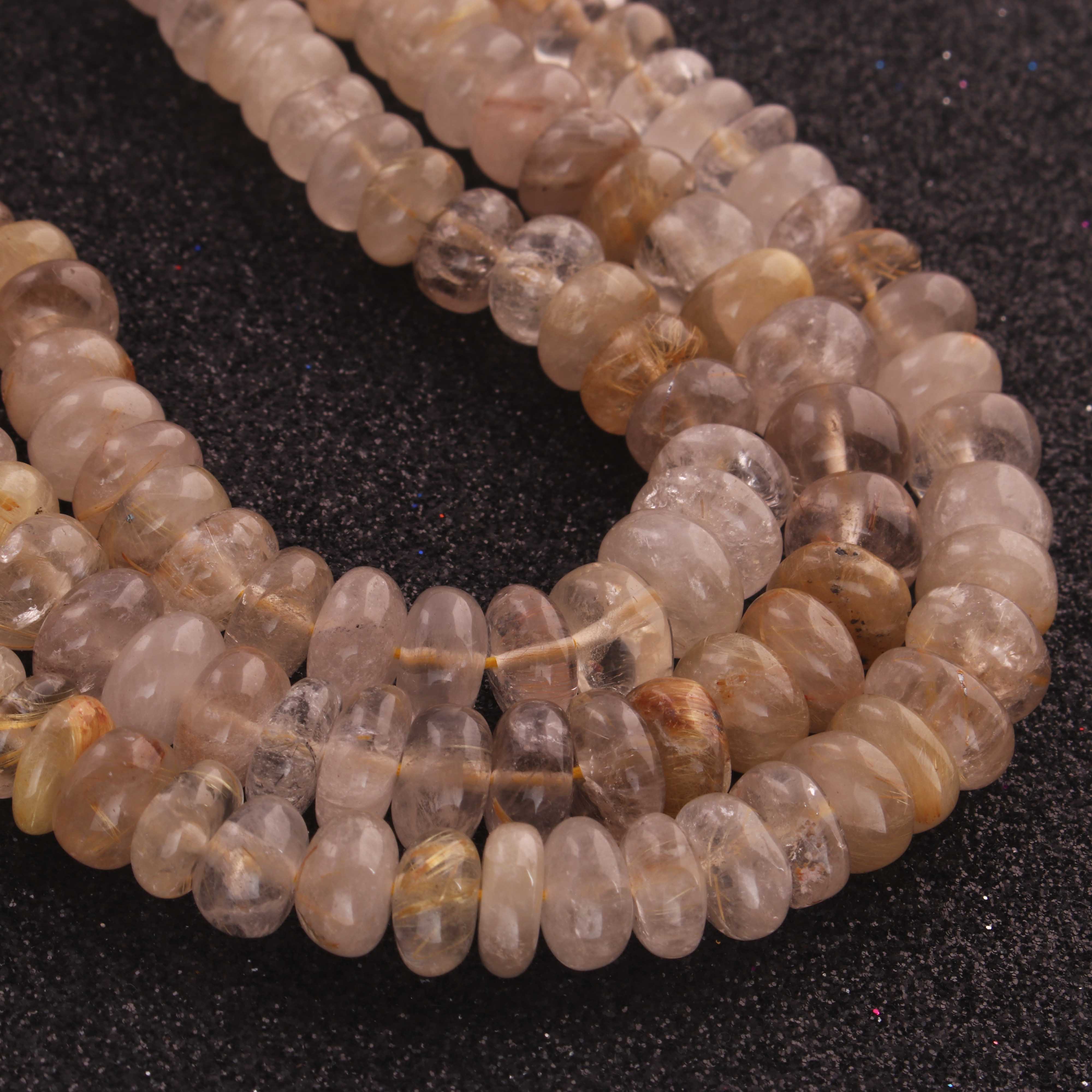 1 Strand Natural Golden Rutile Smooth Rondelle -Gem Stone Beads Plain Rondelles Beads, 8mm-10mm-16 Inches BR02945